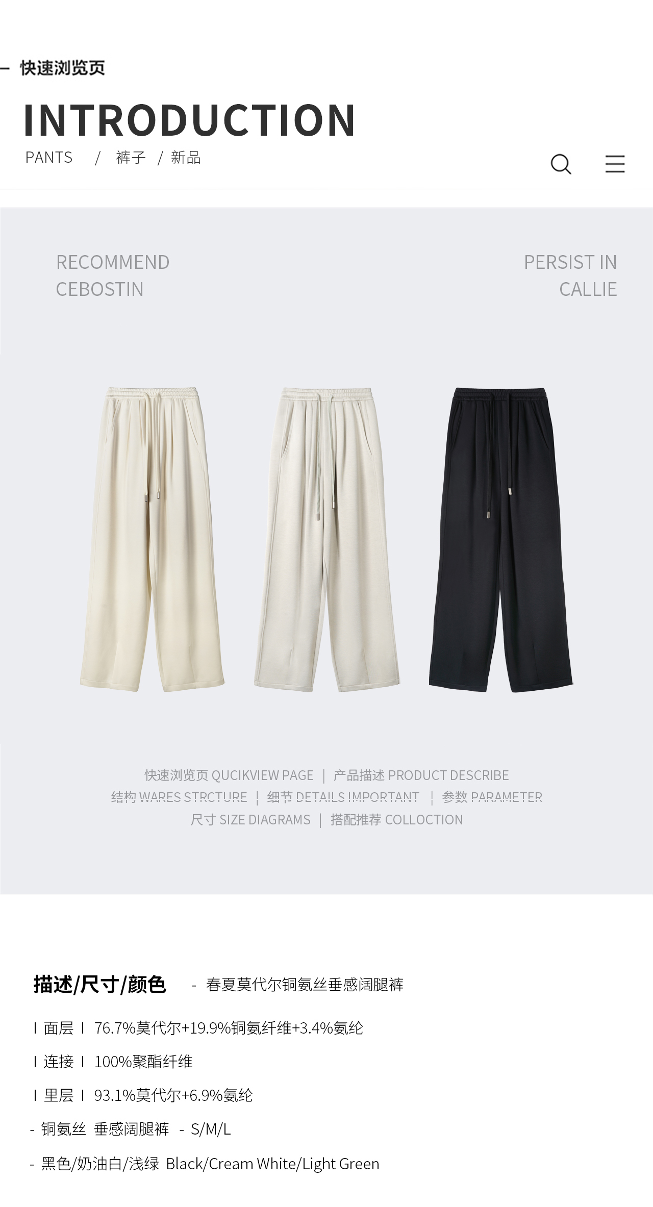 LILY MOON春夏莫代尔铜氨丝垂感阔腿裤LM1203