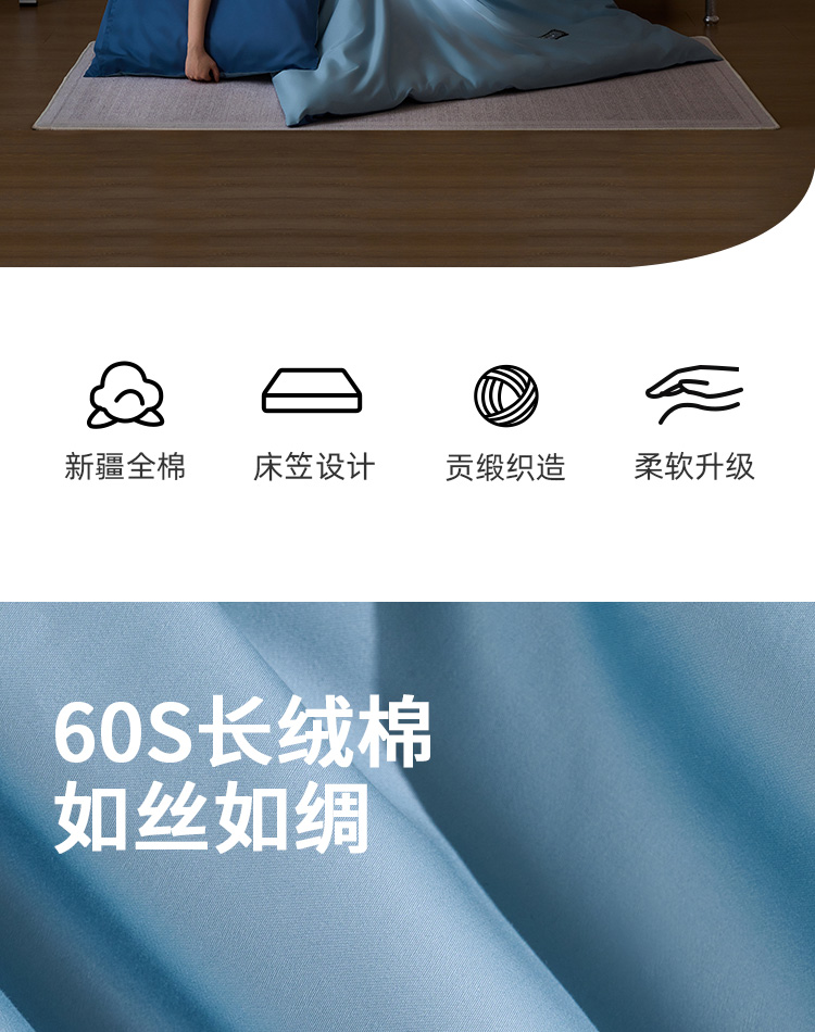 佳丽斯60支床上六件套纯棉被套床笠轻奢床上用品全棉贡缎