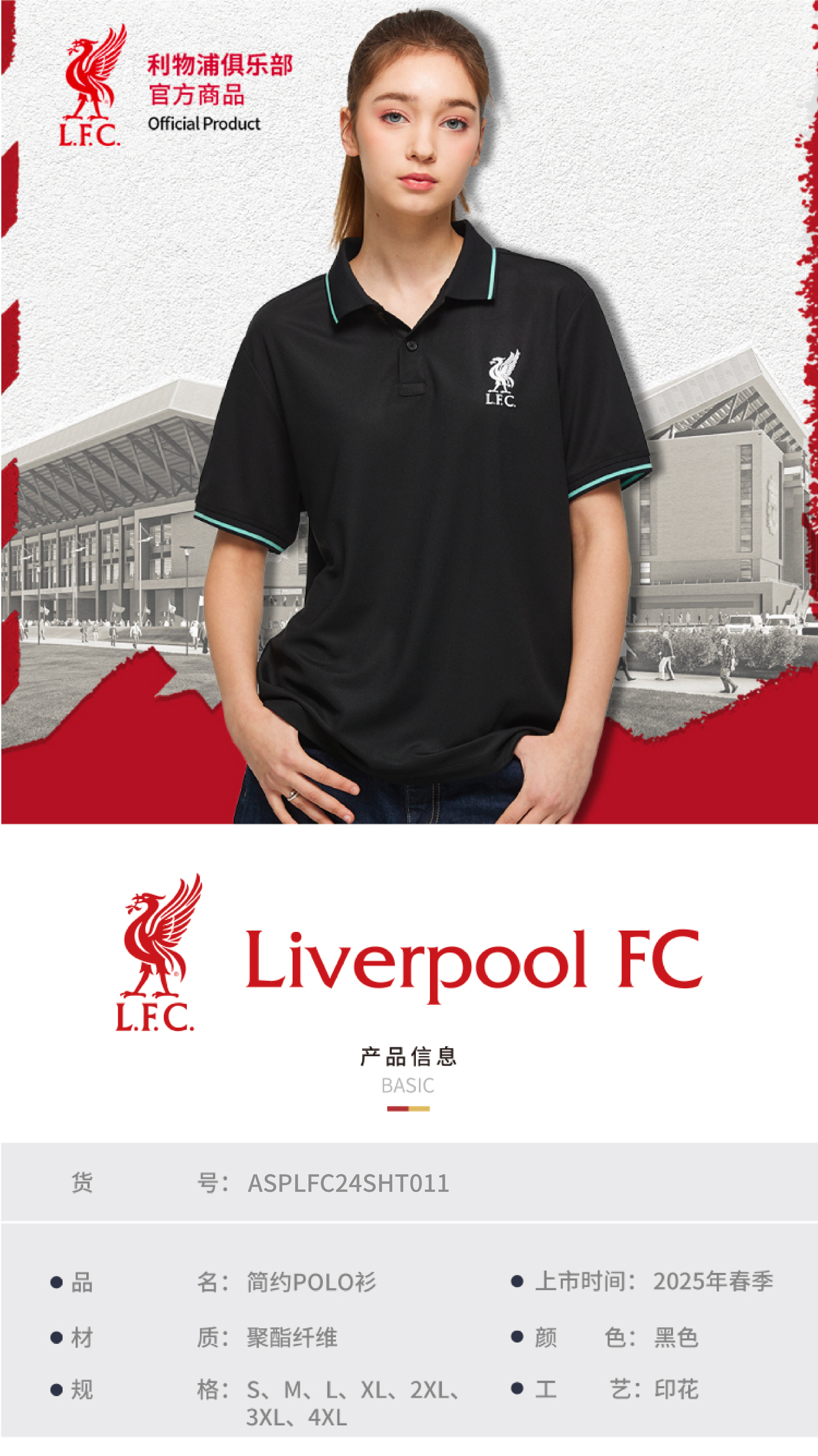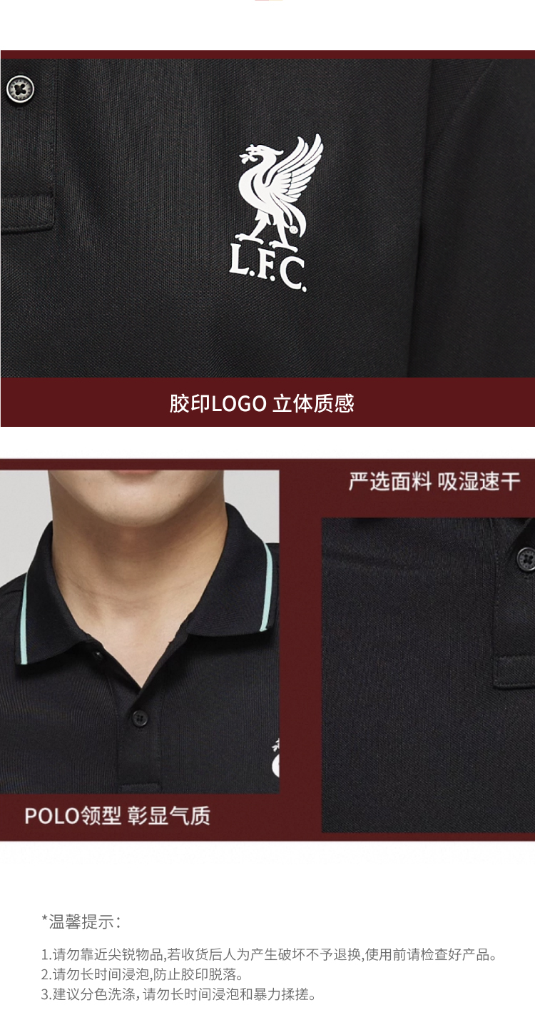 【官方正版】利物浦俱乐部 | 简约透气户外运动男黑绿POLO衫