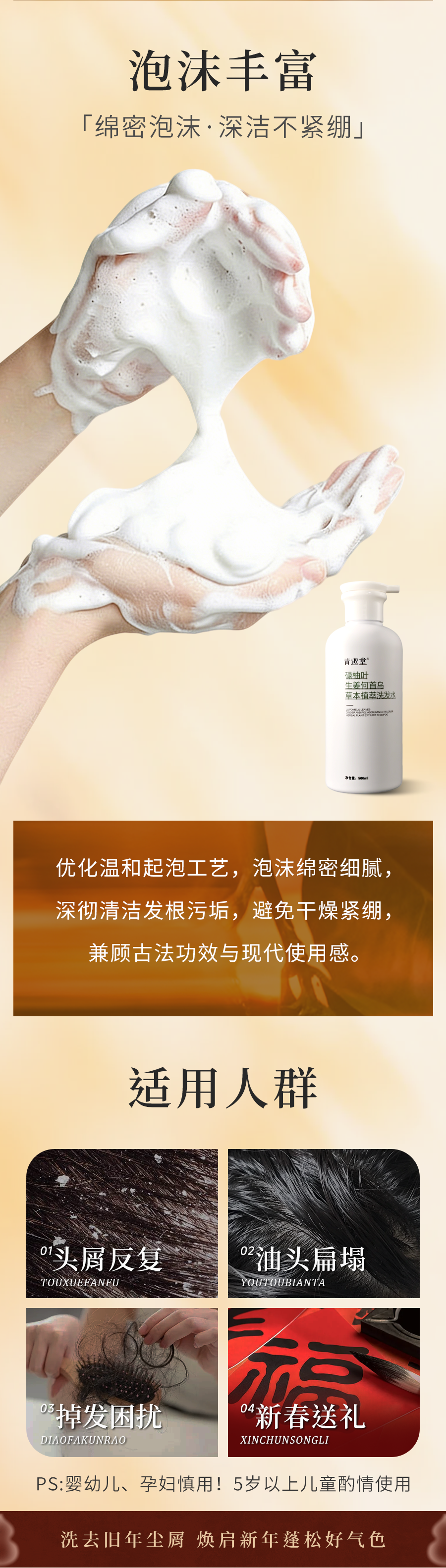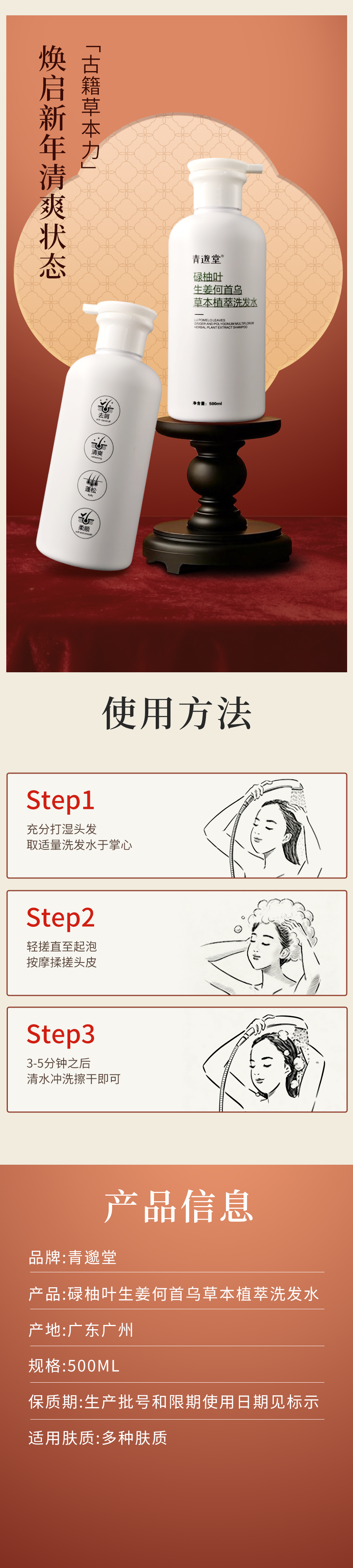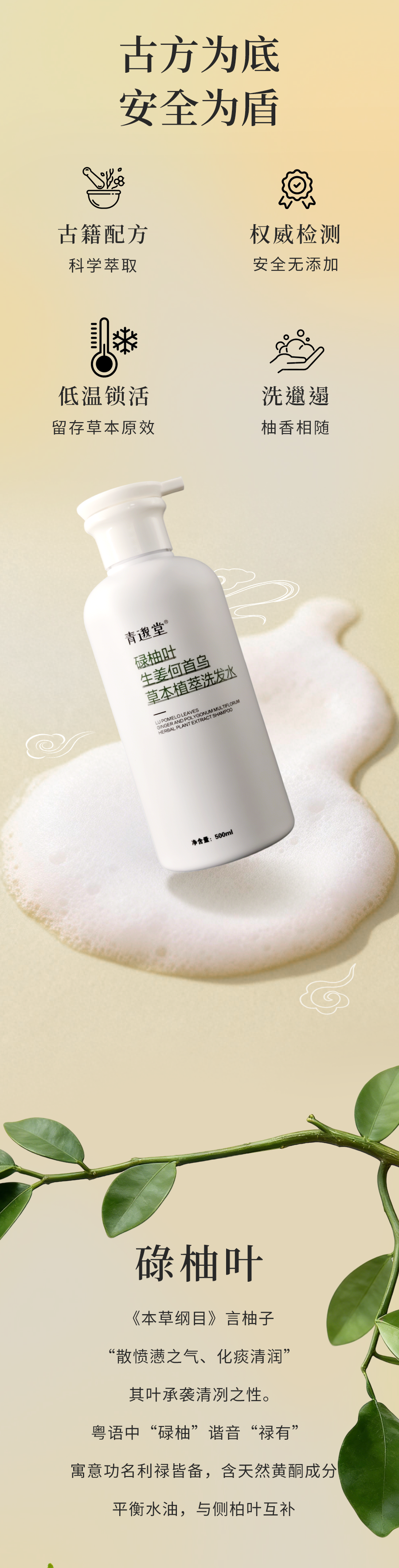 【古方植萃养发,秀发浓密如初】青邈堂 碌柚叶生姜何首乌草本植萃洗发水