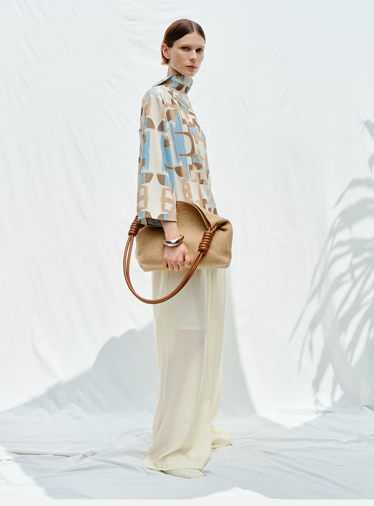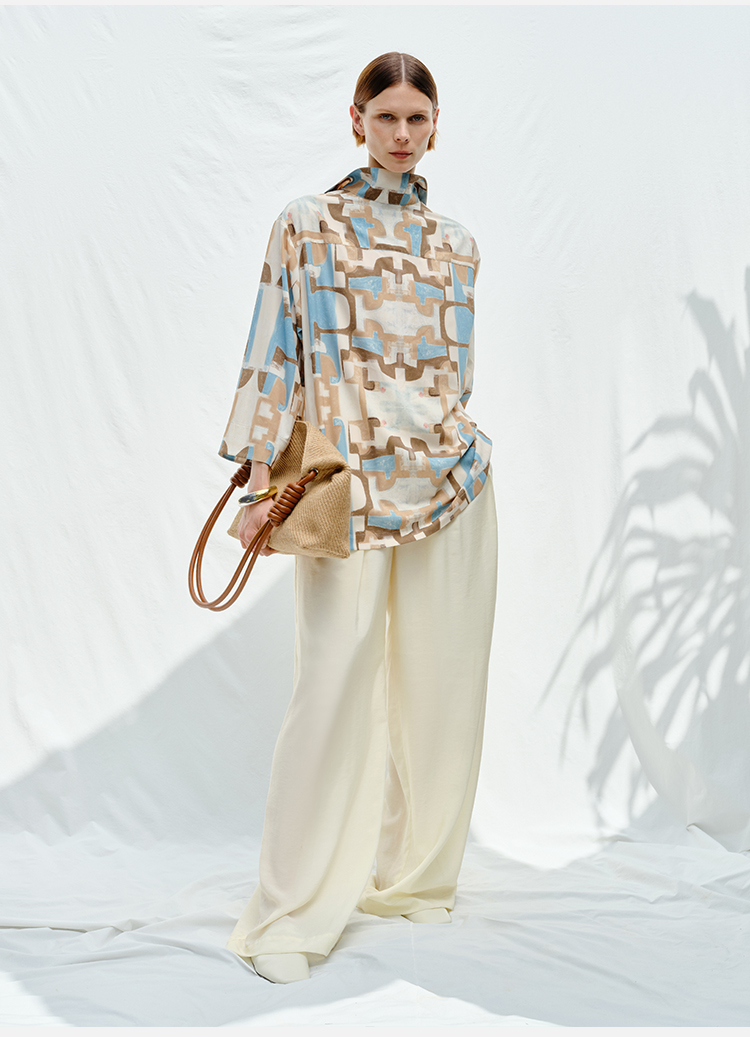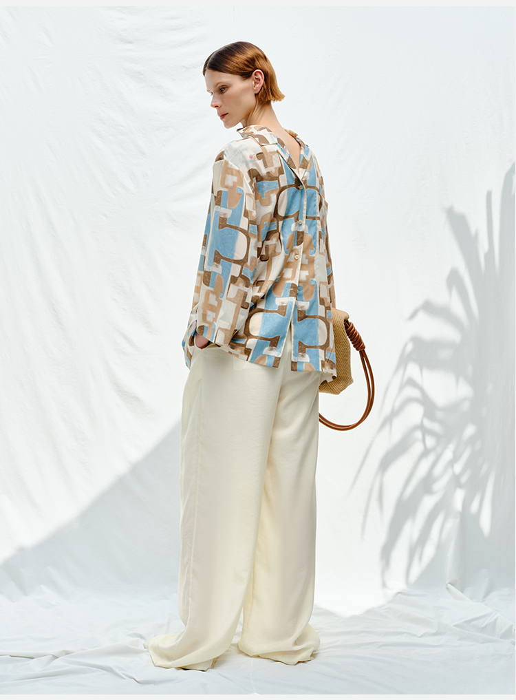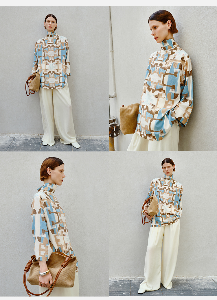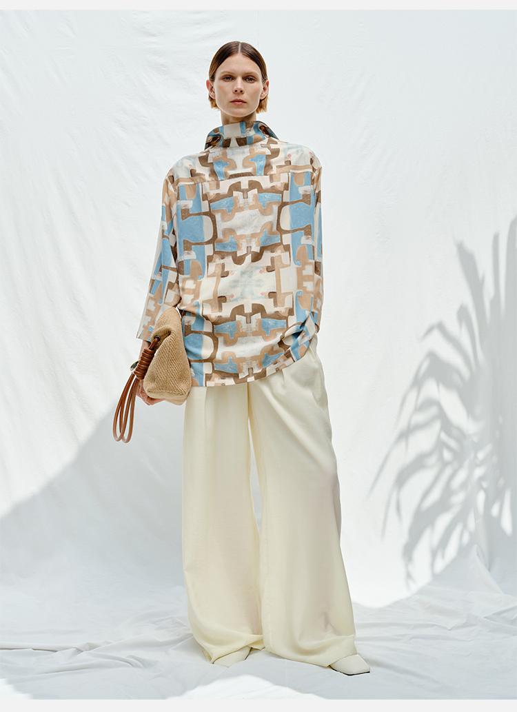 HIDEMI花苞几何设计感衬衫 白色/藏蓝色