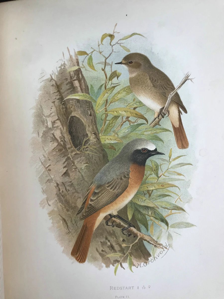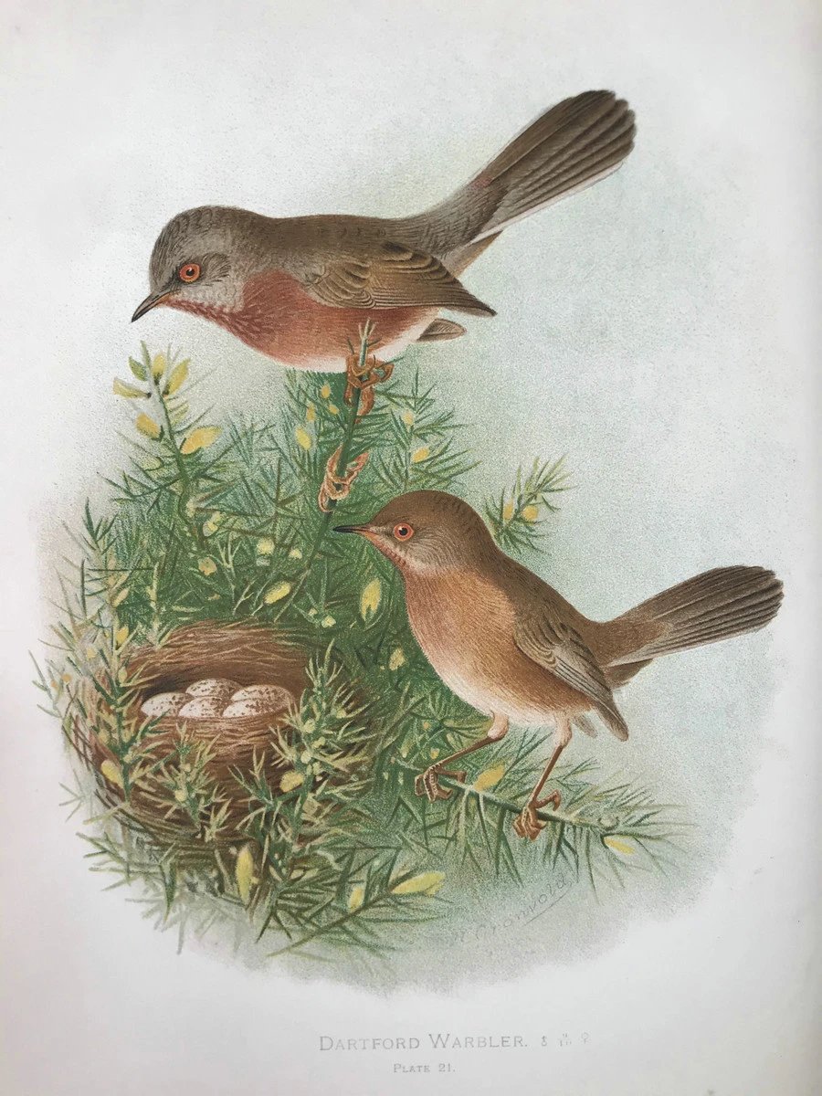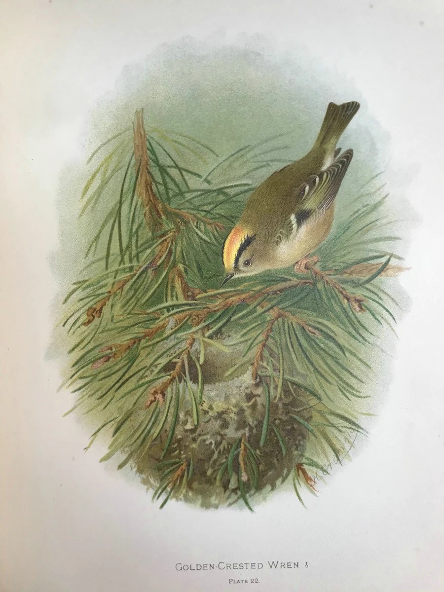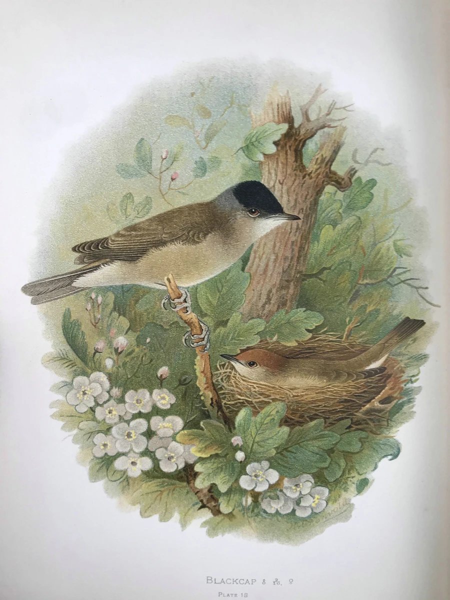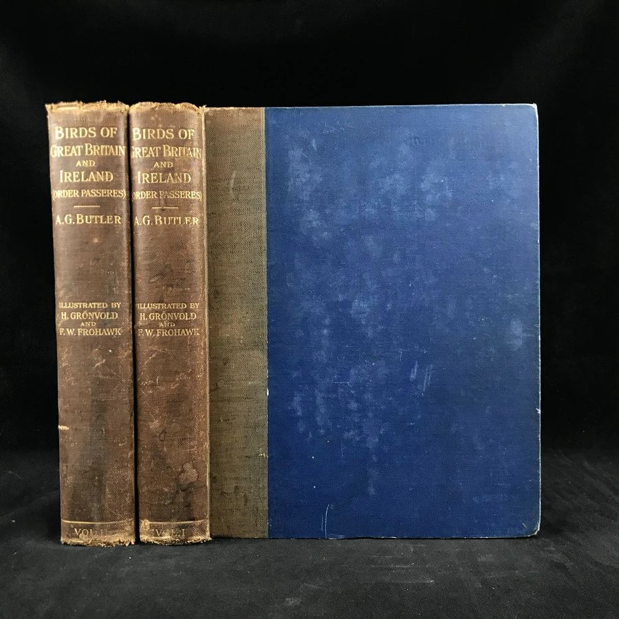 29.5*23.5cm!约20世纪早期 大不列颠与爱尔兰鸟类图鉴(全2卷) 115幅彩色插图 漆布精装大16开