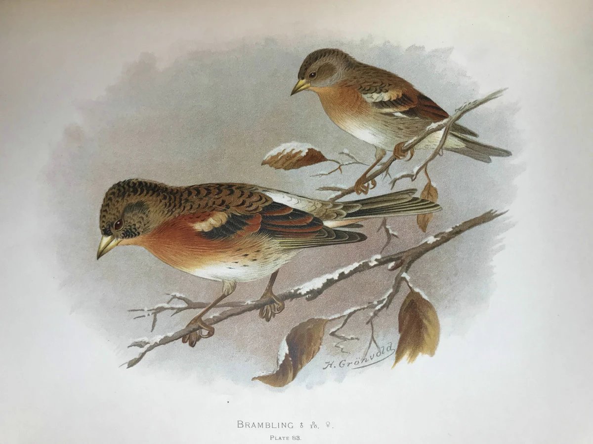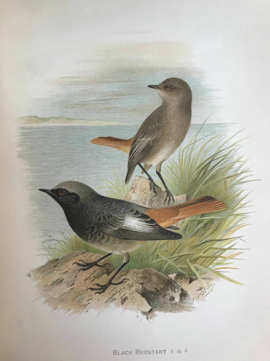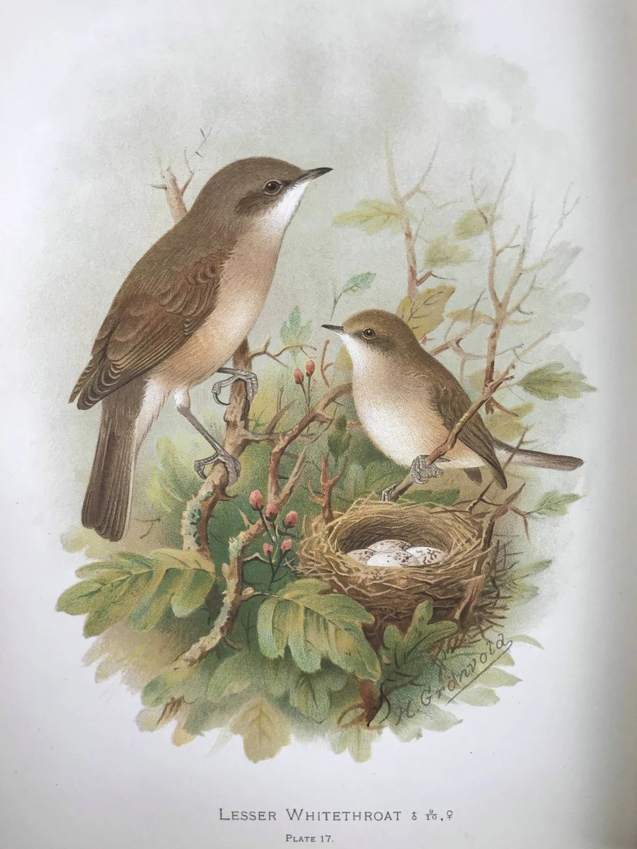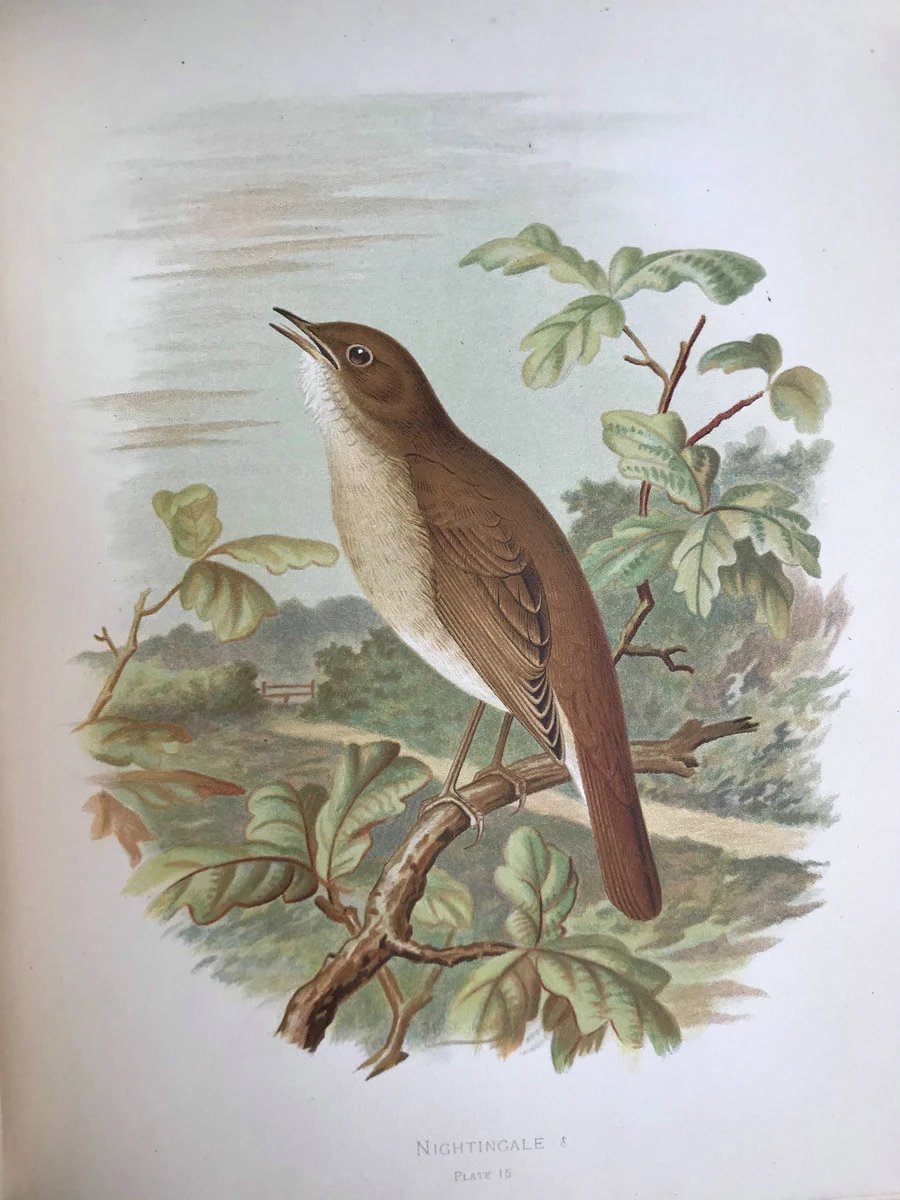 29.5*23.5cm!约20世纪早期 大不列颠与爱尔兰鸟类图鉴(全2卷) 115幅彩色插图 漆布精装大16开