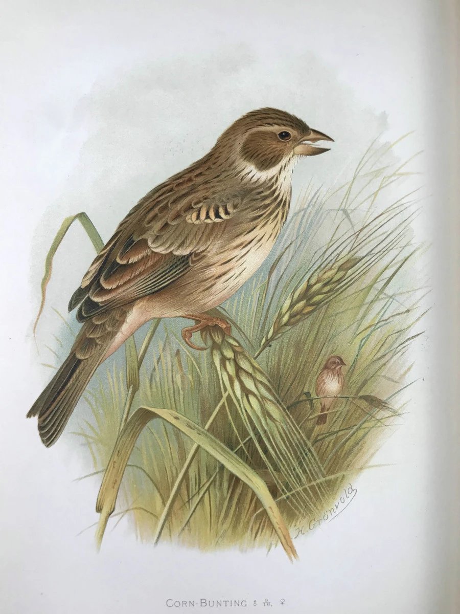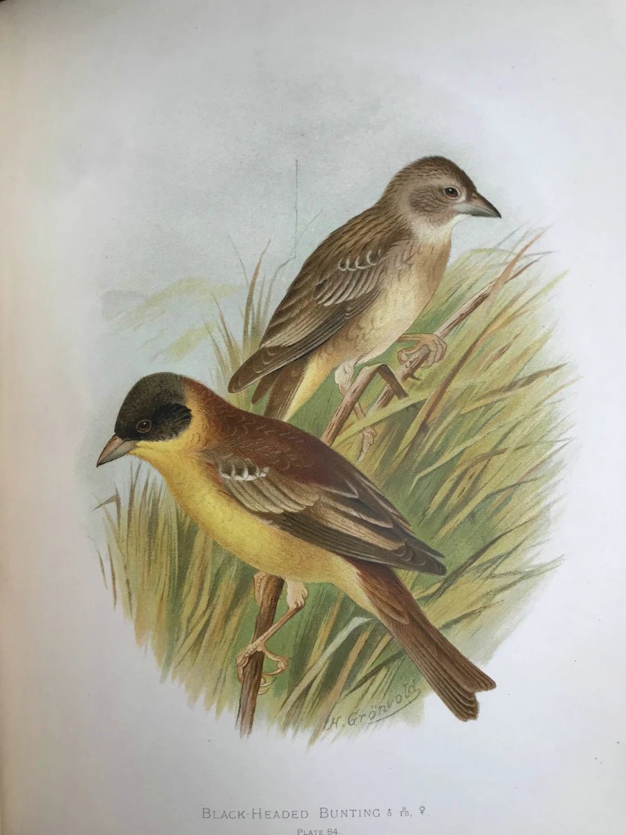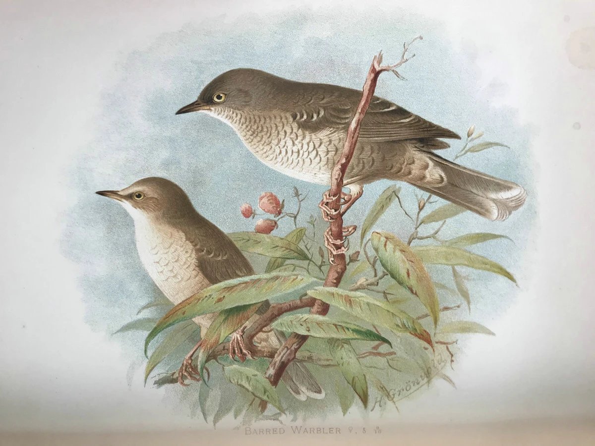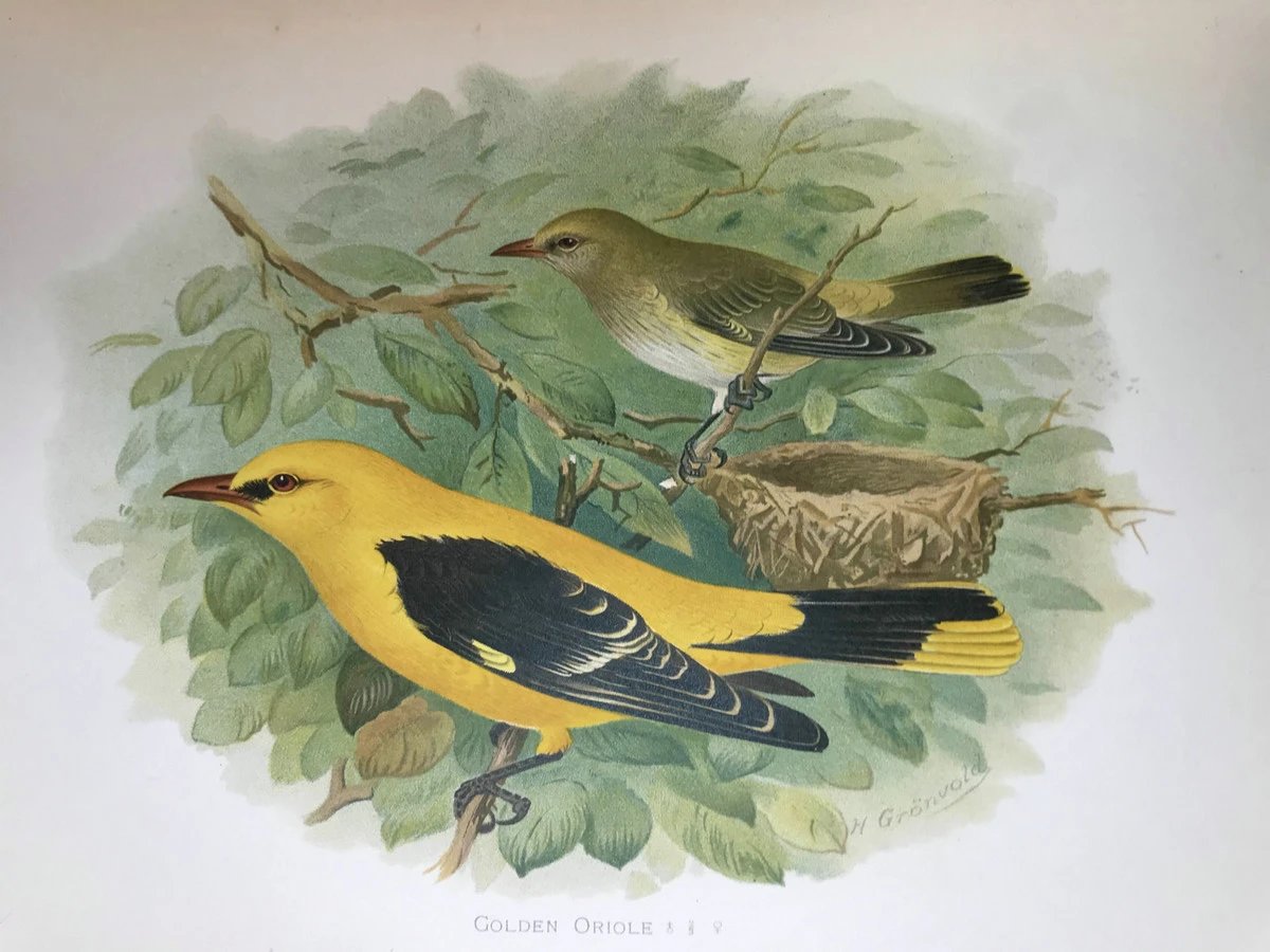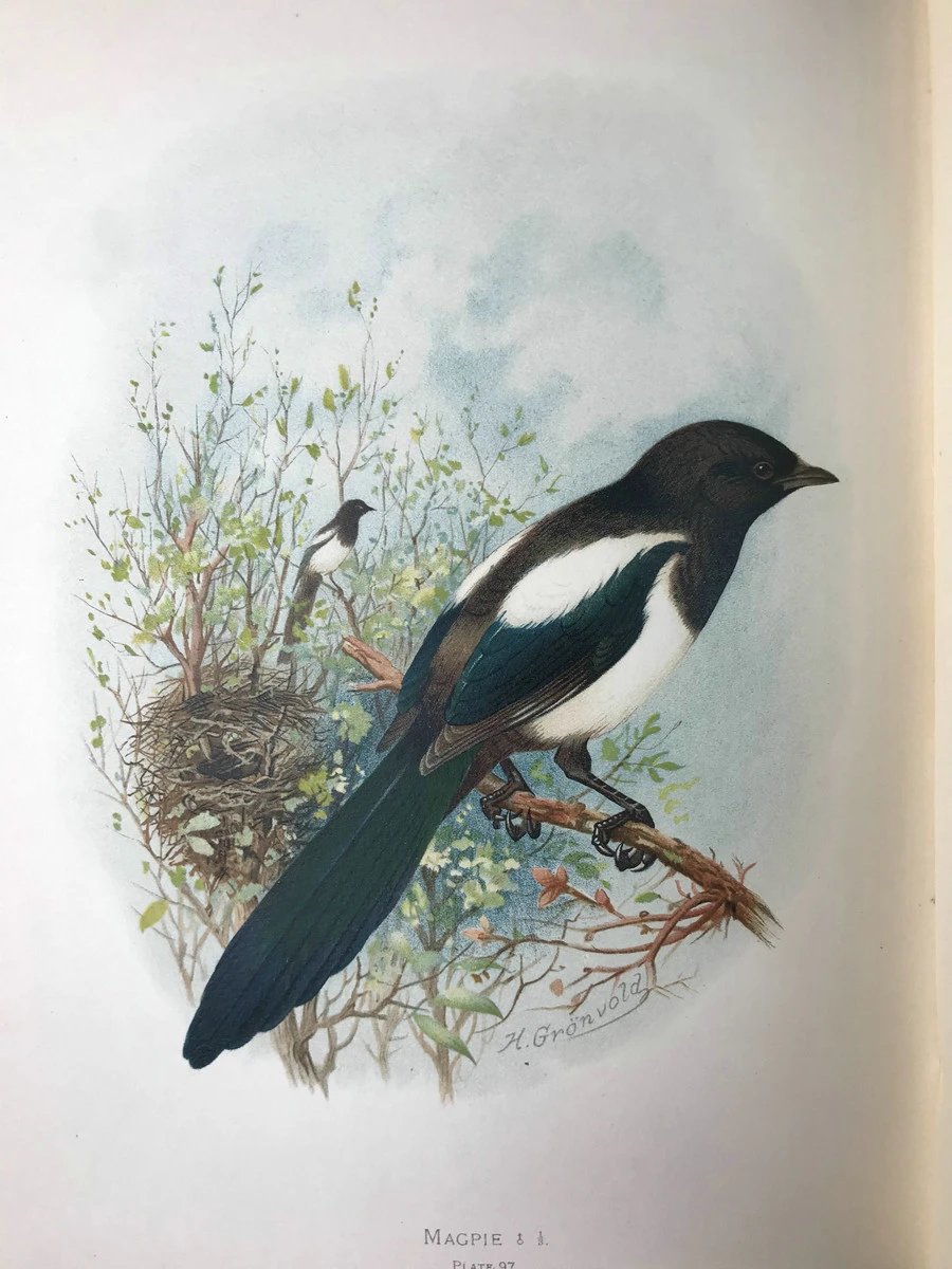 29.5*23.5cm!约20世纪早期 大不列颠与爱尔兰鸟类图鉴(全2卷) 115幅彩色插图 漆布精装大16开