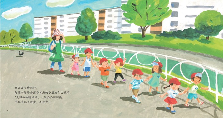 “太阳公公暖洋洋,太阳公公闪闪亮,手拉手儿去散步,去散步!”一个晴朗的日子,老师带小朋友们外出去散步。于是,一场想象和探险之旅开启了。