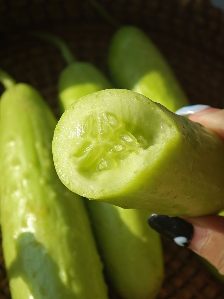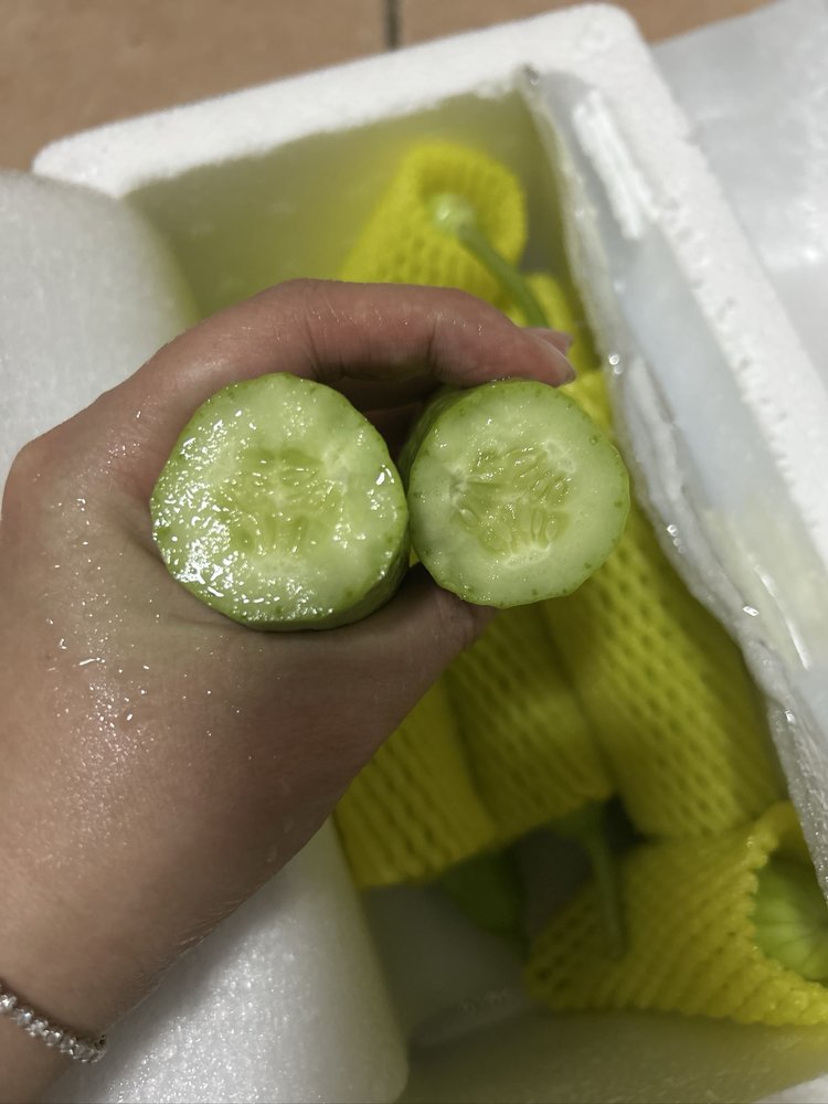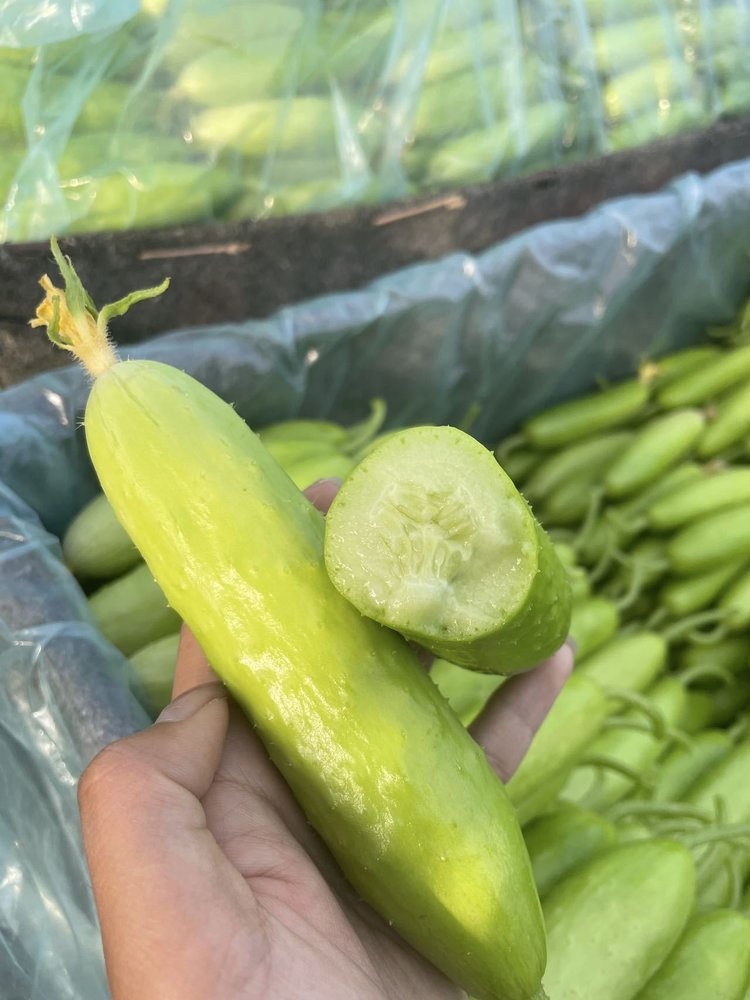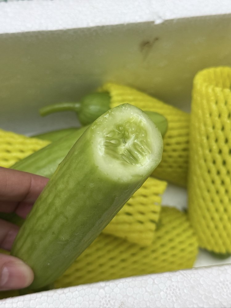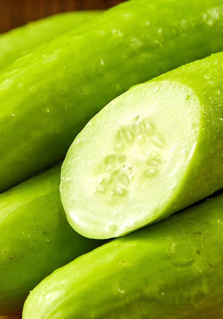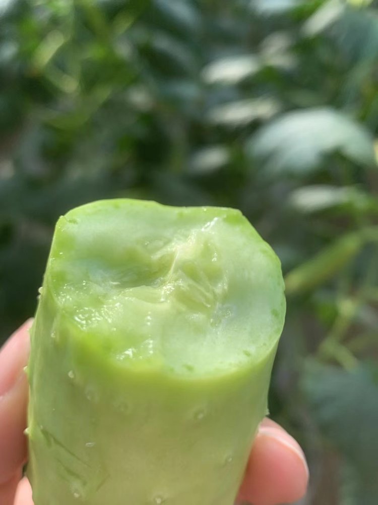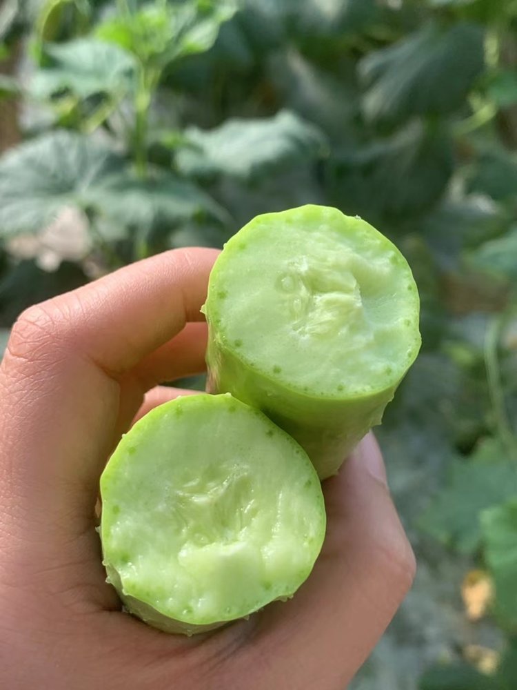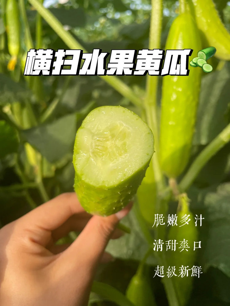 浅绿透白的果肉像裹着晨露💦 浓郁黄瓜香在舌尖炸开 清甜汁水疯狂飙汁‼️ 皮薄到透光 肉厚超3枚硬币 冷链锁鲜 到手还带着田间露珠 这才是真正会呼吸的黄瓜啊!