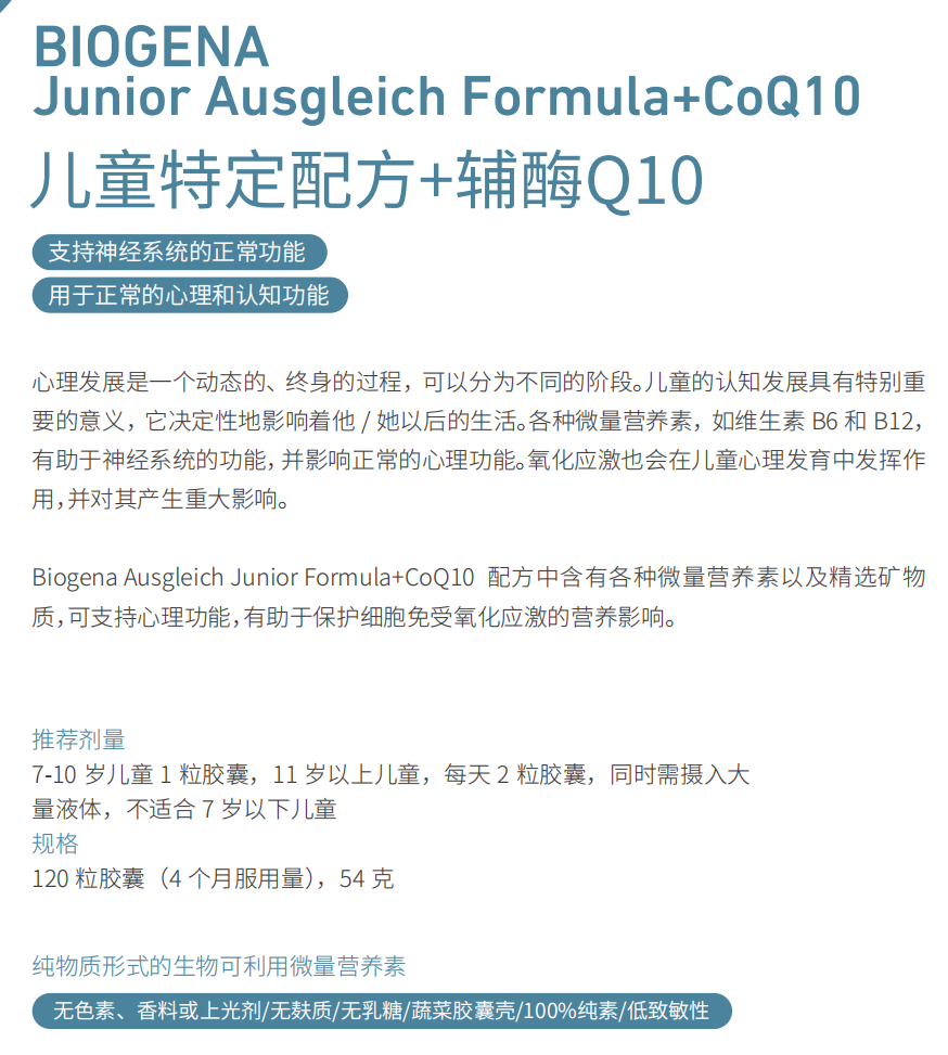 【新品】儿童特定配方+辅酶Q10 120粒/瓶【Biogena葆淳】