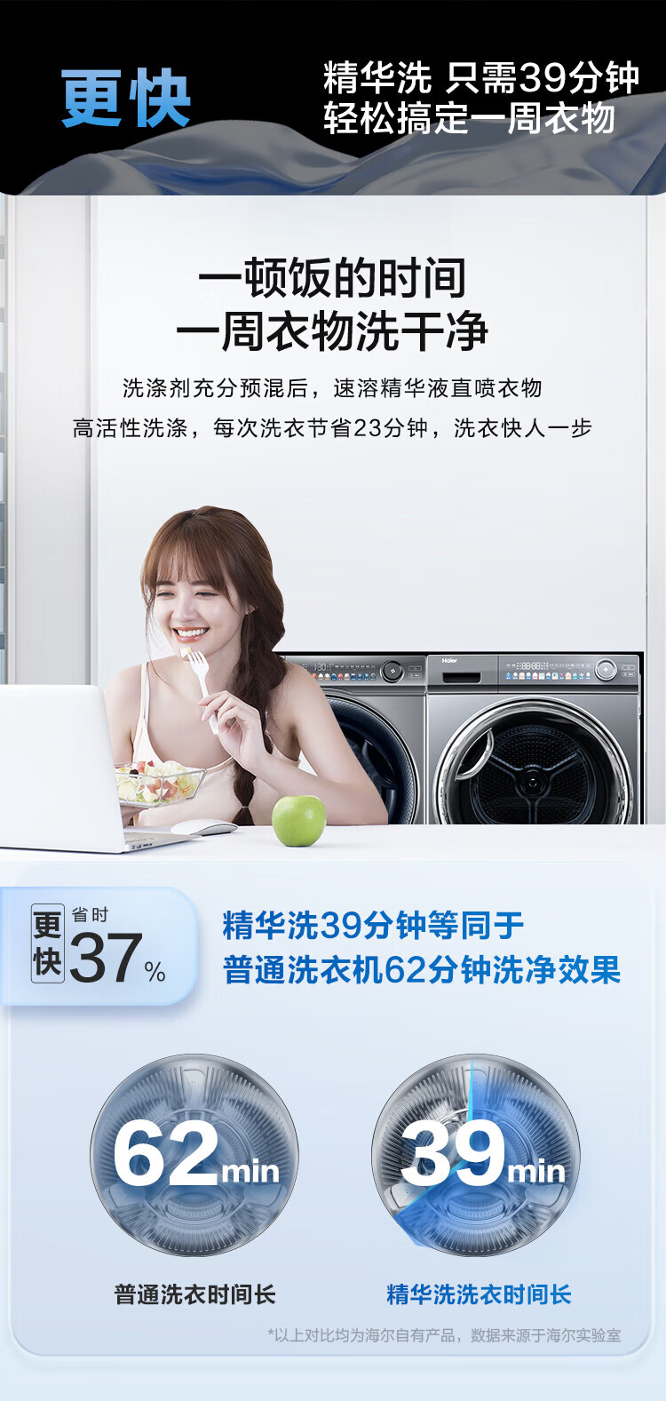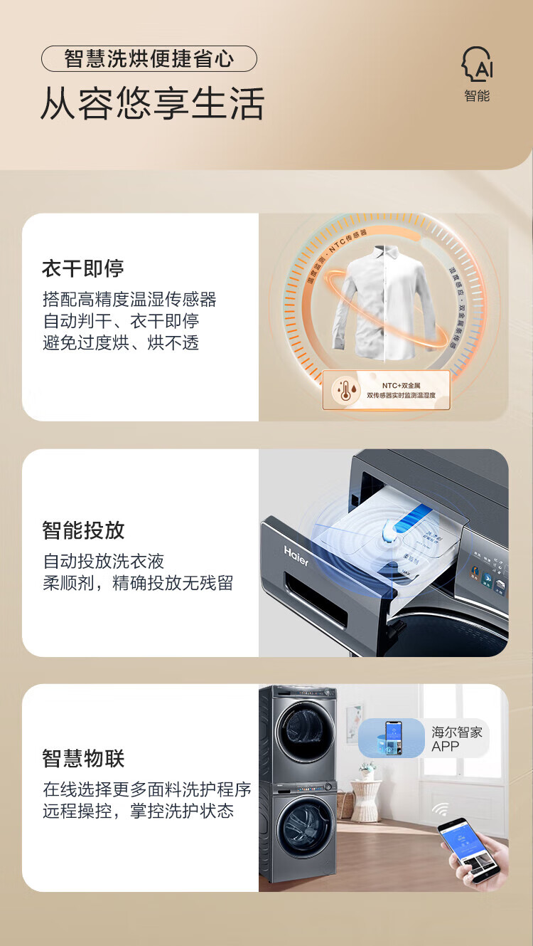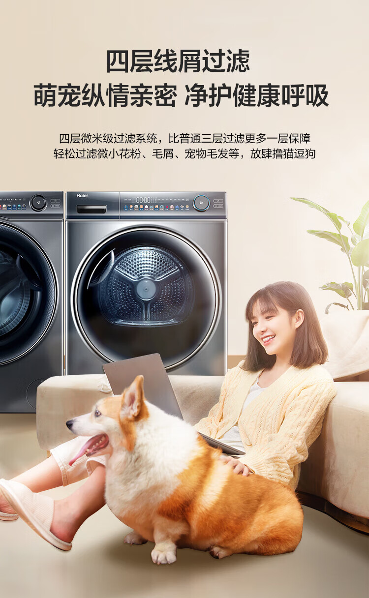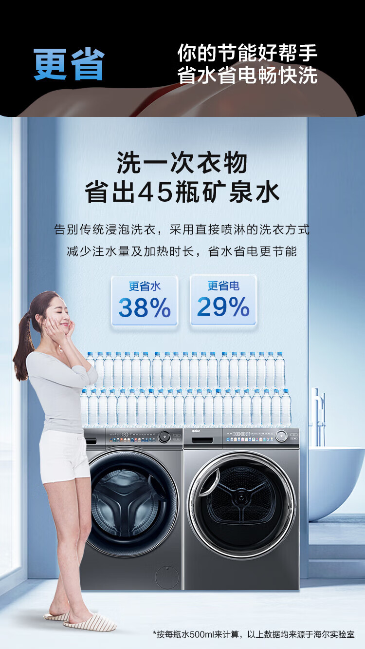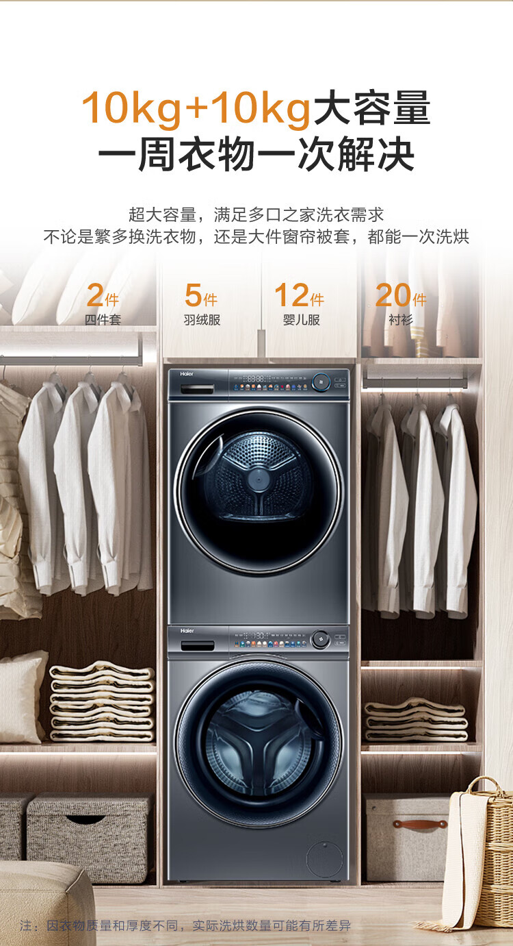 海尔(Haier)云溪SL6+81洗烘套装 10Kg精华洗滚筒洗+双擎热泵烘1.1洗净 以旧换新