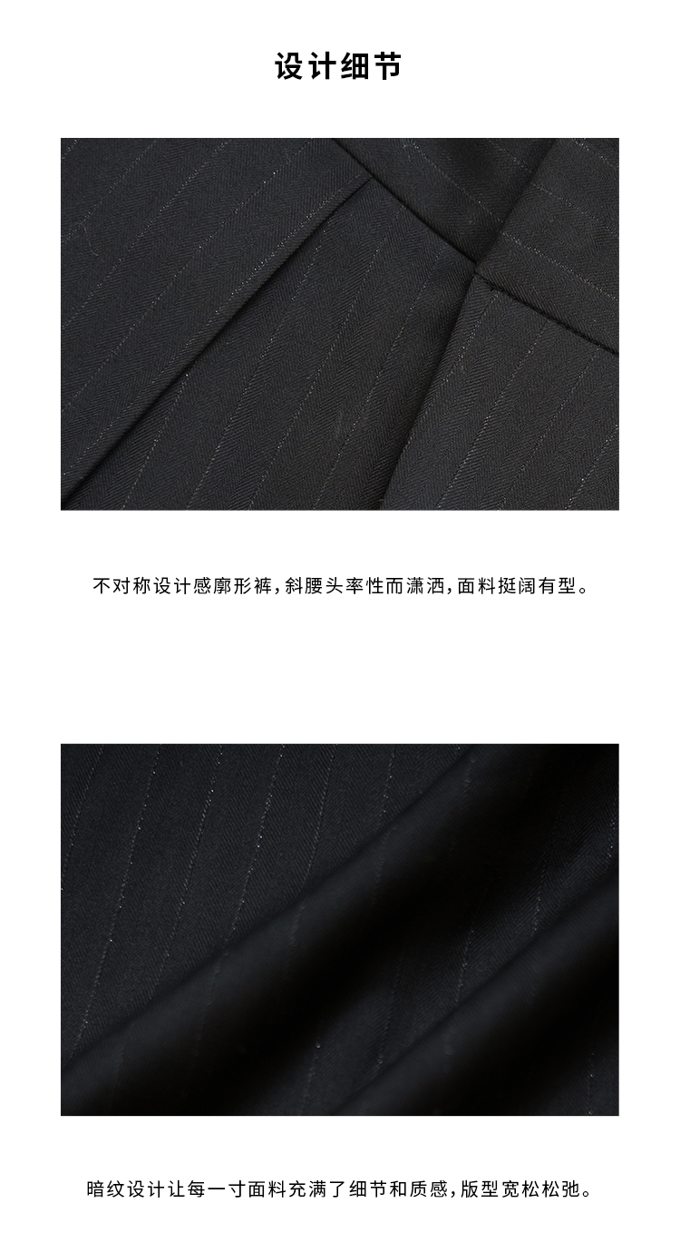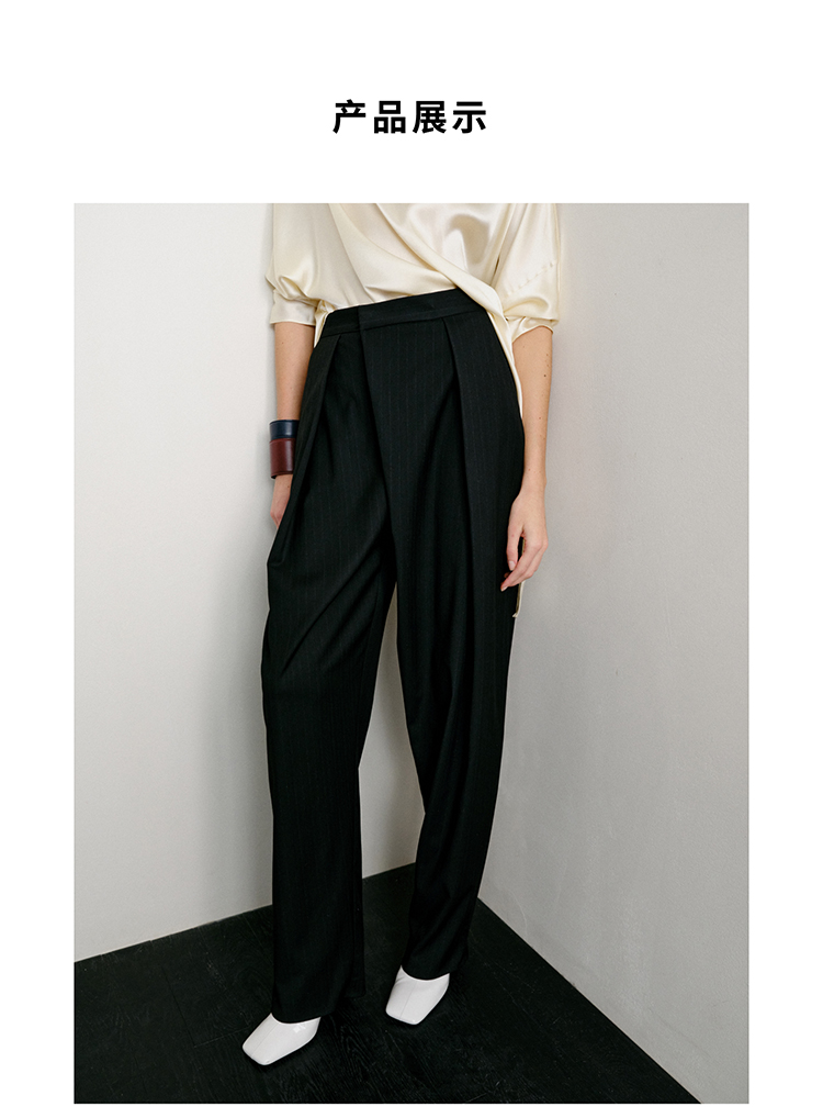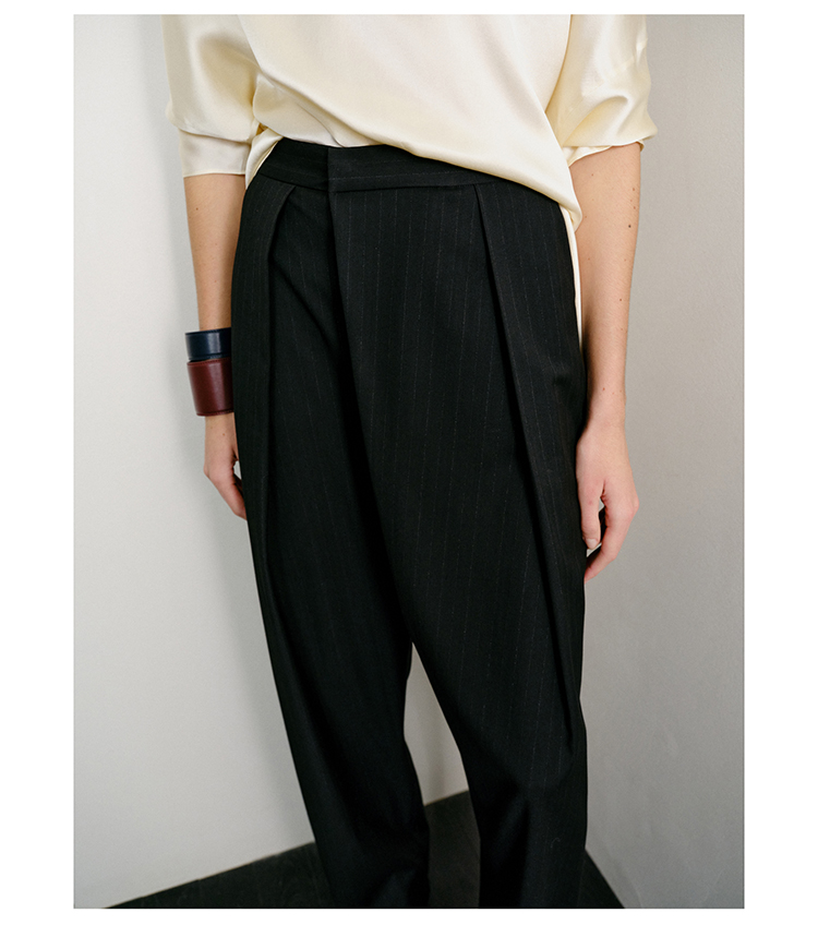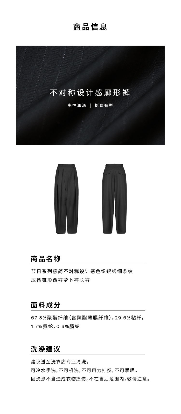 HIDEMI 节日系列极简不对称设计感色织银线细条纹压褶锥形西裤萝卜裤长裤