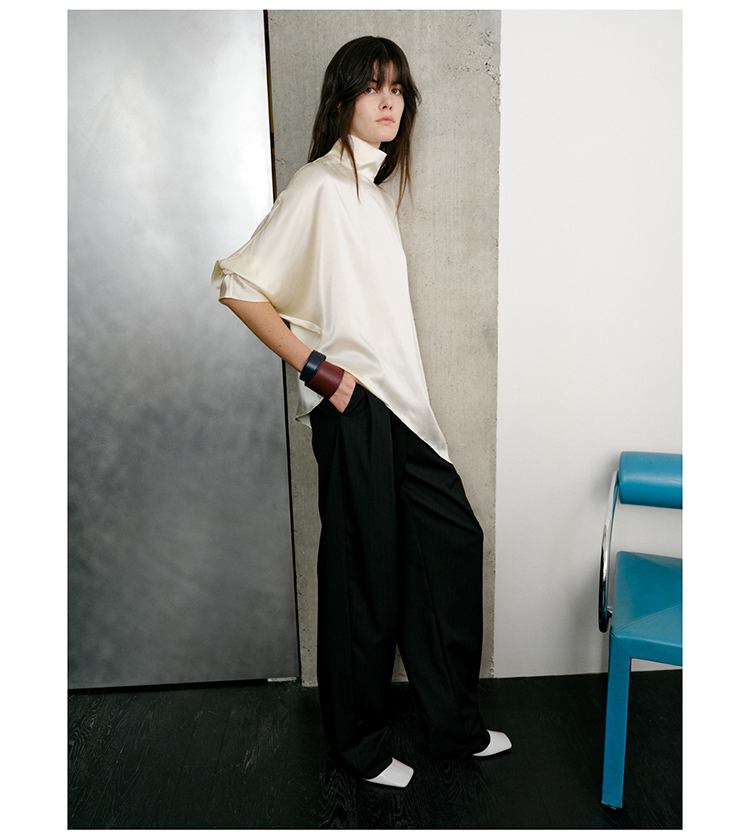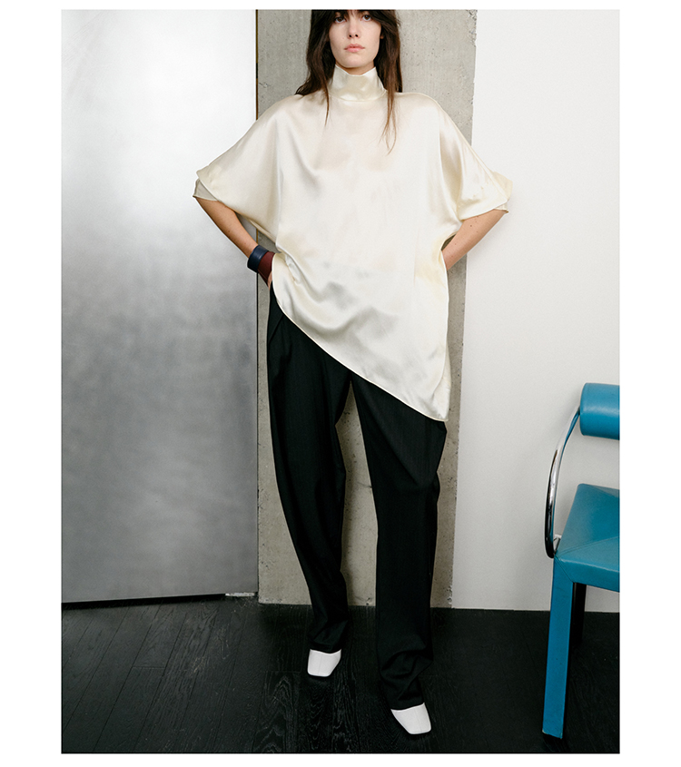 HIDEMI “我们做印花”特殊纸感几何桌椅剪影式印花廓形衬衫