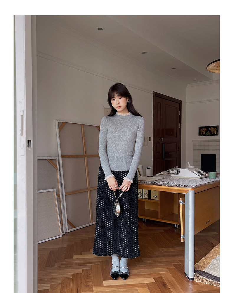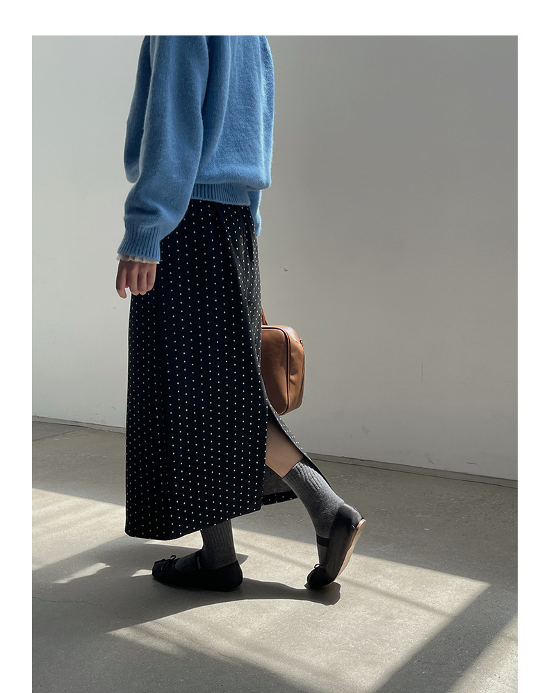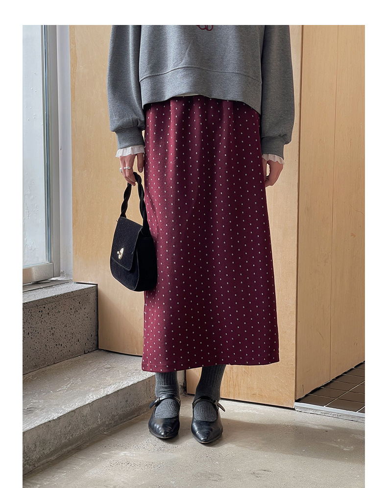 复古毛呢波点裙