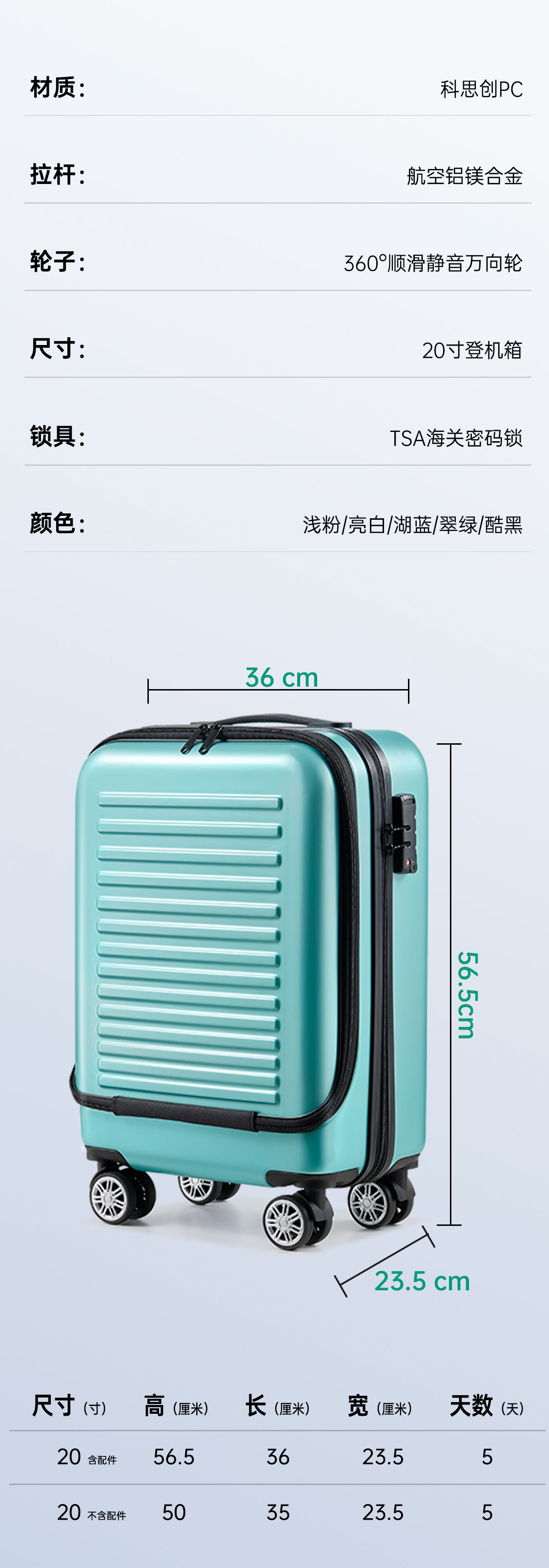 银座最新前开盖商务登机箱6810系列
