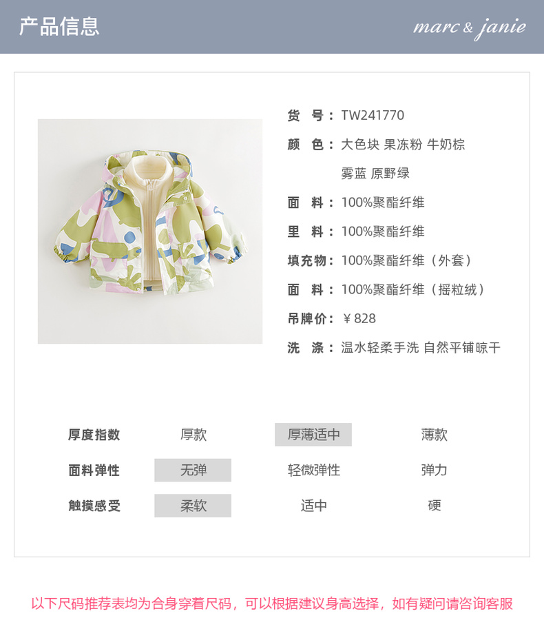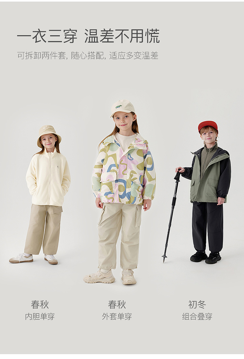 【三防】马克珍妮男女童户外早秋外套摇粒绒内胆三合一241770