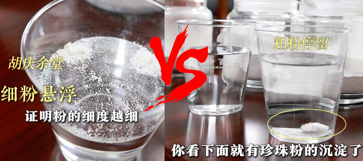 悬浮和沉淀法- 品质好的珍珠粉细粉越细可以悬浮于手上