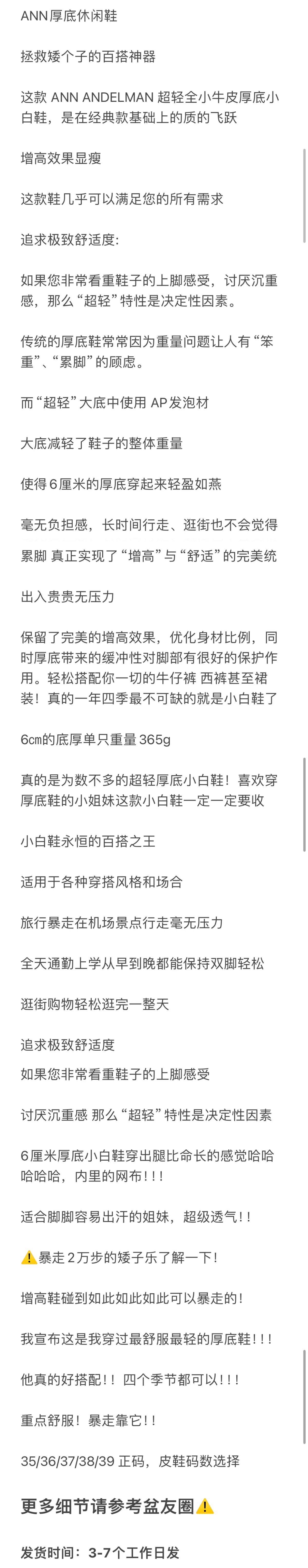 重磅渠道 ANN厚底松糕小白鞋 6cm厚底 超轻发泡底!
