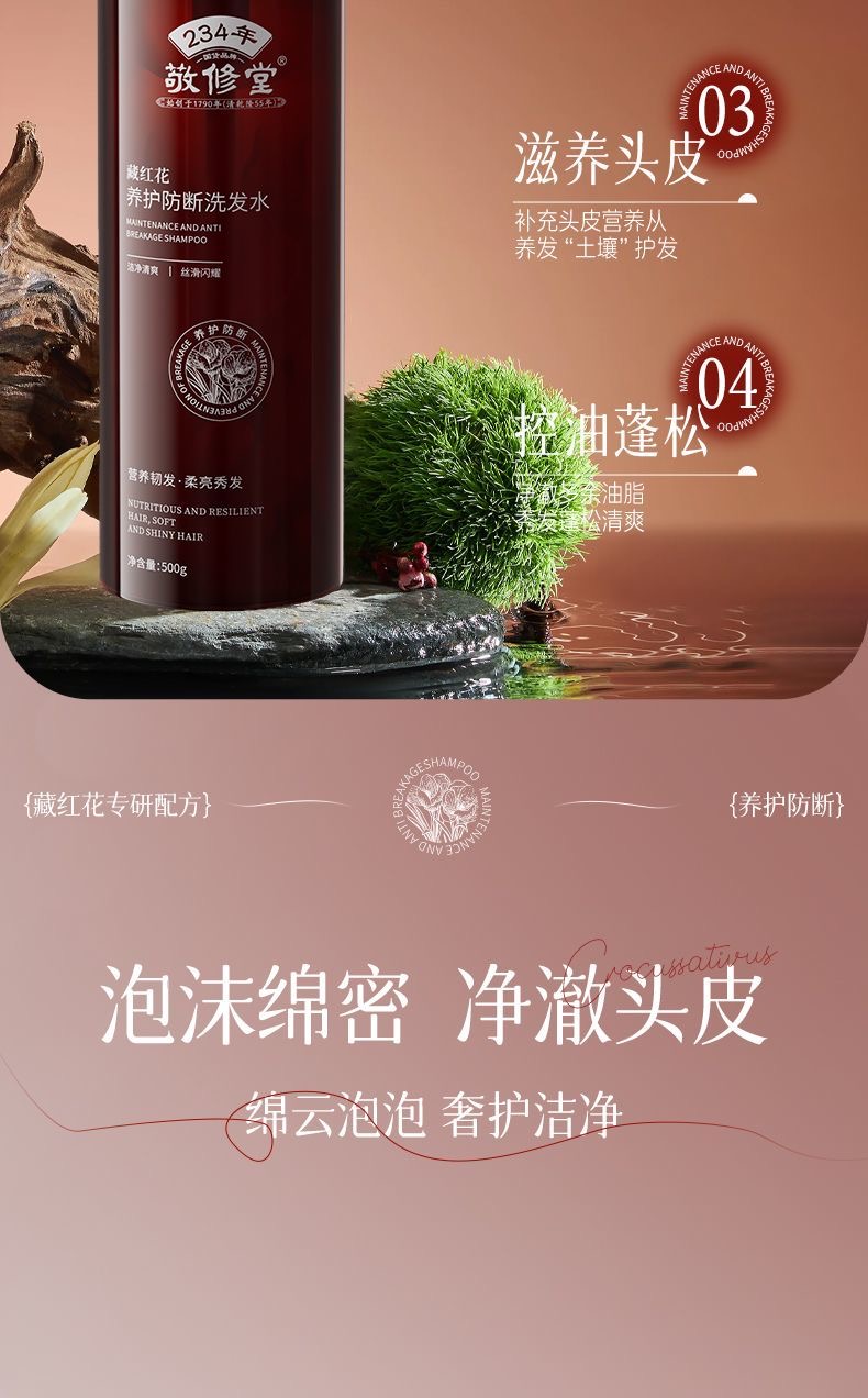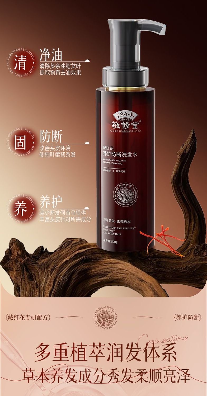 【新品上线 买2瓶送护发素1瓶】敬修堂藏红花养护防断发洗发水500g 大瓶装 草本养发控油蓬松滋养头皮