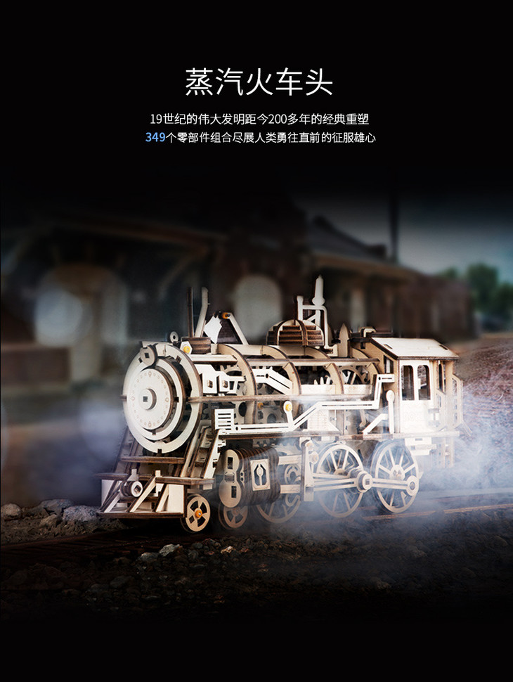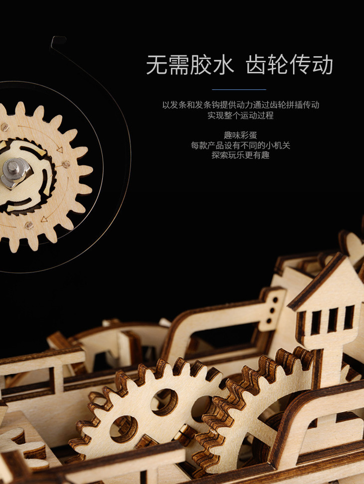 【3D立体拼图 机械转动飞艇模型】木质机械传动DIY拼装模型玩具 玩具礼物