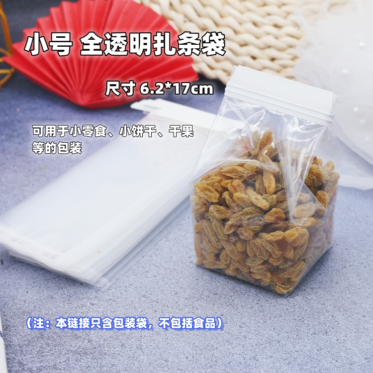 【小号】全透明扎条袋 加厚透明小袋子 果蔬干小零食糖果甜点卷边封口包装袋 约6.2*17cm