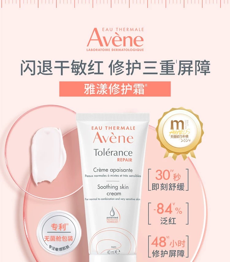 雅漾专研修护霜40ml保湿舒缓速修霜