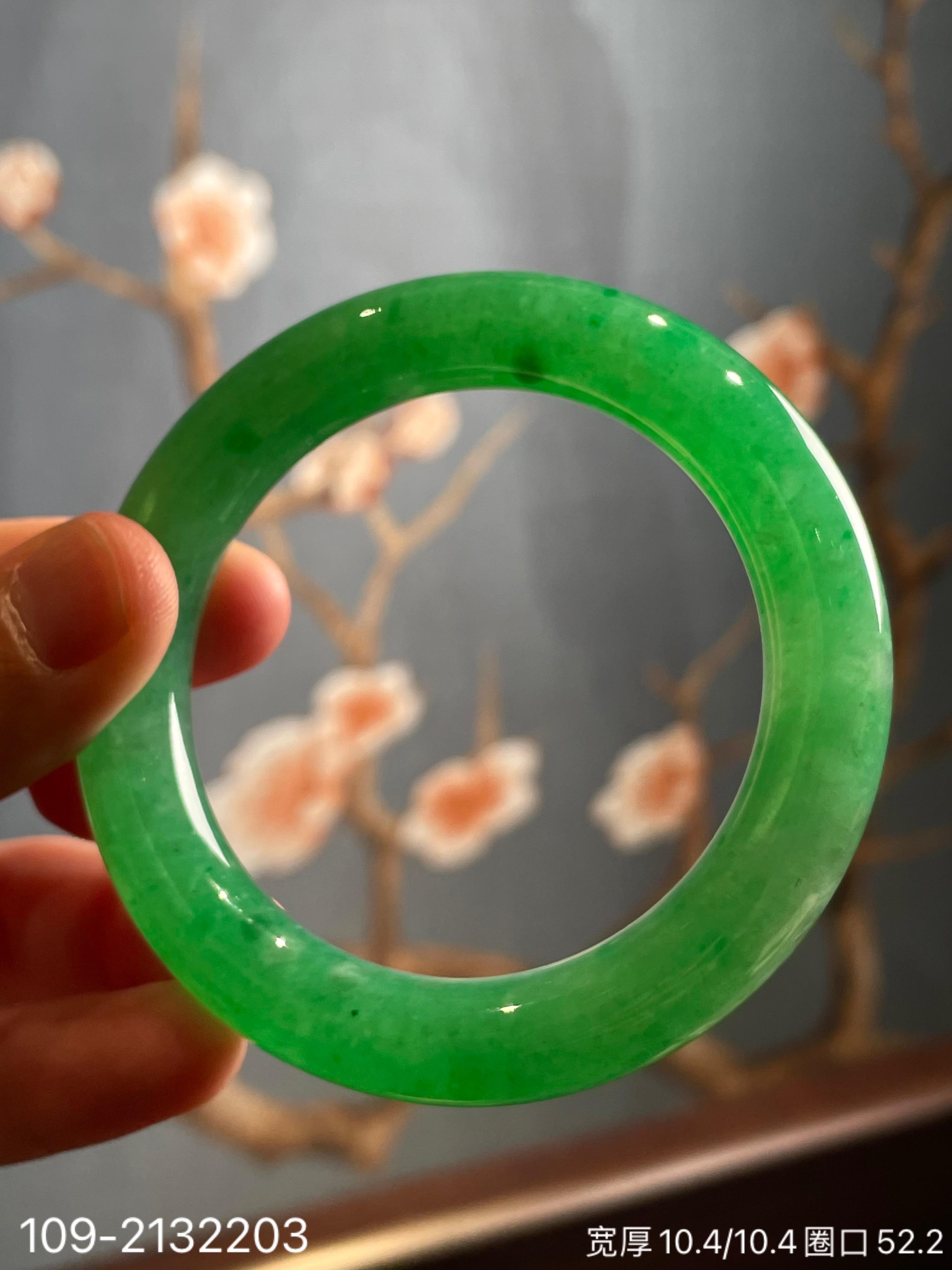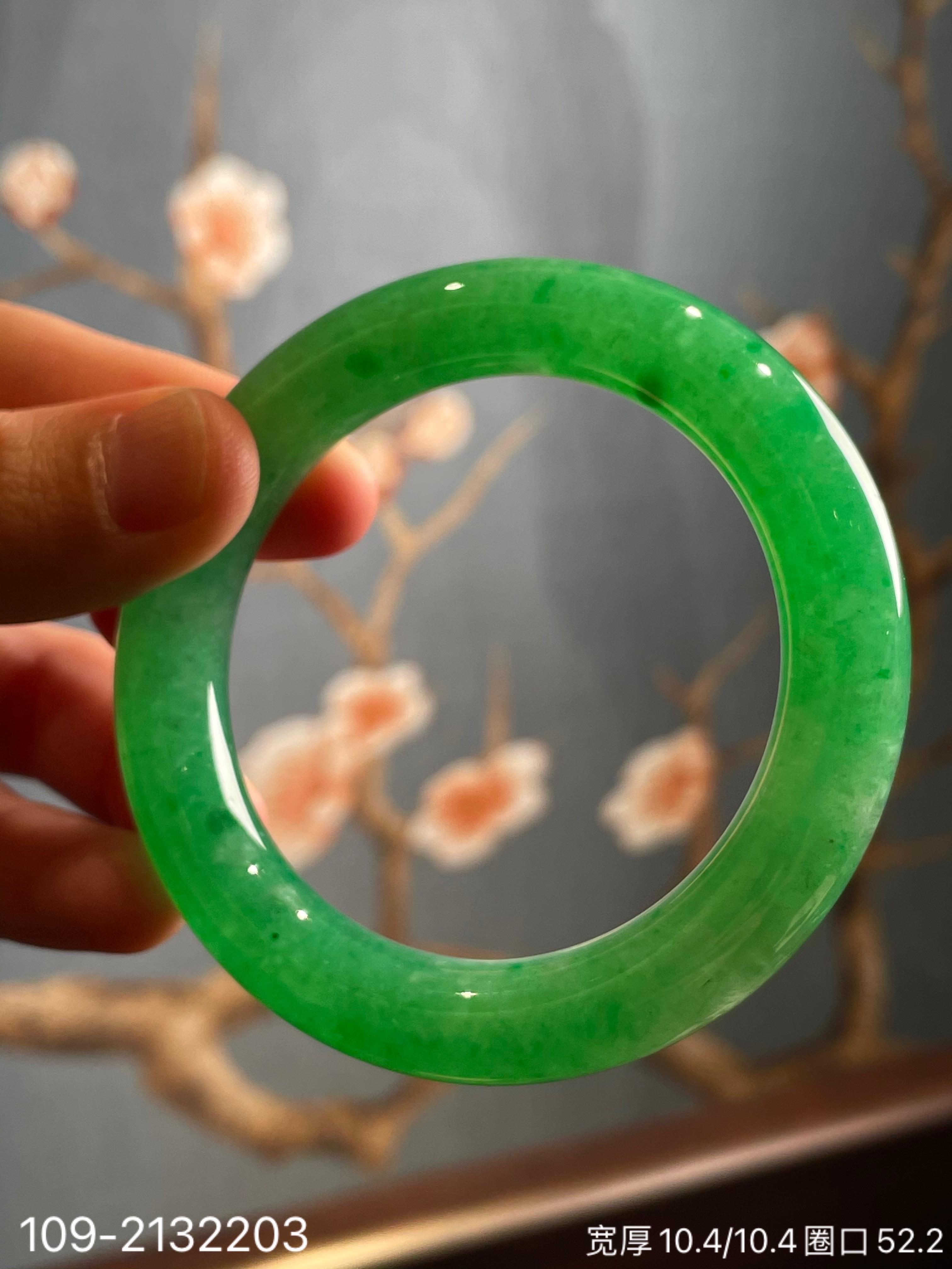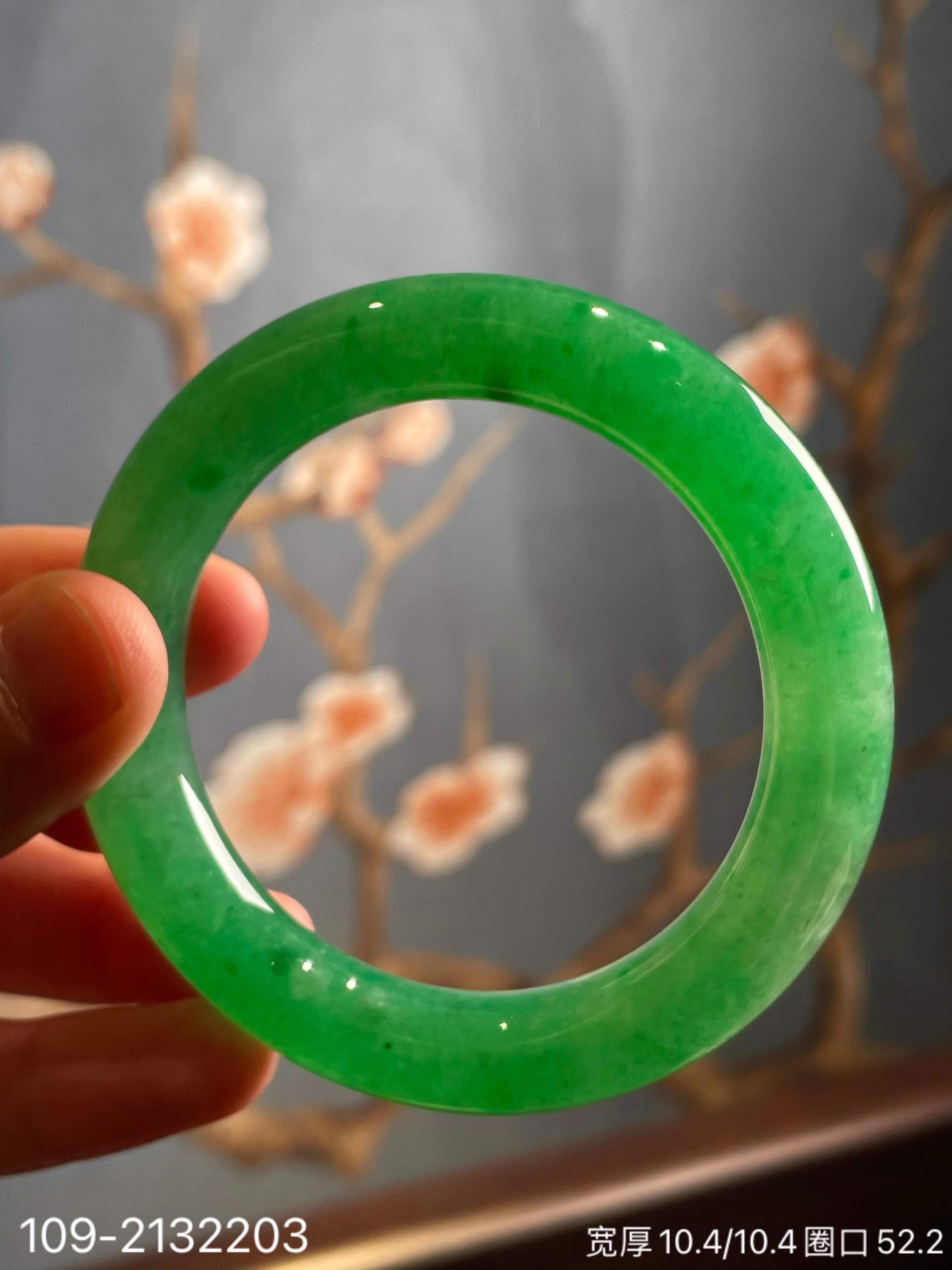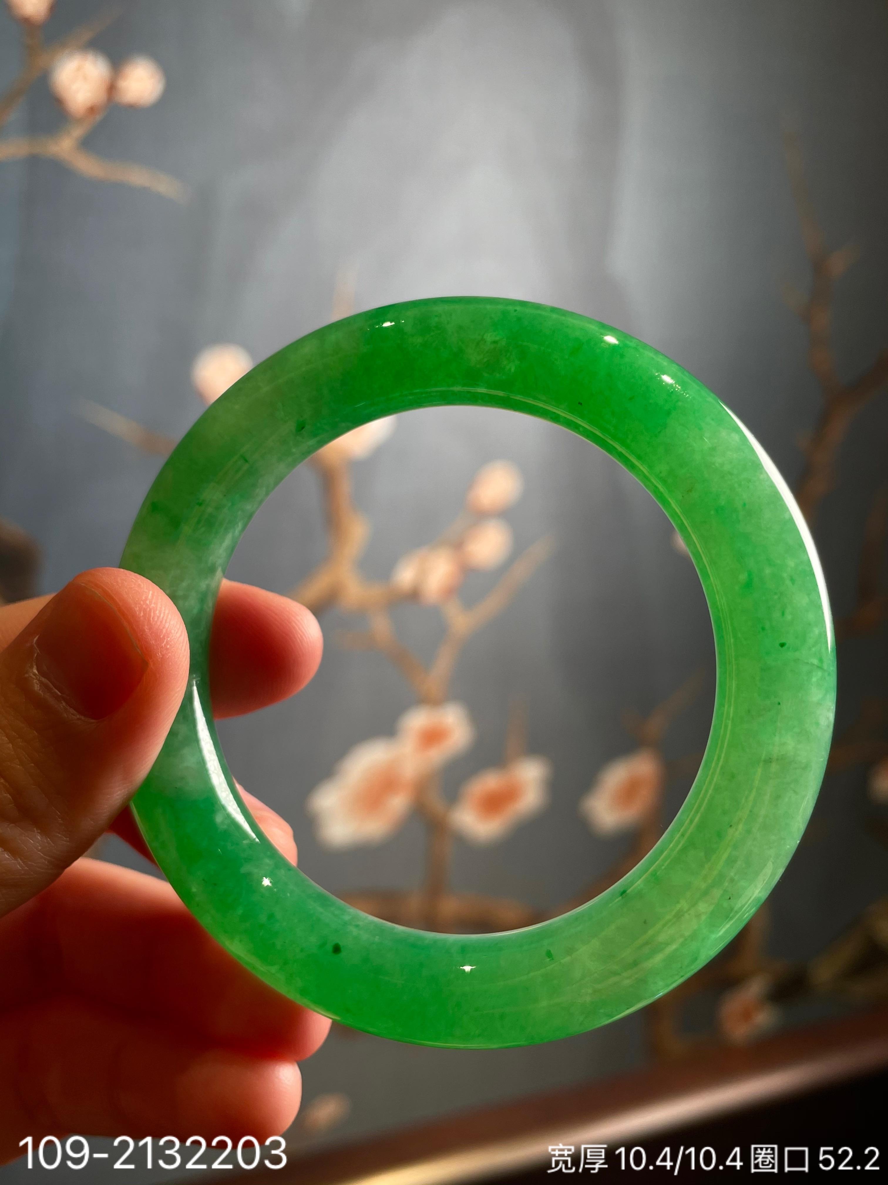 109-2132203,阳艳绿手镯。圈口52.2。具体价格微信咨询