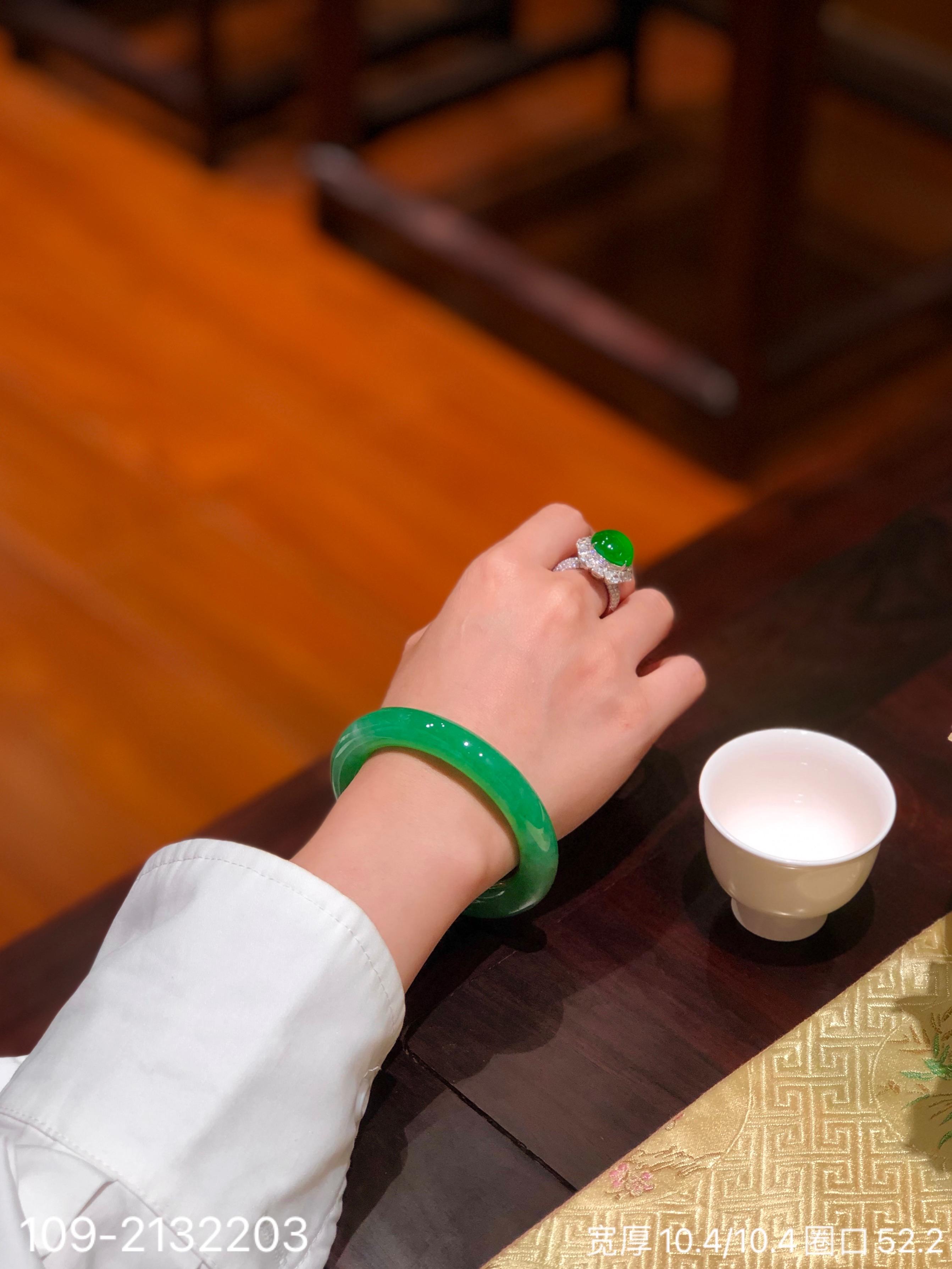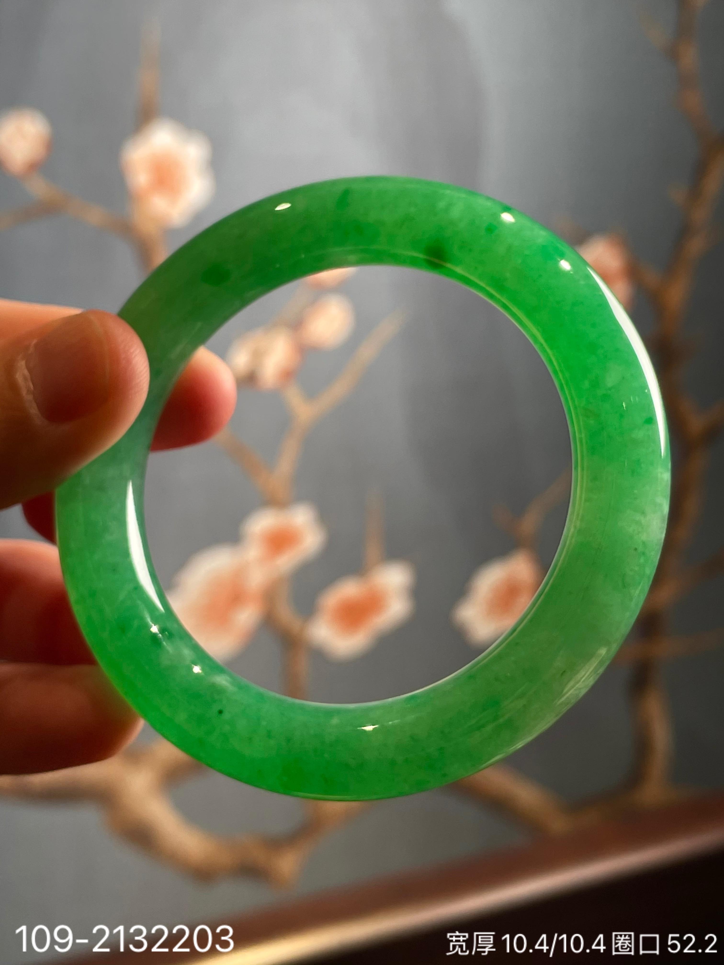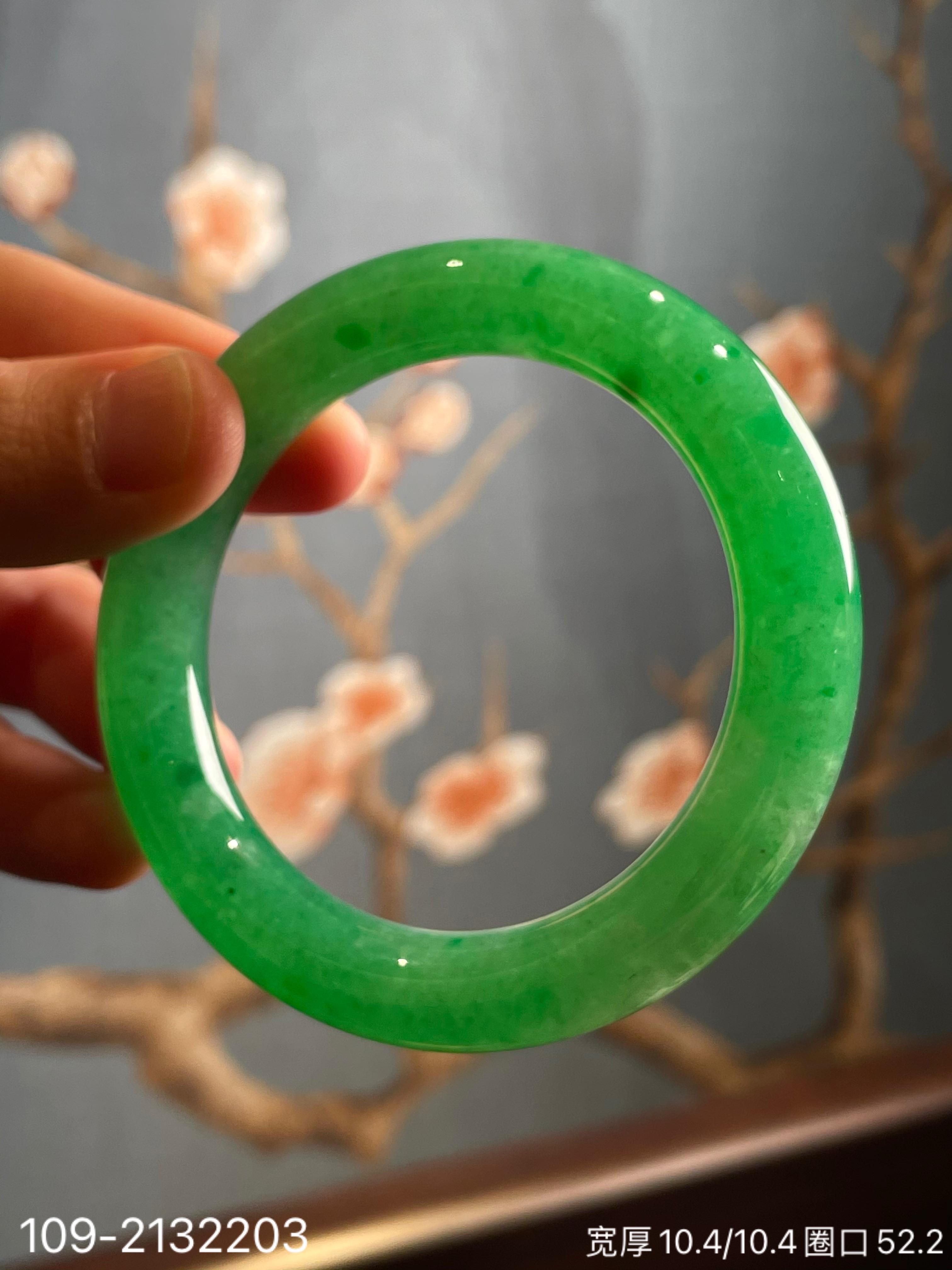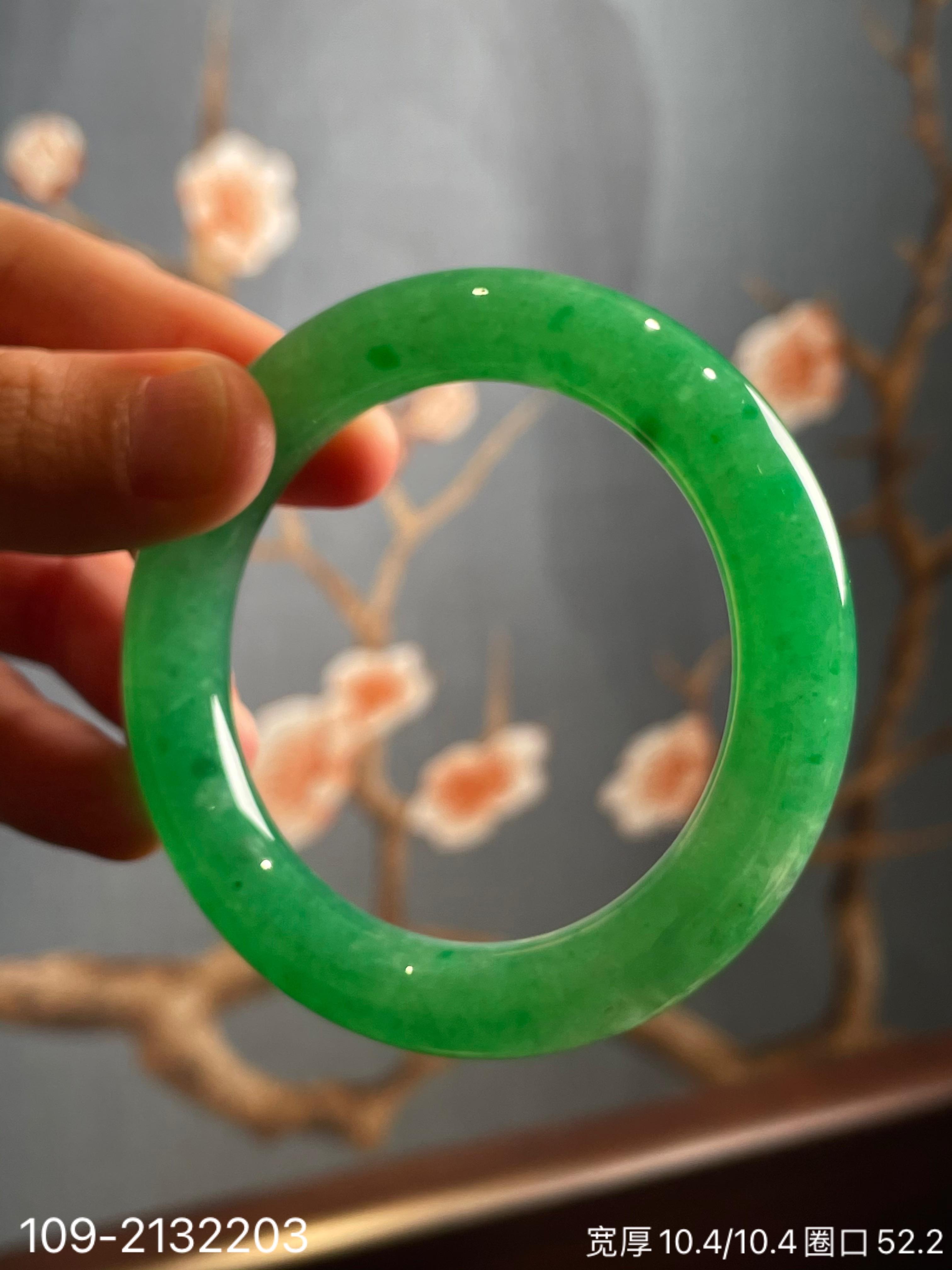 109-2132203,阳艳绿手镯。圈口52.2。具体价格微信咨询