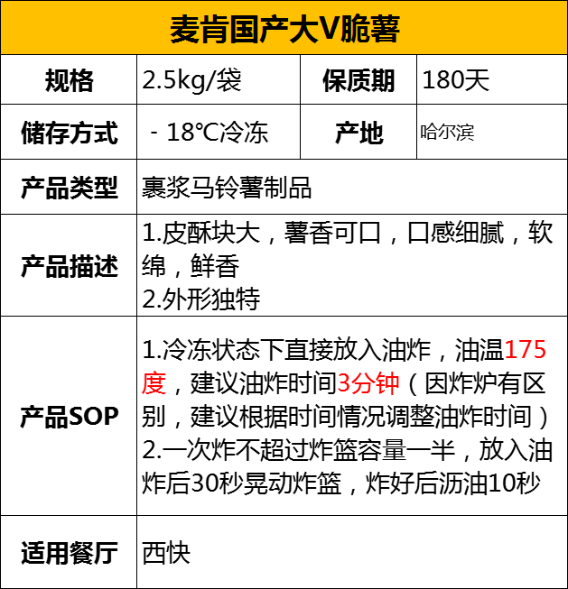 麦肯国产大V脆薯(1000007956)2.5kg油炸美式半成品商用西餐油炸土豆大V薯