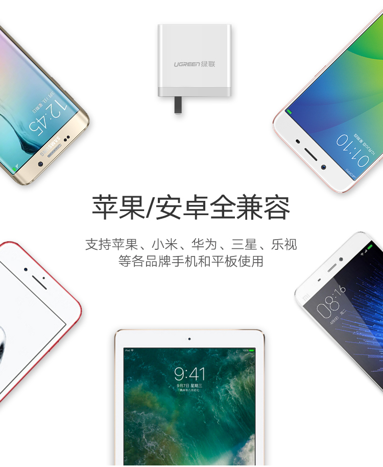 【会员价:57.29】绿联 多口充电器 2.4A四口USB可折叠快充插头插板 通用苹果华为oppo荣耀vivo三星小米安卓手机ipad平板 20379