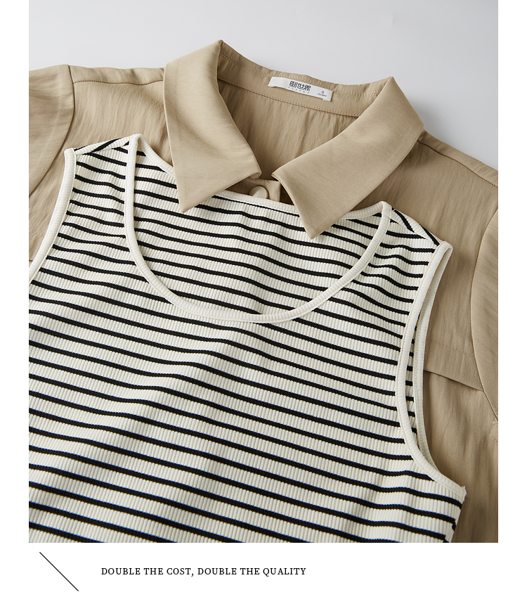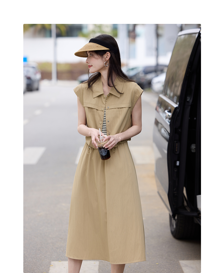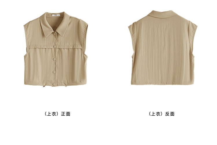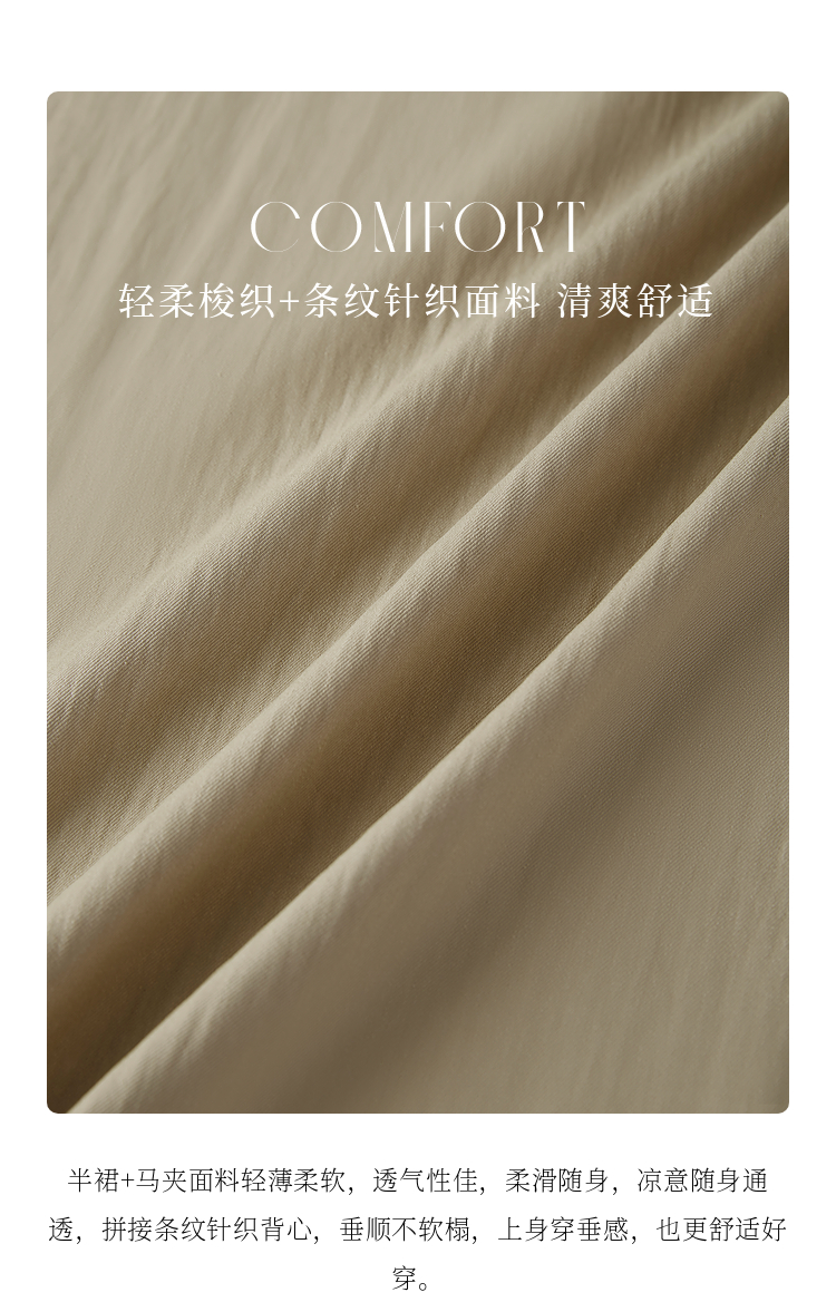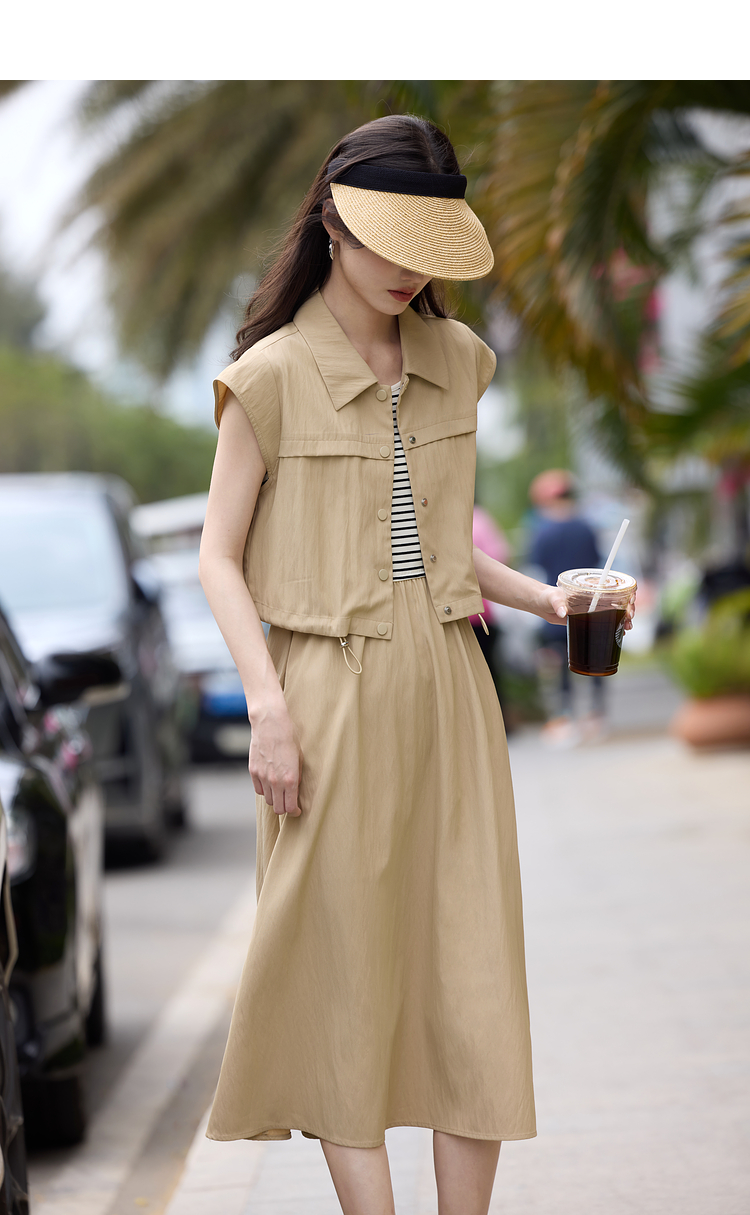 【1件85折】熙世界工装风无袖短外套马甲针织拼接连衣裙两件套装女2025夏新款