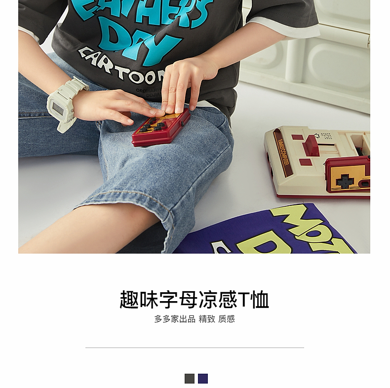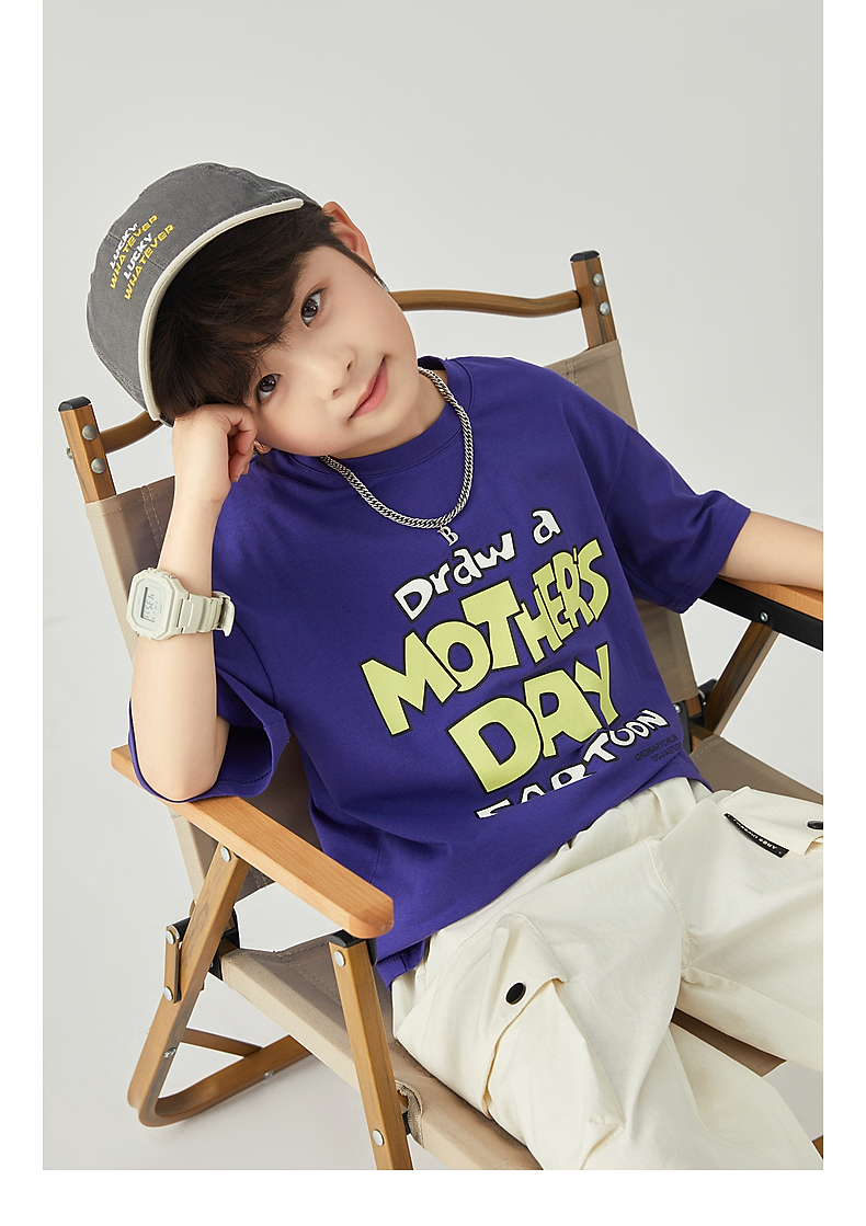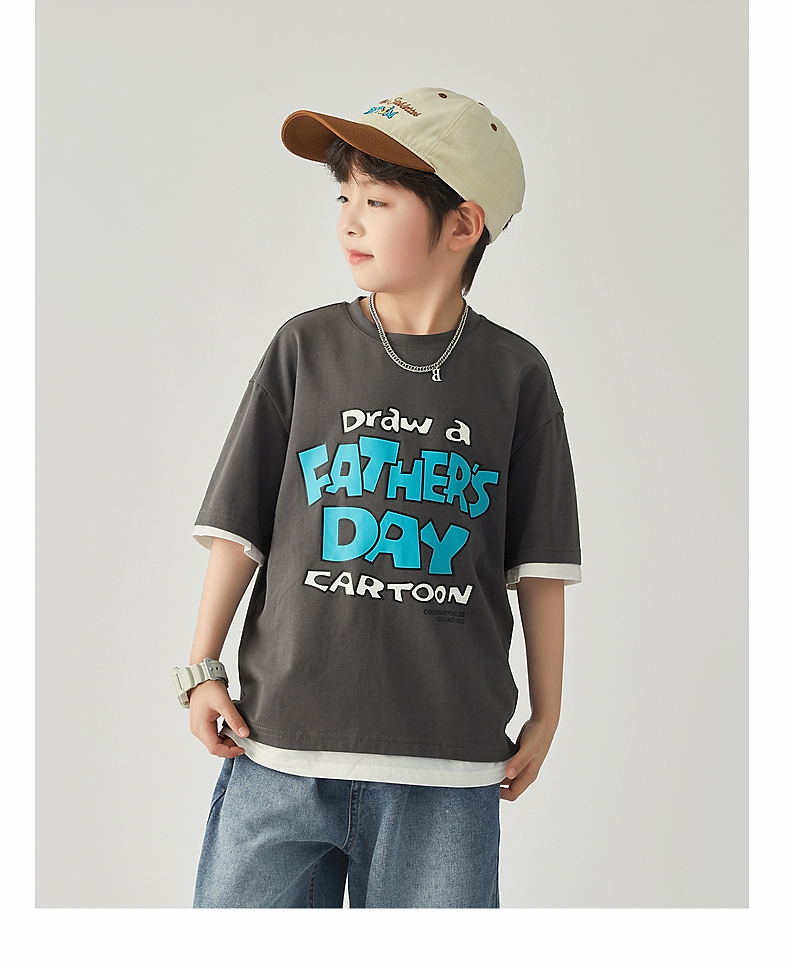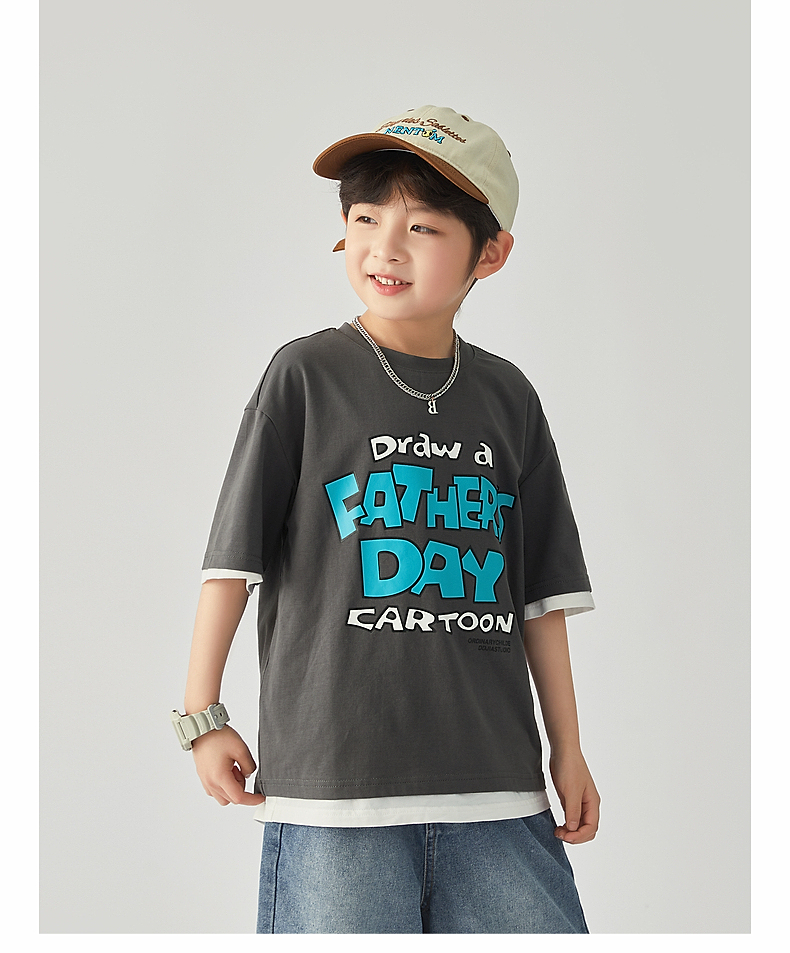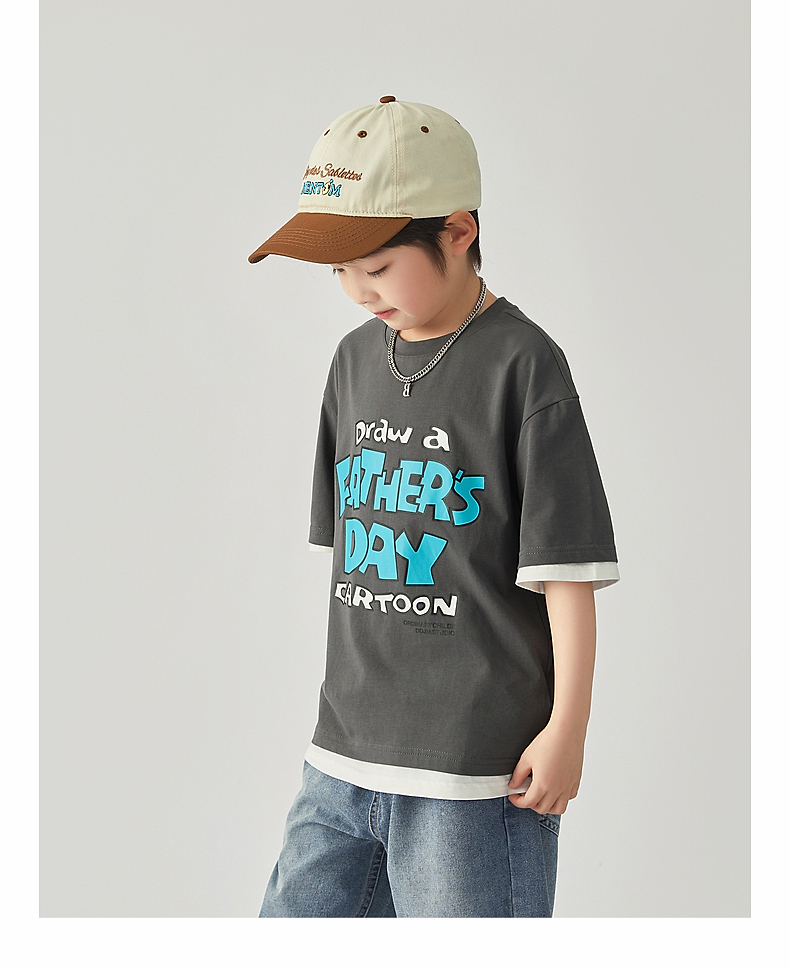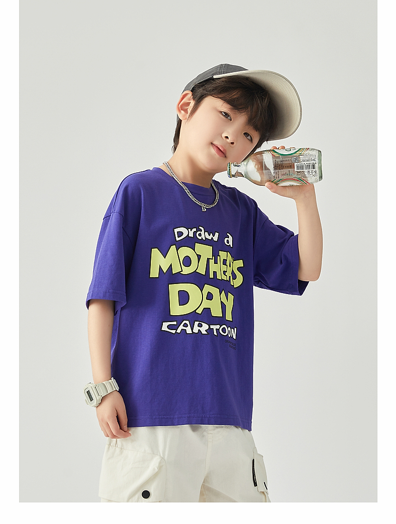 【团购价29.9元】多多家 男童短袖T恤2024夏装新款儿童中大童凉感弹力字母印花上衣9361