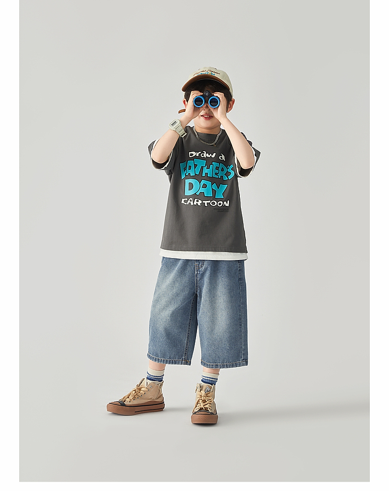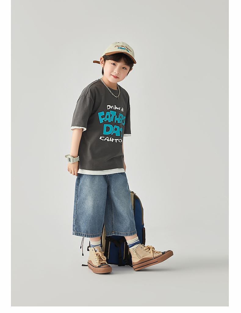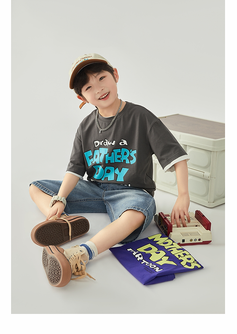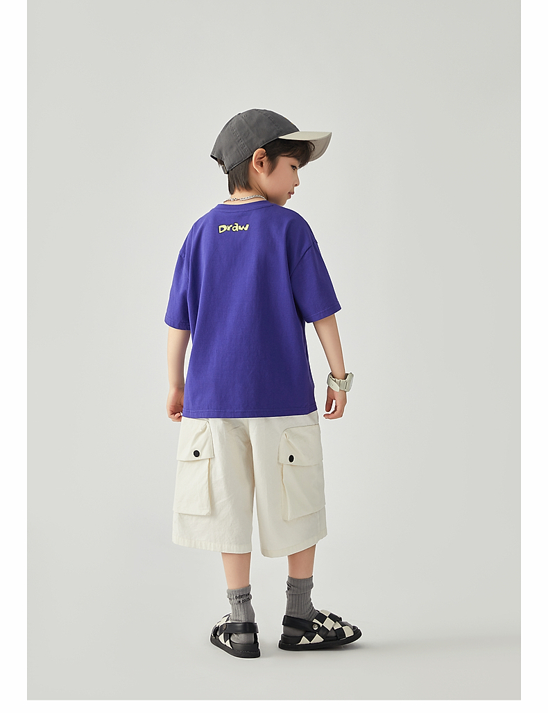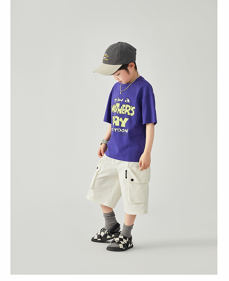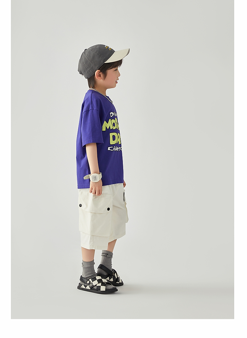 【团购价29.9元】多多家 男童短袖T恤2024夏装新款儿童中大童凉感弹力字母印花上衣9361