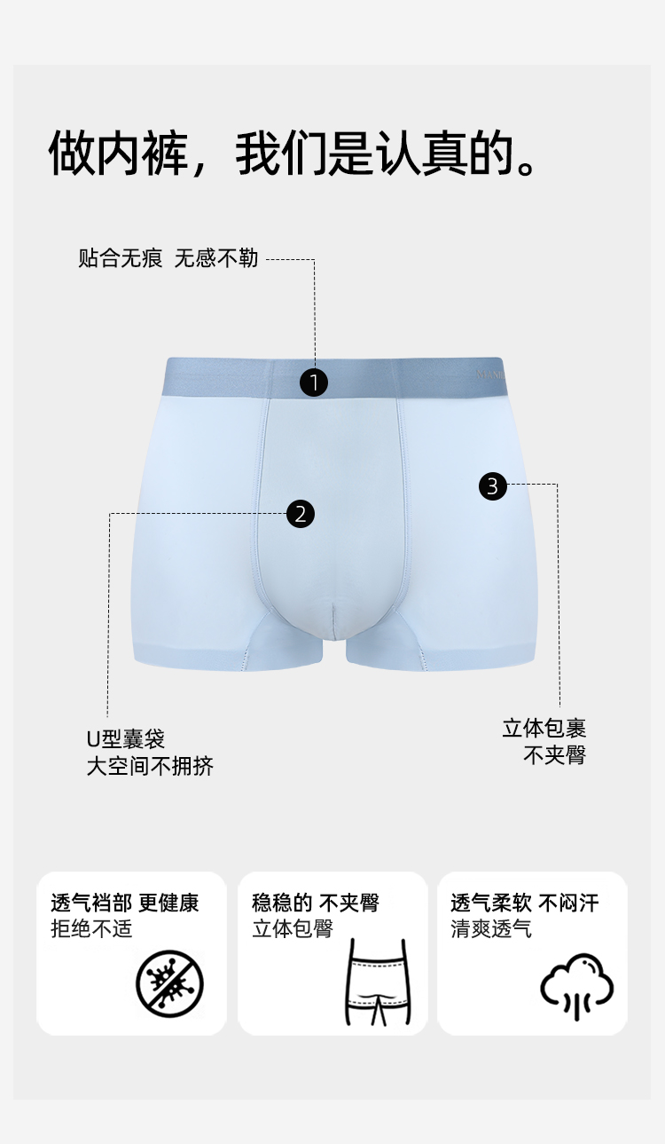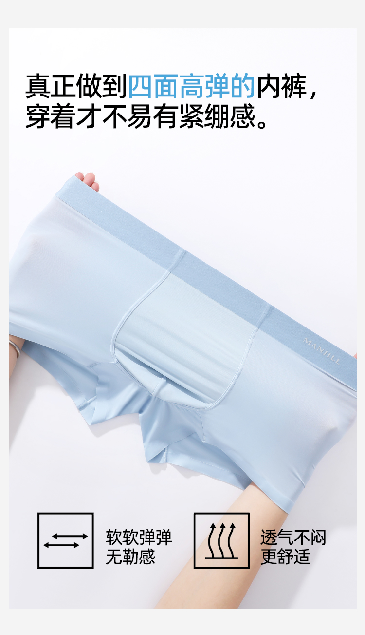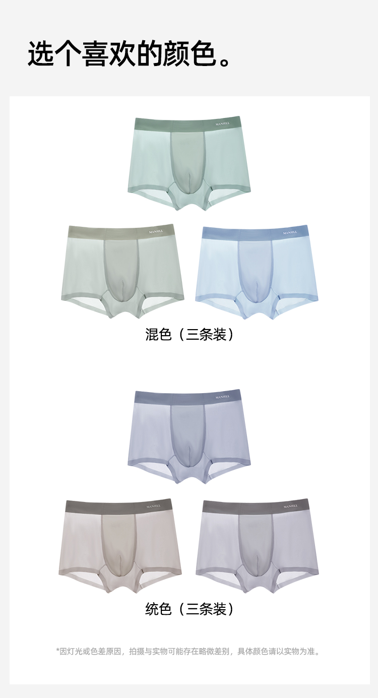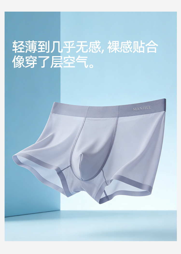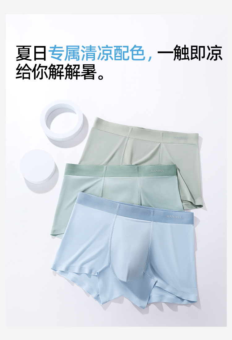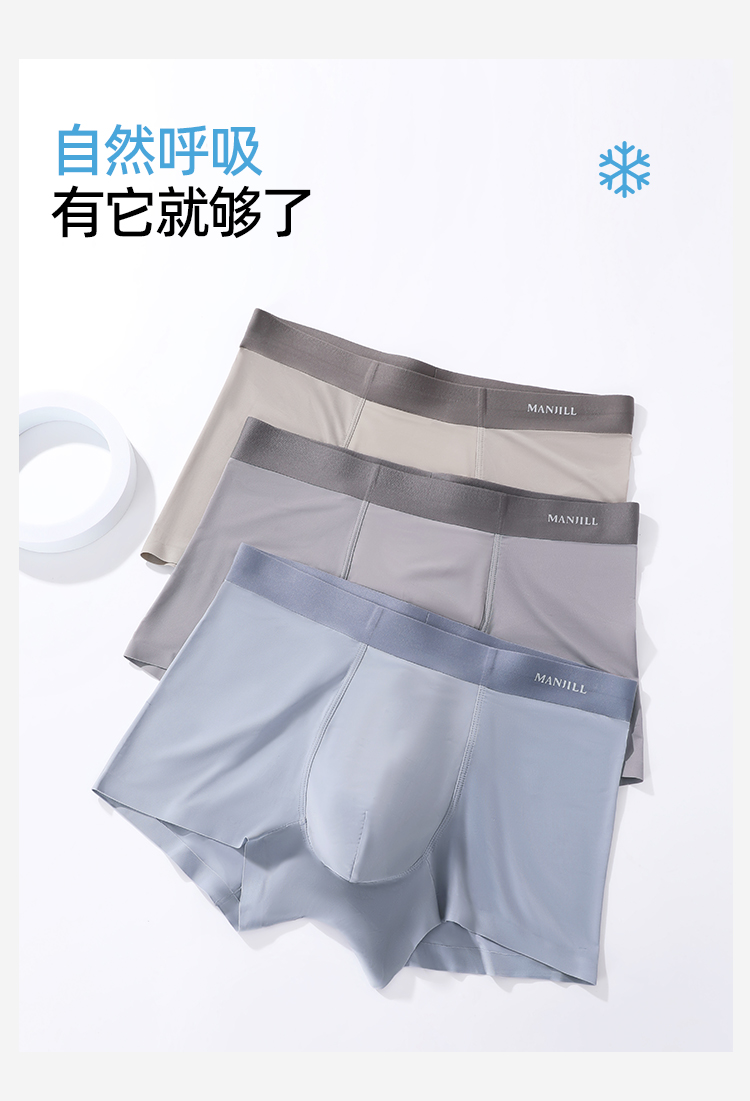 【3条装】熳洁儿 新款冰丝男士内裤桑蚕丝超薄清凉透气速干平角裤26262902