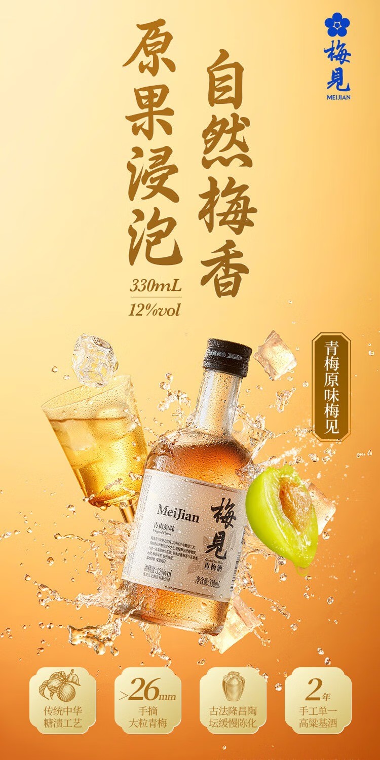 梅见-青梅酒12度-低度梅子酒微醺果味甜酒330ml