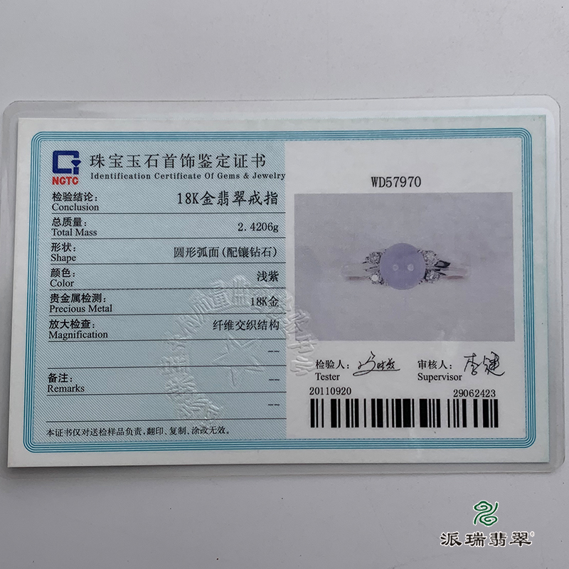 派瑞翡翠 18k金翡翠戒指 糯种 紫色