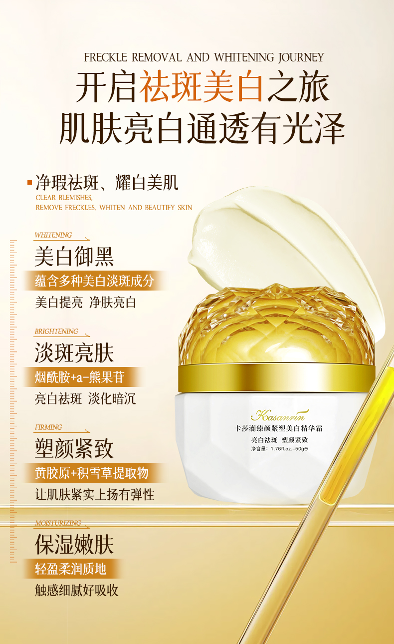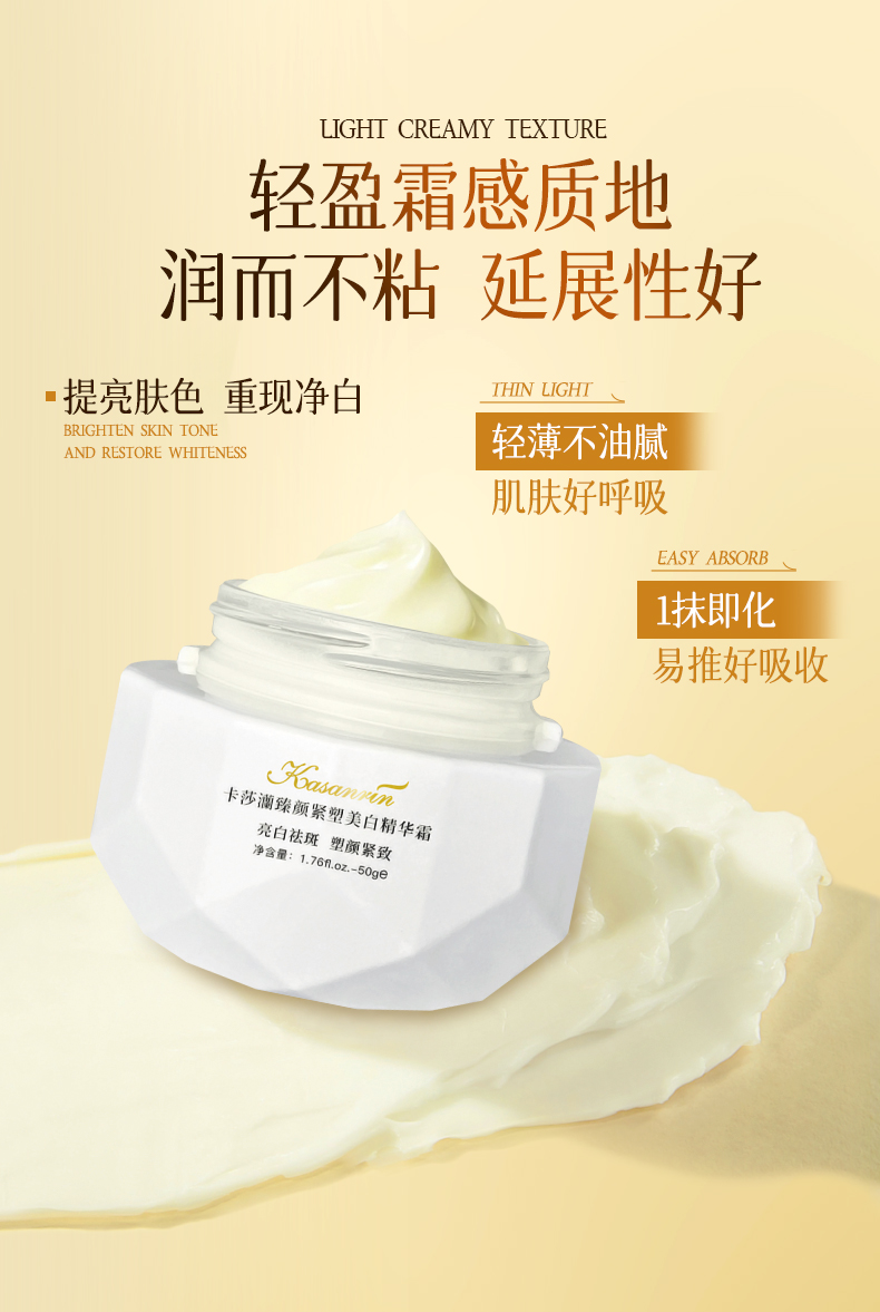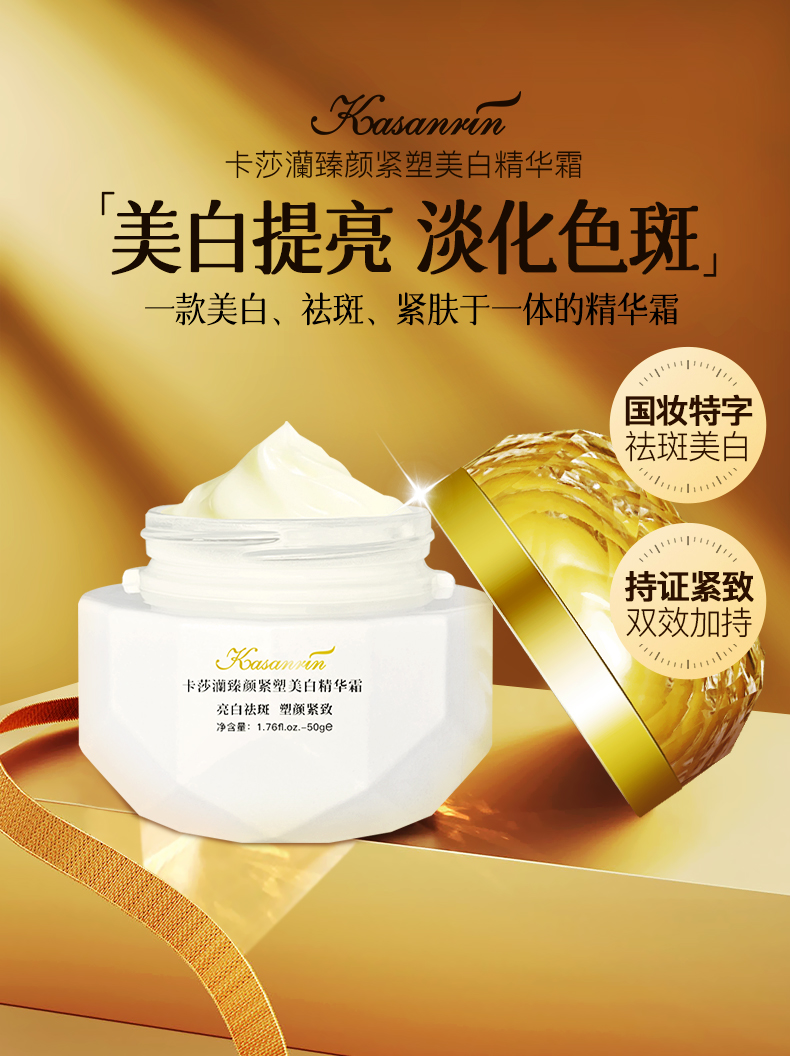 卡莎灡臻颜紧塑美白精华霜,美白淡斑,紧致肌肤,保湿滋润。