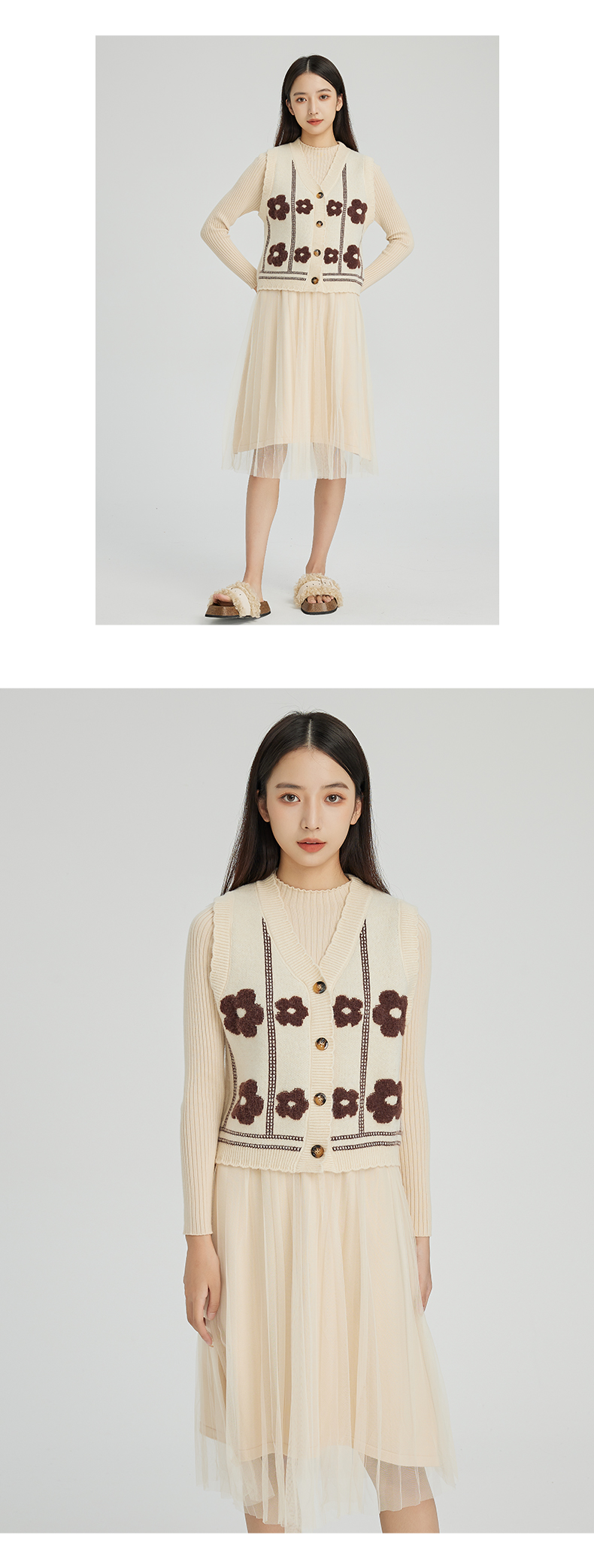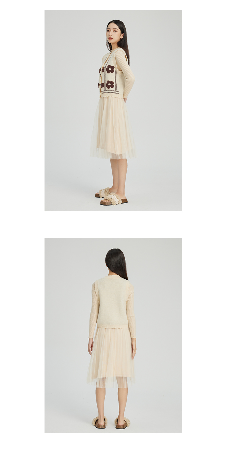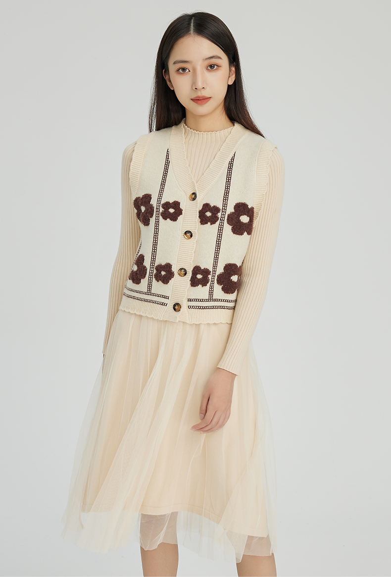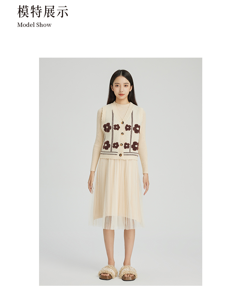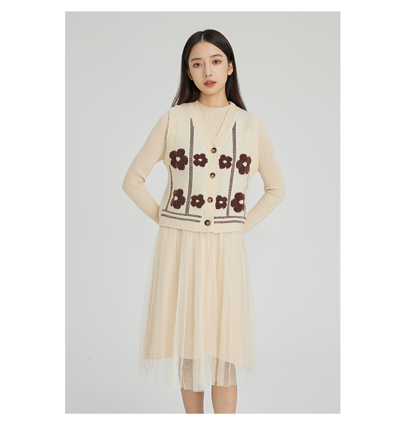 NUTS商场同款秋冬季设计感小众背心针织网纱连衣裙套装女241106577