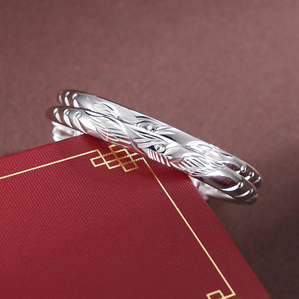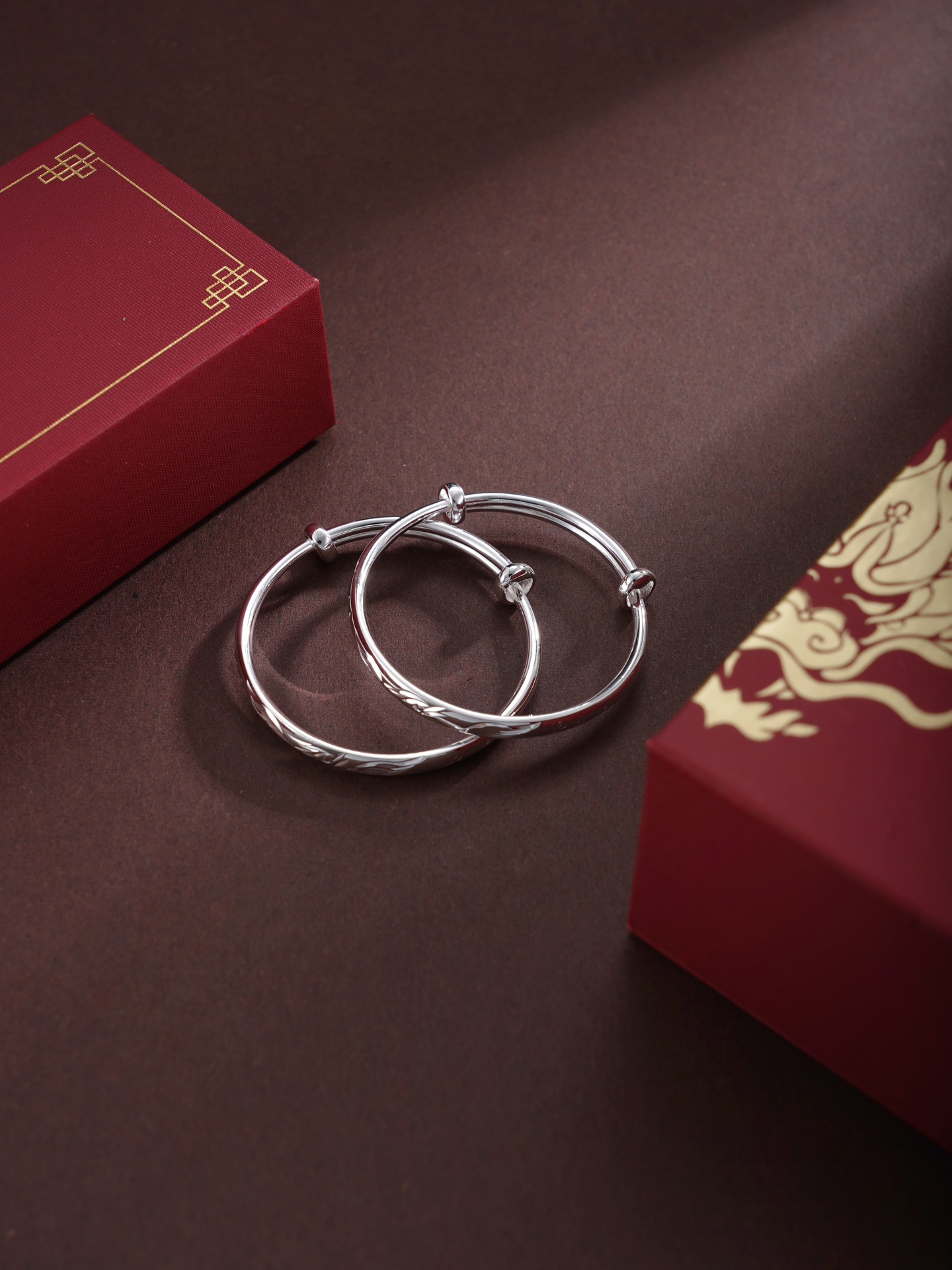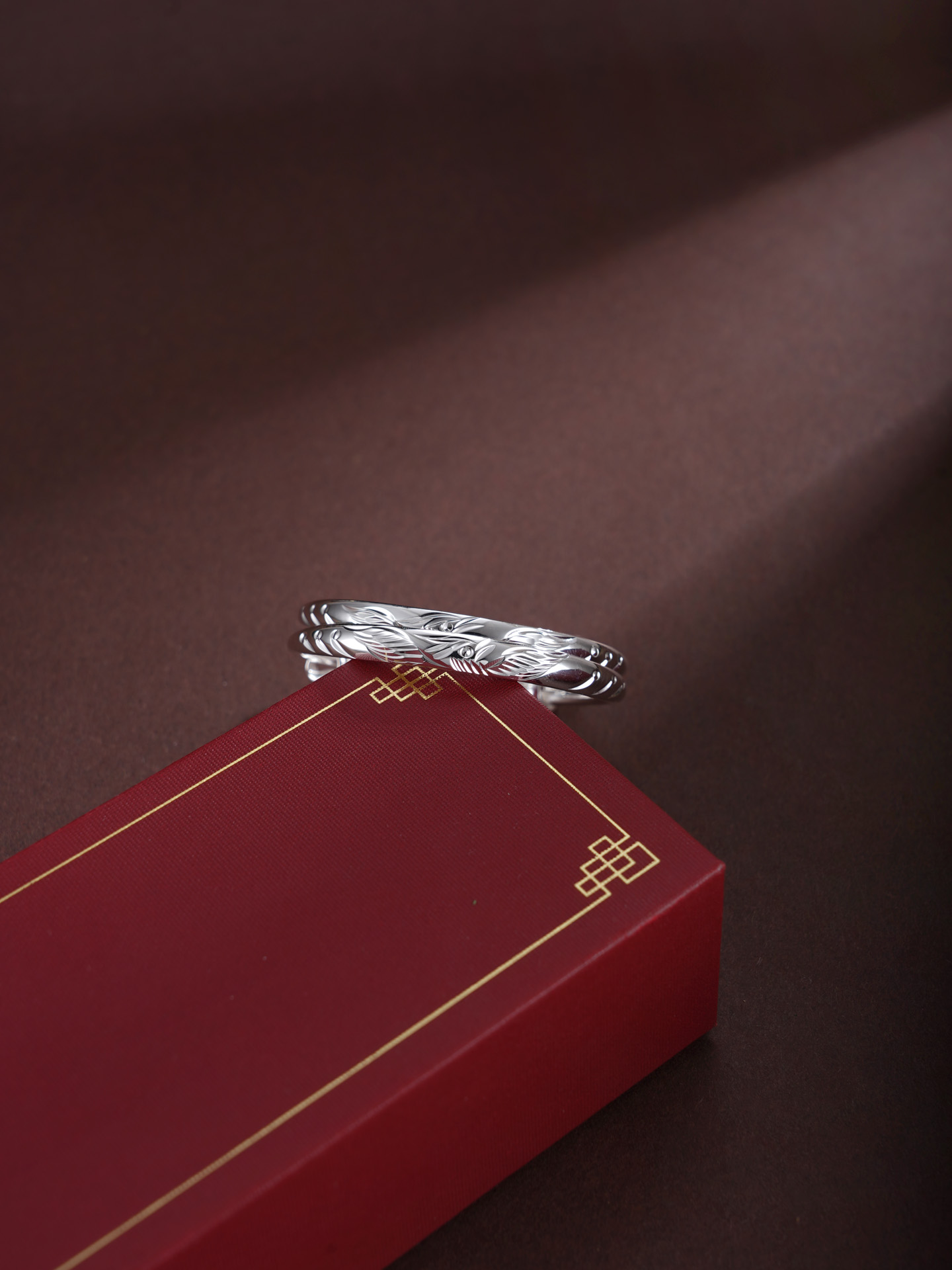 【寓意】:纯银童镯以凤凰纹样精雕,寓意宝宝如瑞凤般聪慧灵动,以祥瑞之姿拥抱成长,在时光中展翅高飞,收获平安喜乐与无限可能。