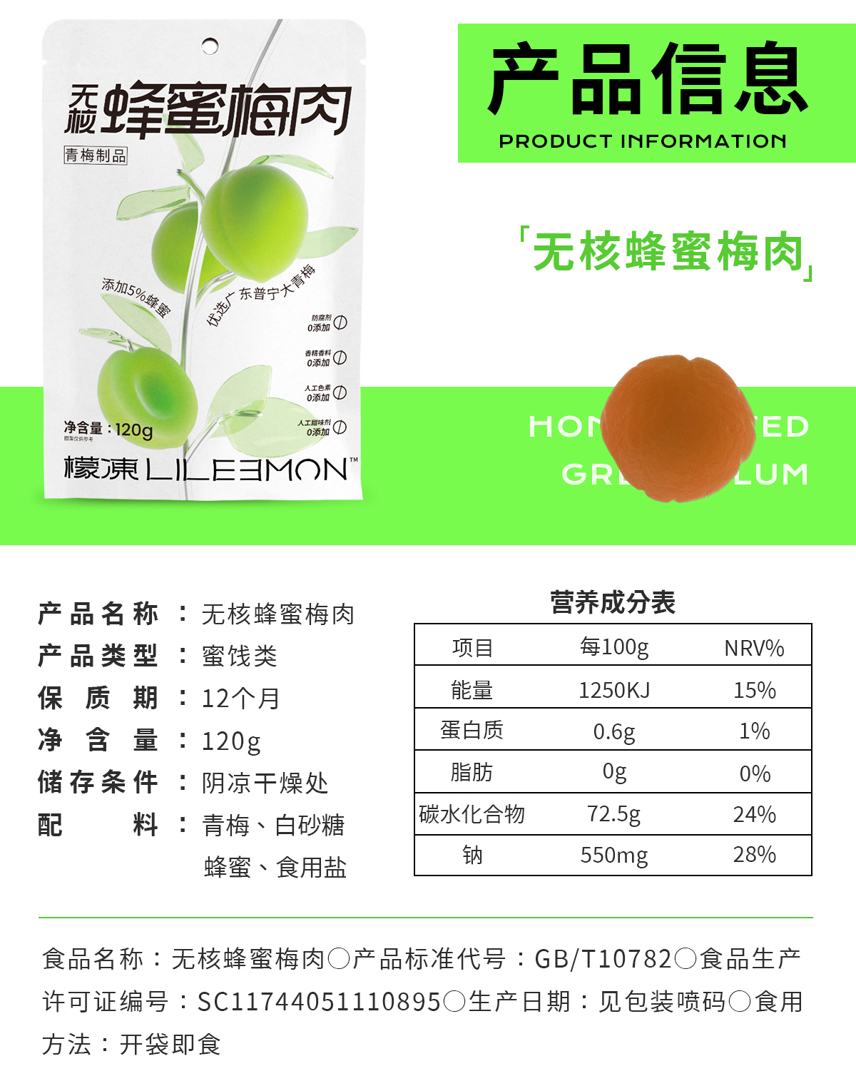 檬冻无核蜂蜜梅肉120g*3袋 酸甜生津 解腻开胃