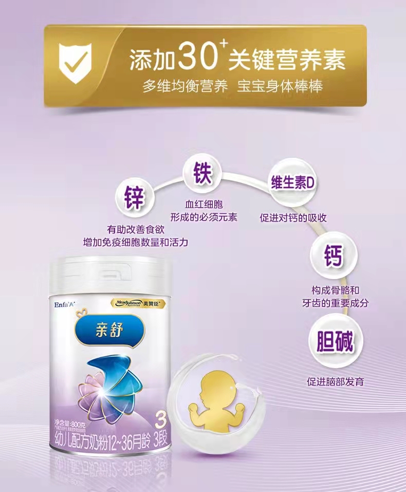美赞臣亲舒3段幼儿配方奶粉800克罐装(12-36月龄)
