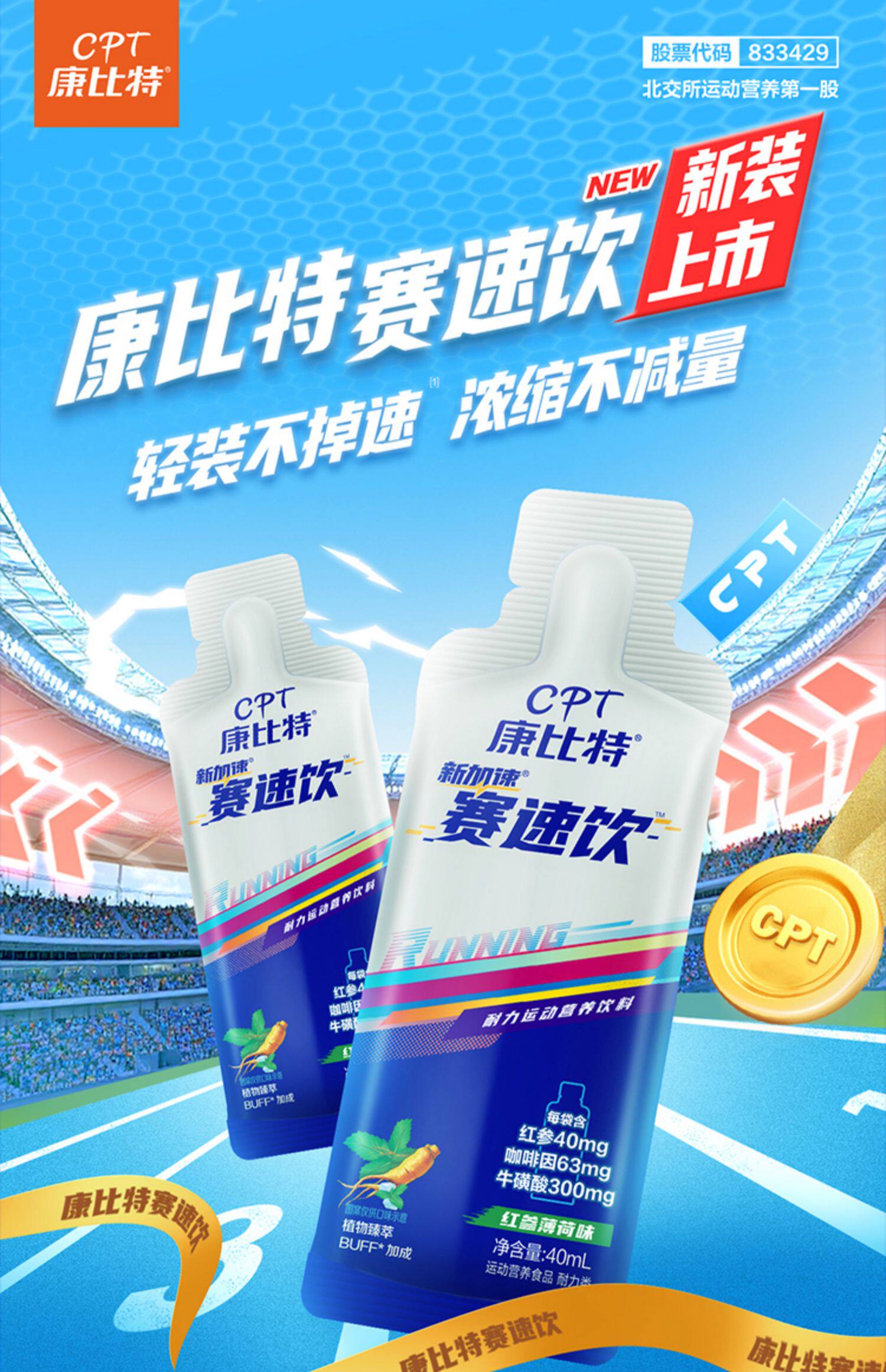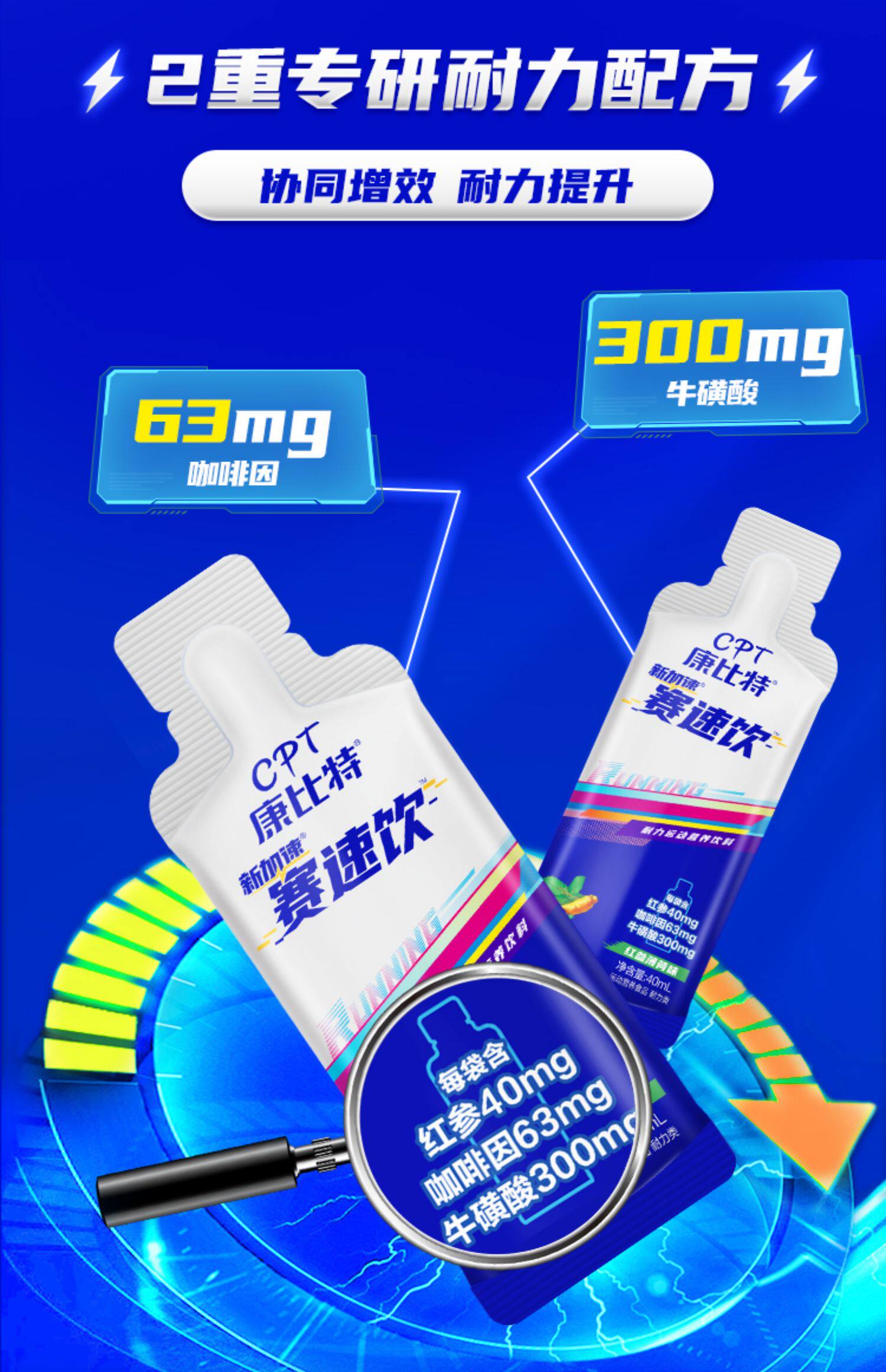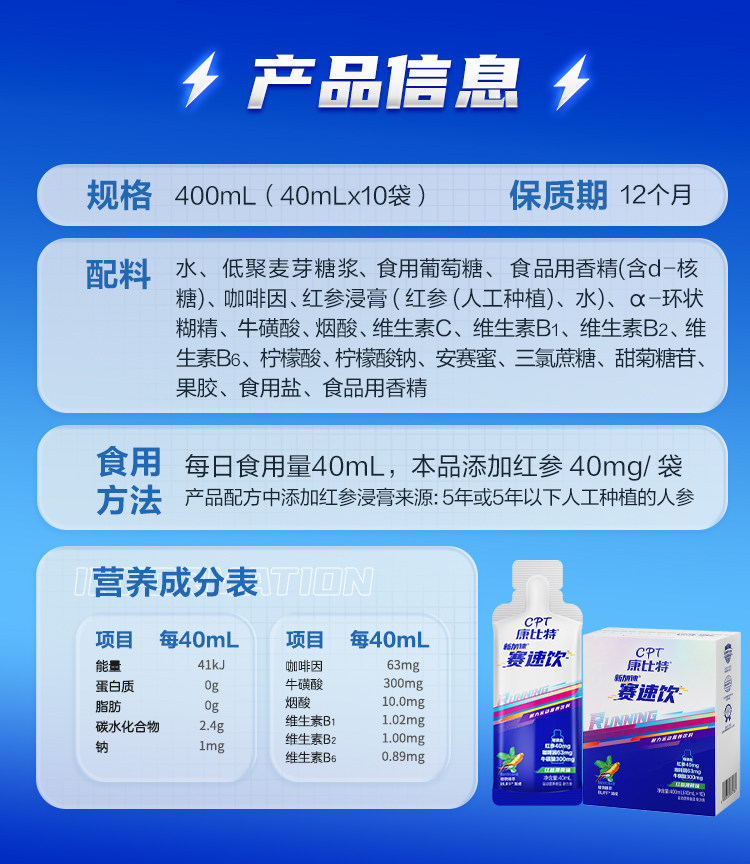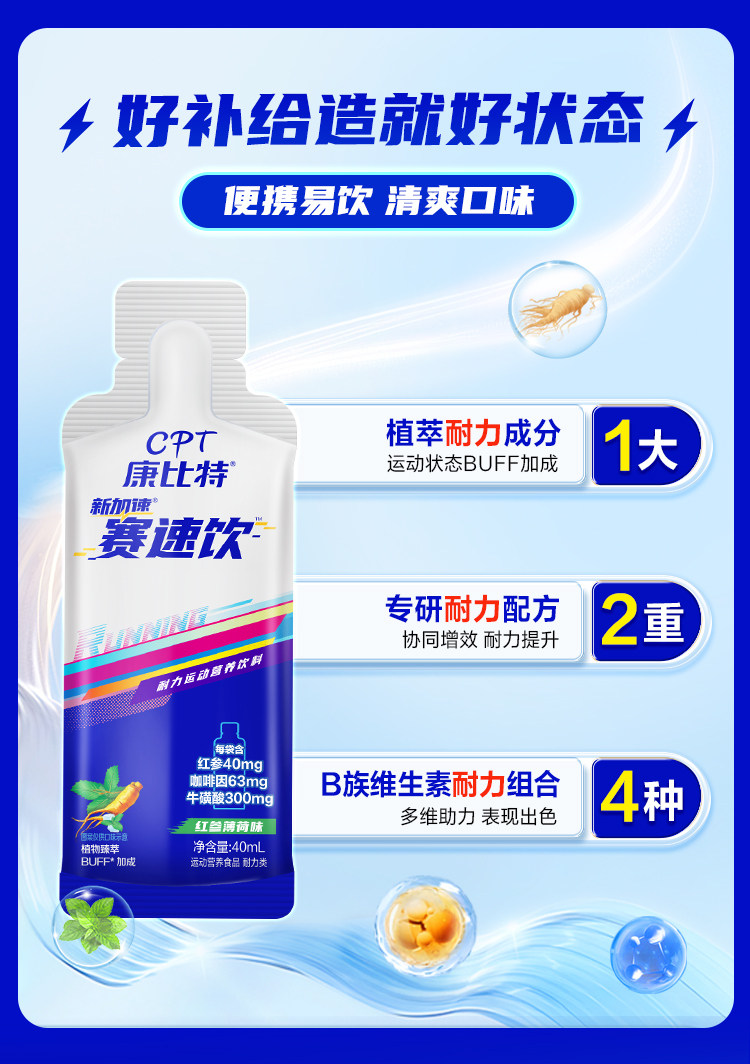 康比特袋装赛薄荷味饮料马拉松跑步体考牛磺酸耐力能量40ML/袋