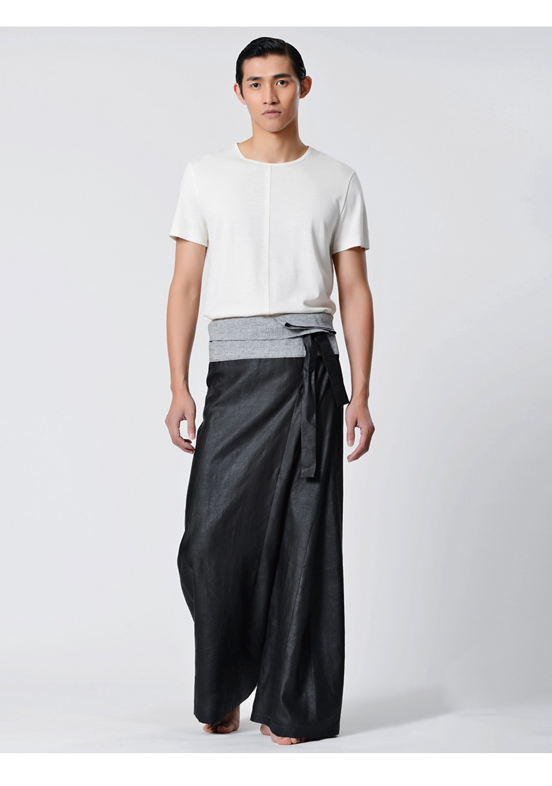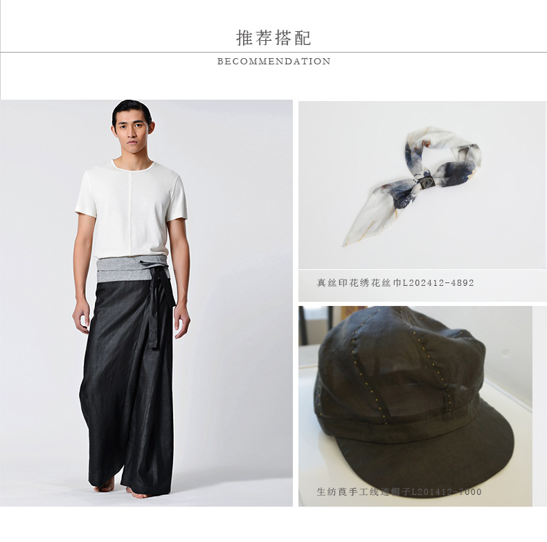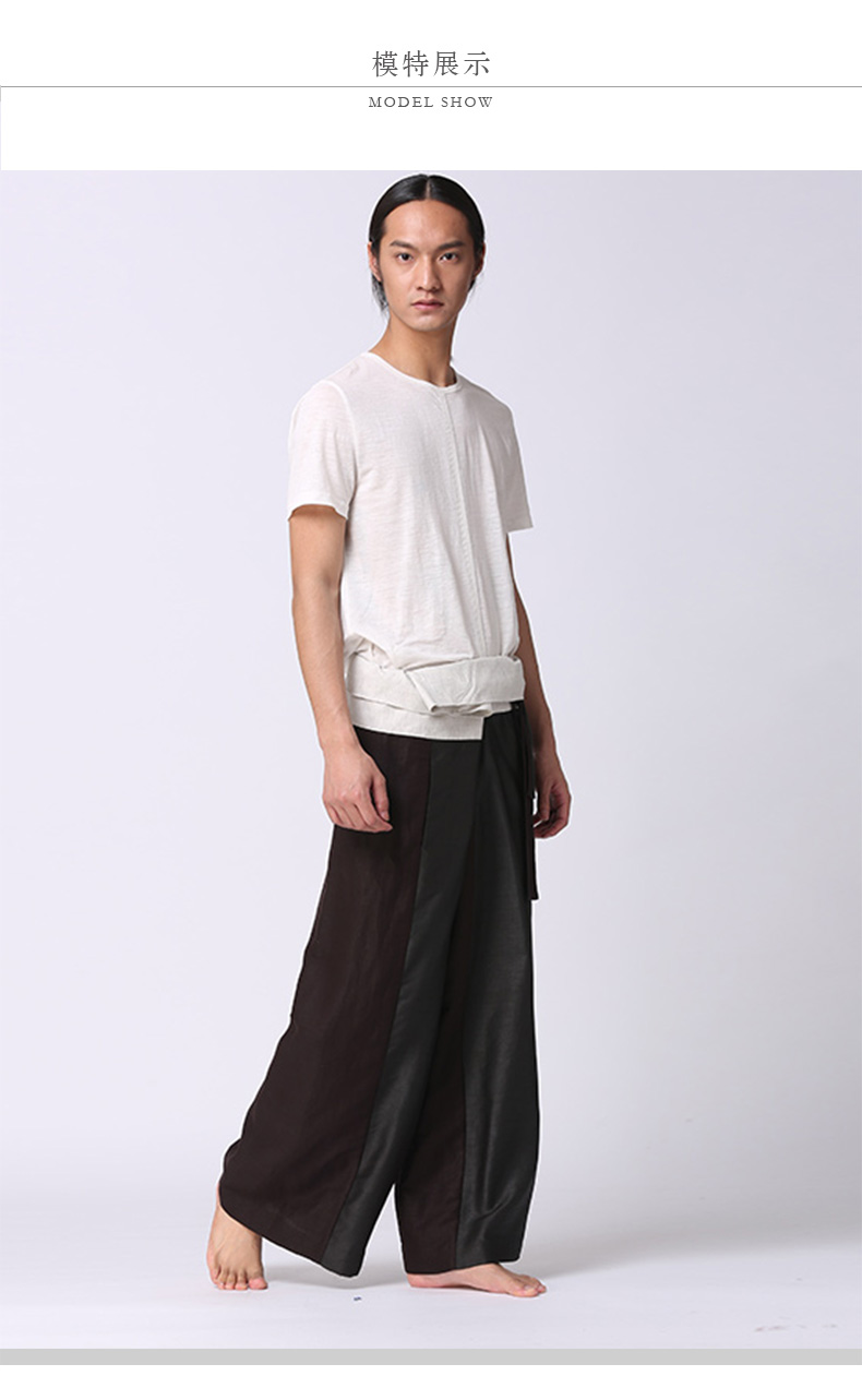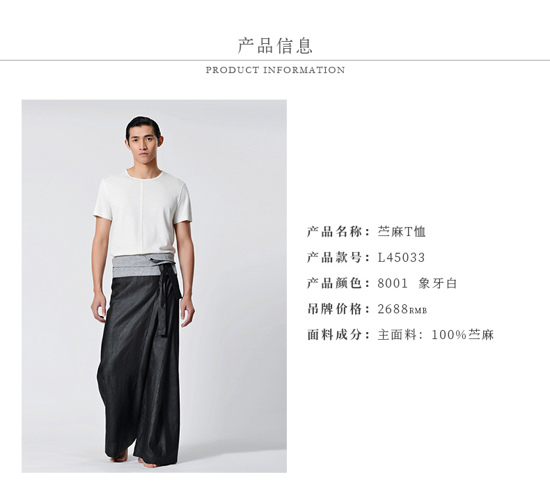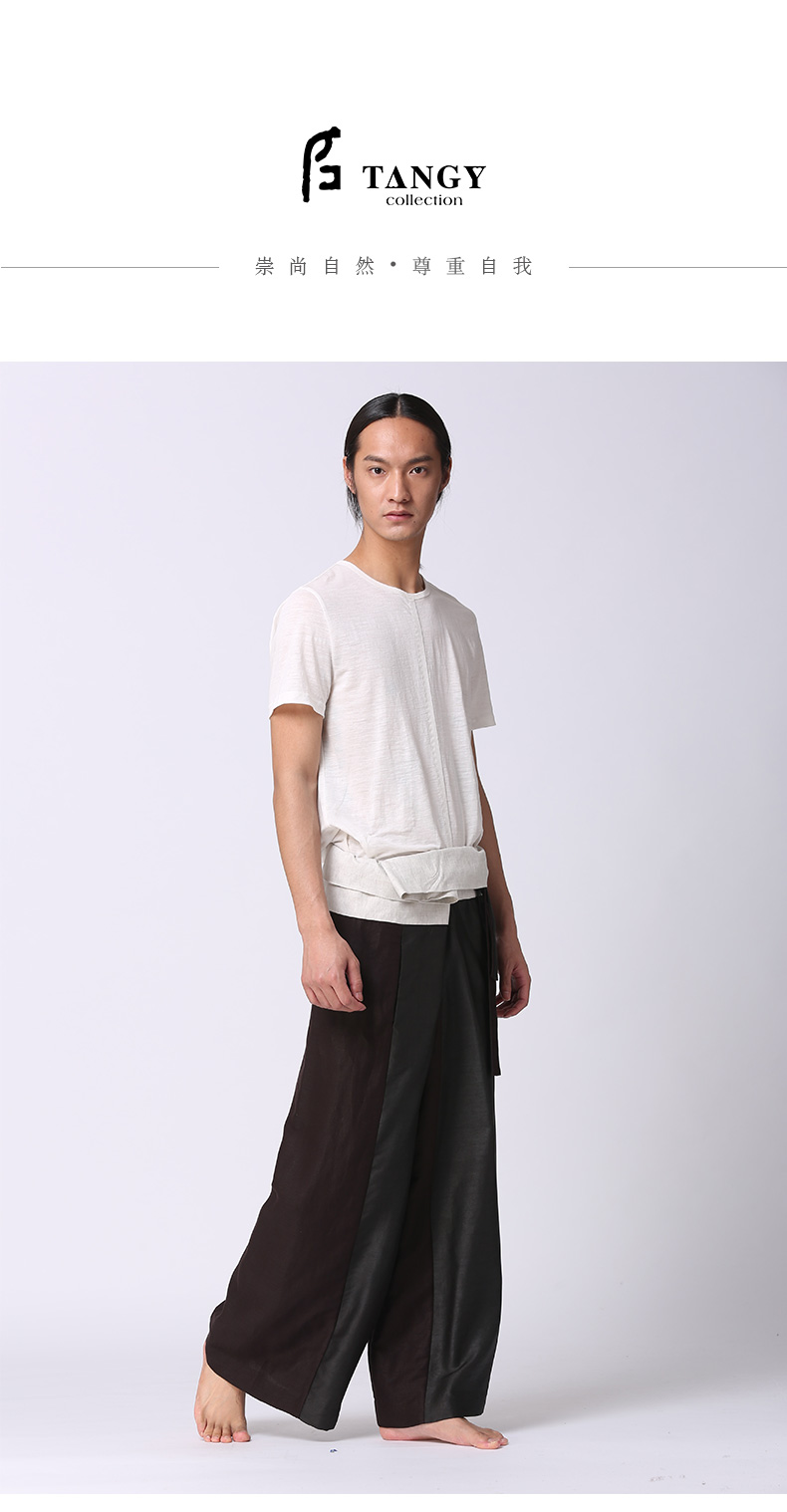 TANGY Collection/天意精品春夏新品棉麻系列男士苎麻拼接休闲T恤
