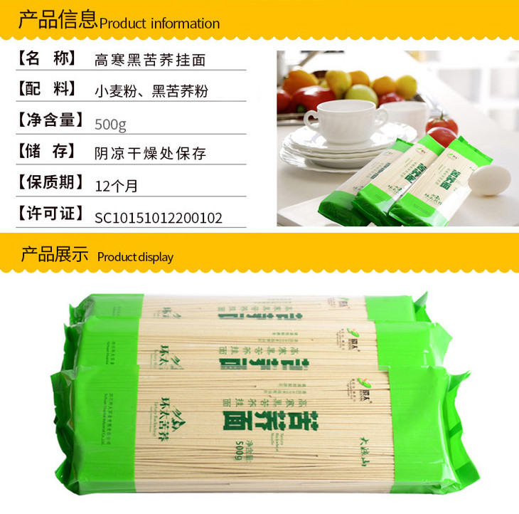 四川大凉山环太苦荞高寒黑苦荞挂面 500g