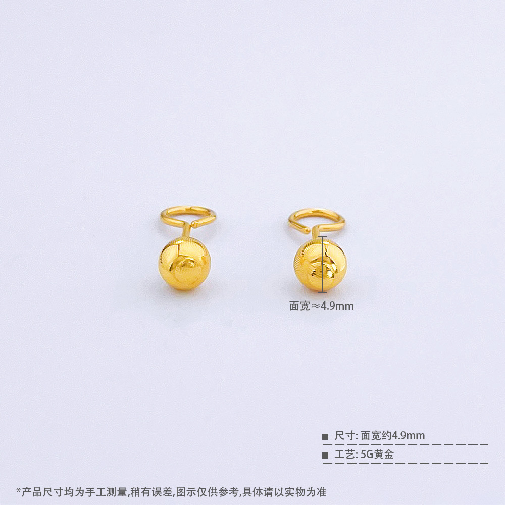 【限时克减150元】足金999 5G黄金空心猫眼泡钉耳钉小金珠圆珠耳钉(珠约4.7-5.1mm)(AG5GES00116-1)(预售产品下单后不退款不退货不换货不补差价)