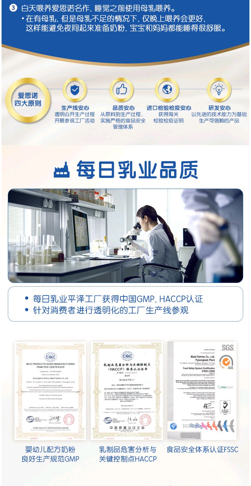 Maeil每日韩国原装进爱思诺名作婴幼儿奶粉12-36月3段800g单罐【每日乳业】