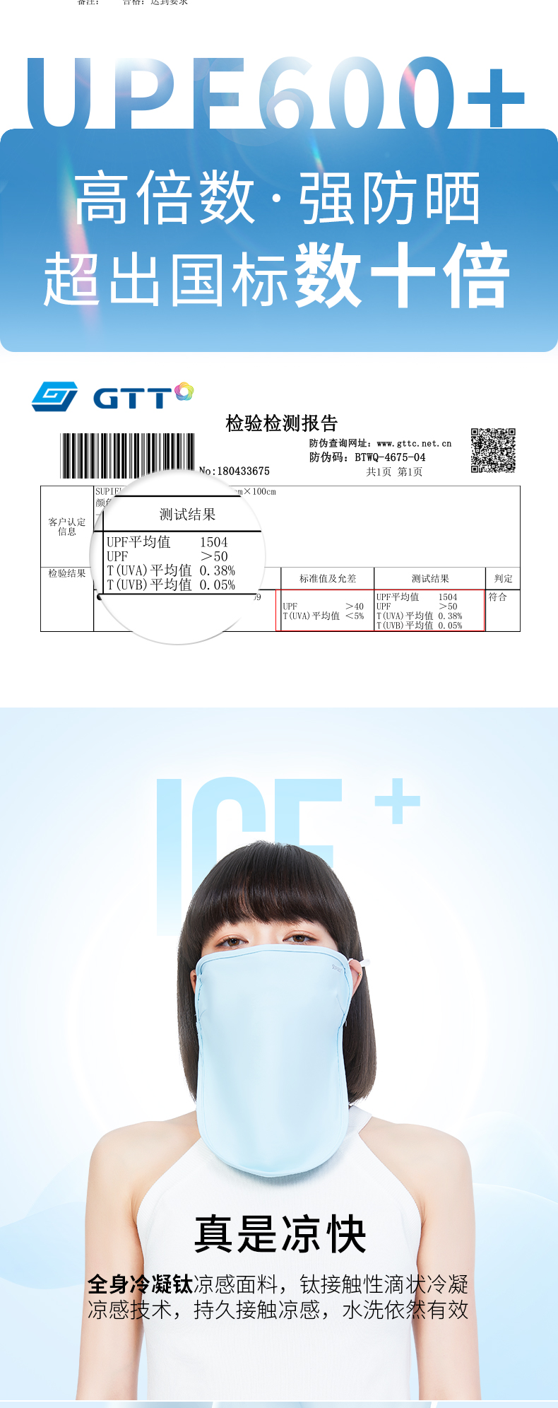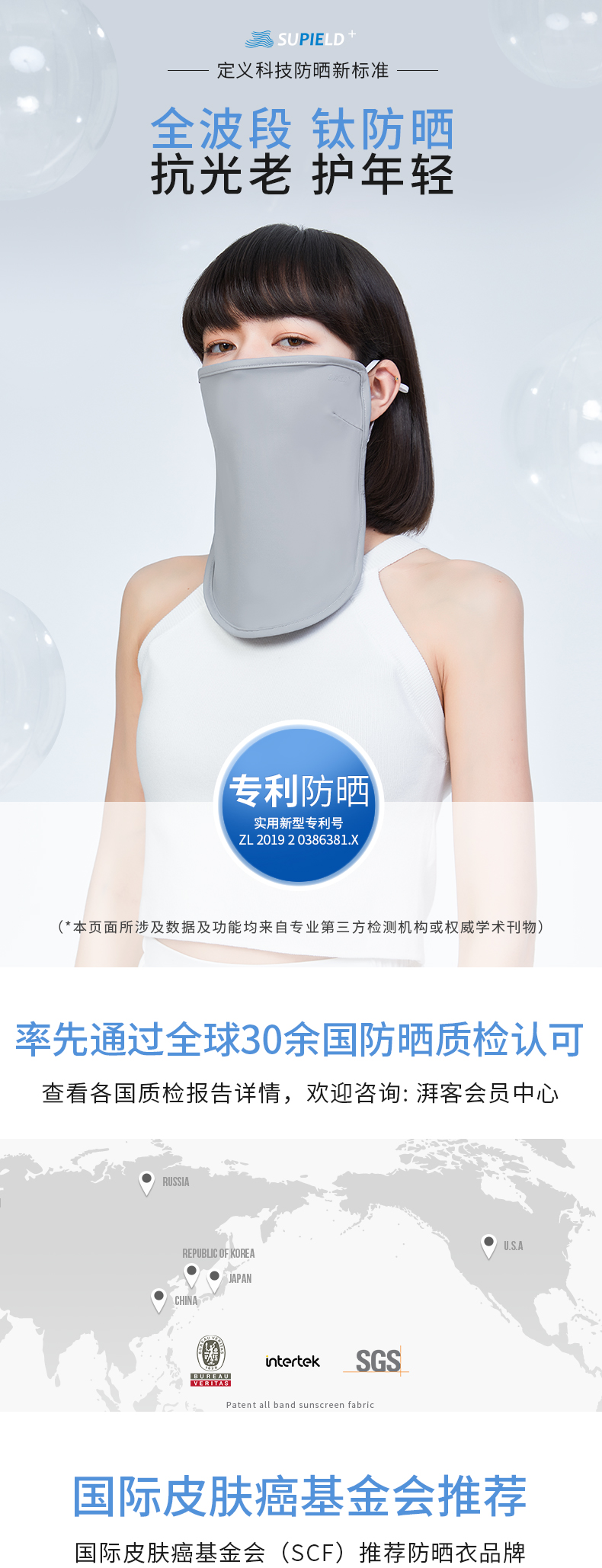 Supield素湃防晒骑行大面罩女全波段护颈防紫外线透气面巾薄口罩