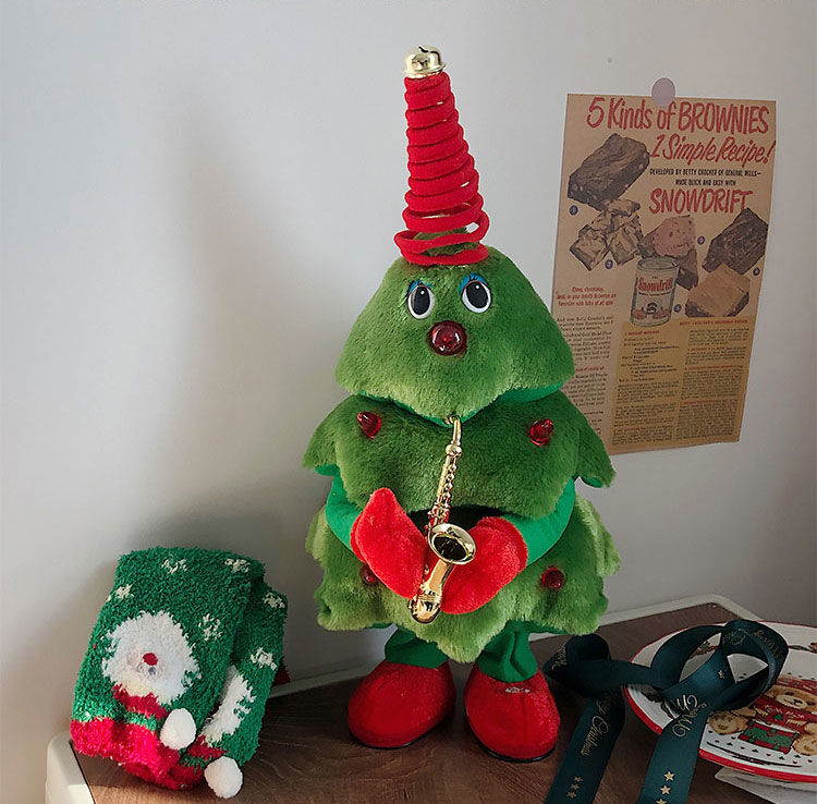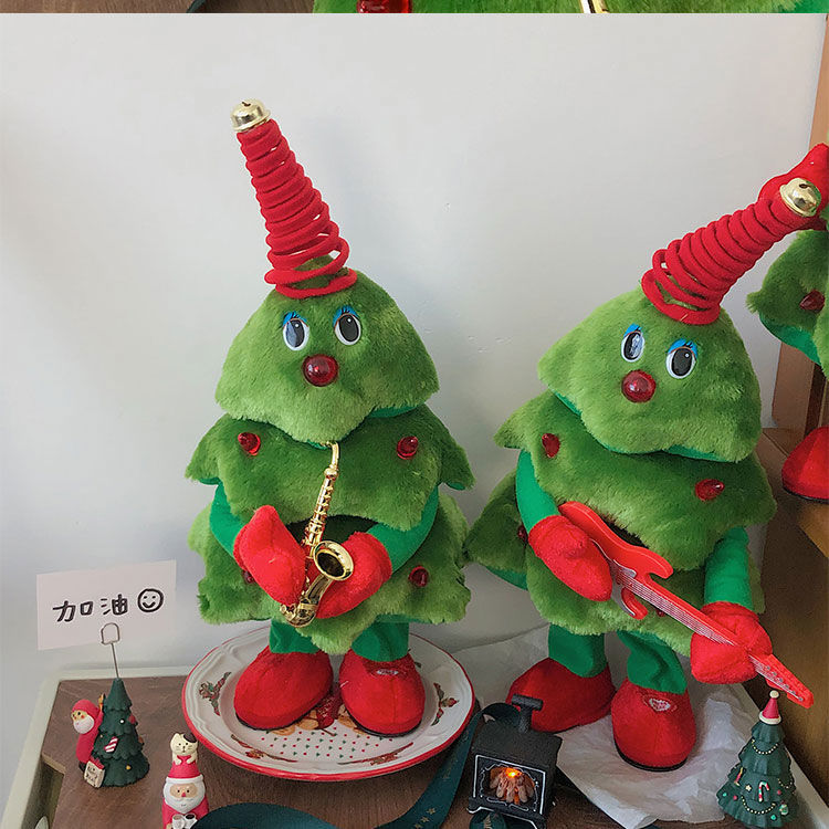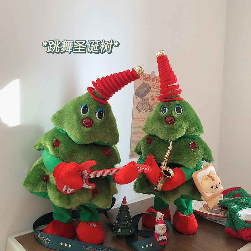 卡通会唱歌跳舞圣诞树摇摆玩具电动毛绒公仔创意圣诞节装饰礼物gjl11