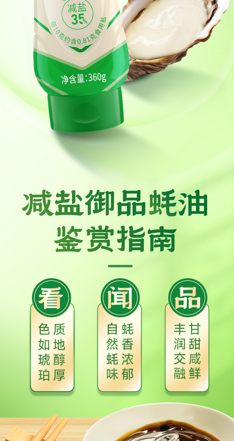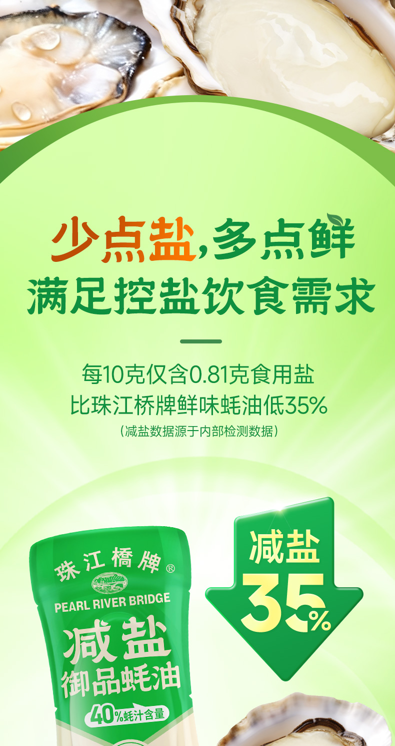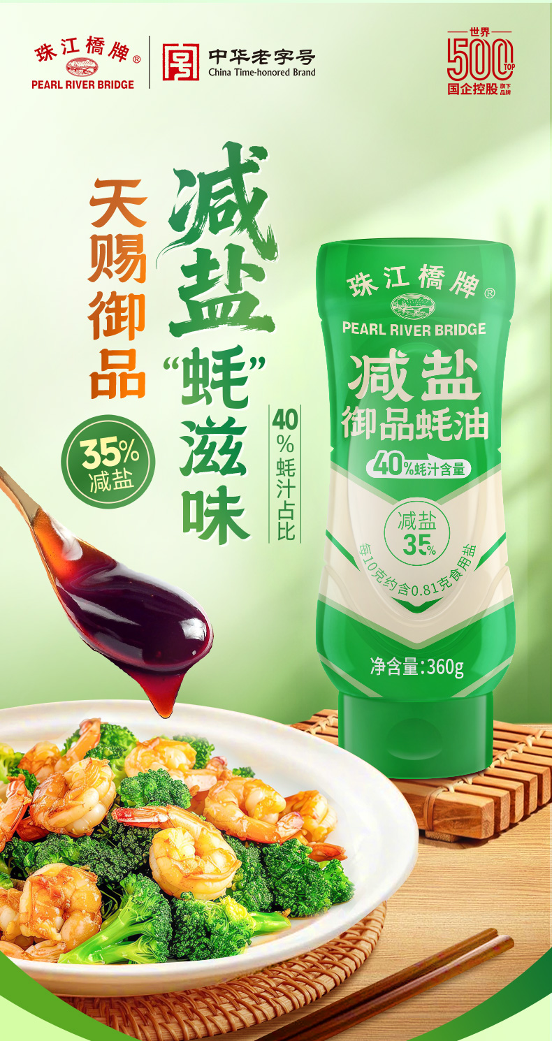 珠江桥牌 减盐蚝油系列 减盐御品蚝油360g 浓鲜减盐蚝油360g