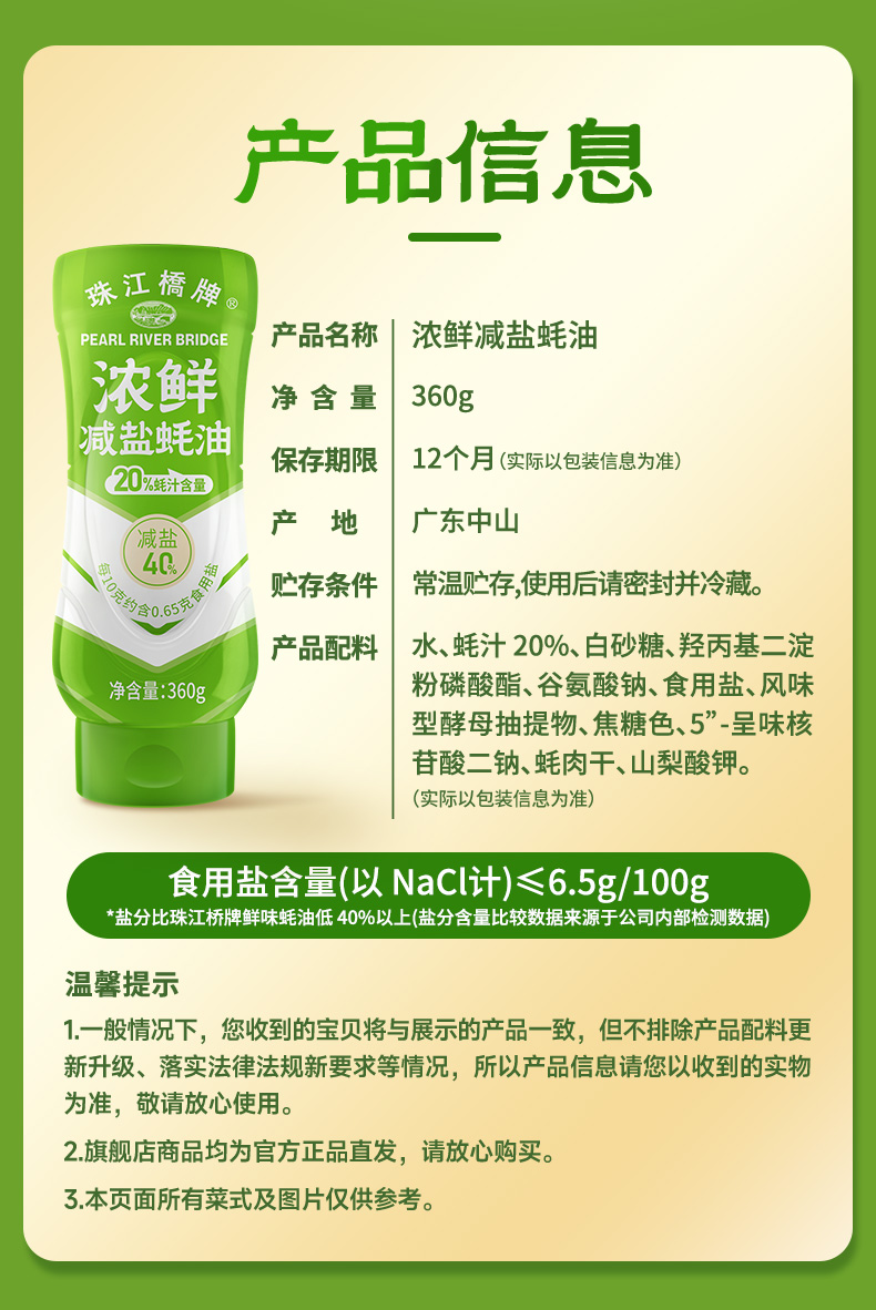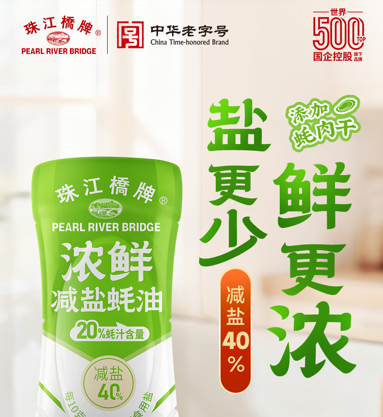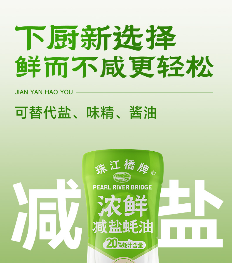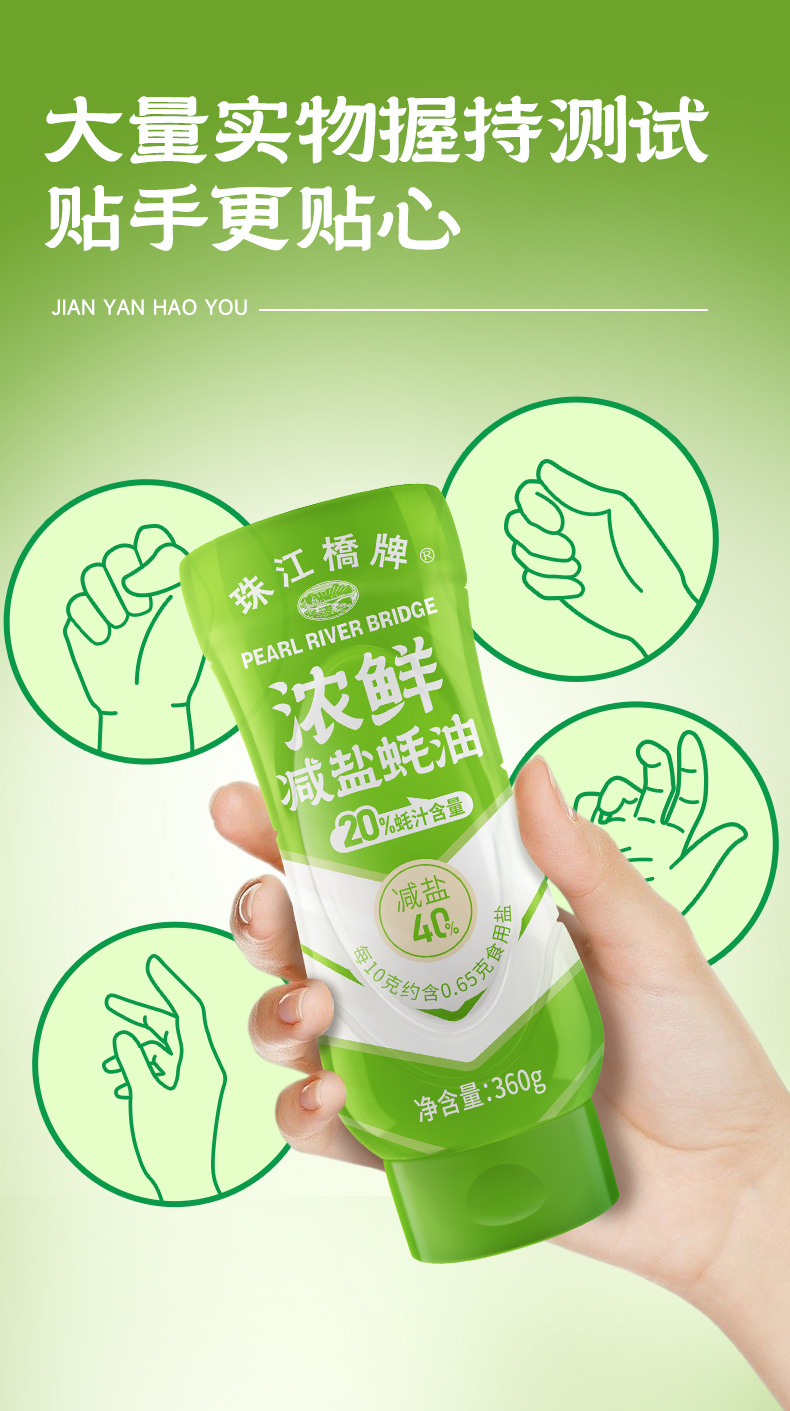 珠江桥牌 减盐蚝油系列 减盐御品蚝油360g 浓鲜减盐蚝油360g