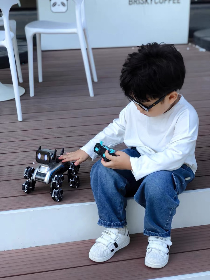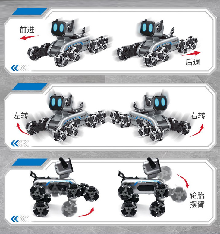 绝对的颜值与实力并存 科技感十足的小狗造型,酷炫好看 家里小区里公园里,平地、草坪上都能玩 前进后退,旋转爬坡! 前后轮组都能360°自由摆臂 各种花式炫酷玩法,一切行动由你指挥 简直就是男孩子的梦中情车呀🏎