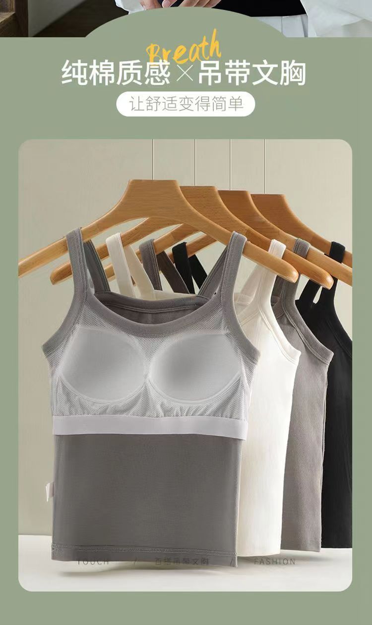 买一送一【意体YITI-免Bra纯棉7A级吊带背心】开春第一弹高货!7A纯棉K菌面料,内置3D立体微塑固定杯垫一秒聚拢,经典H版型+加长下摆=视觉显瘦显高,大U领、一字型加宽肩带纯欲风满满