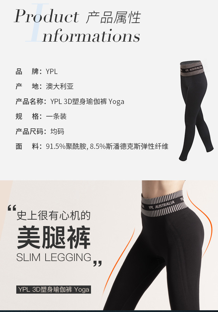 澳洲YPL 3D塑身瑜伽裤 瑜咖塑身运动背心 可外穿Yoga收腹提臀塑身美体裤黑色打底裤